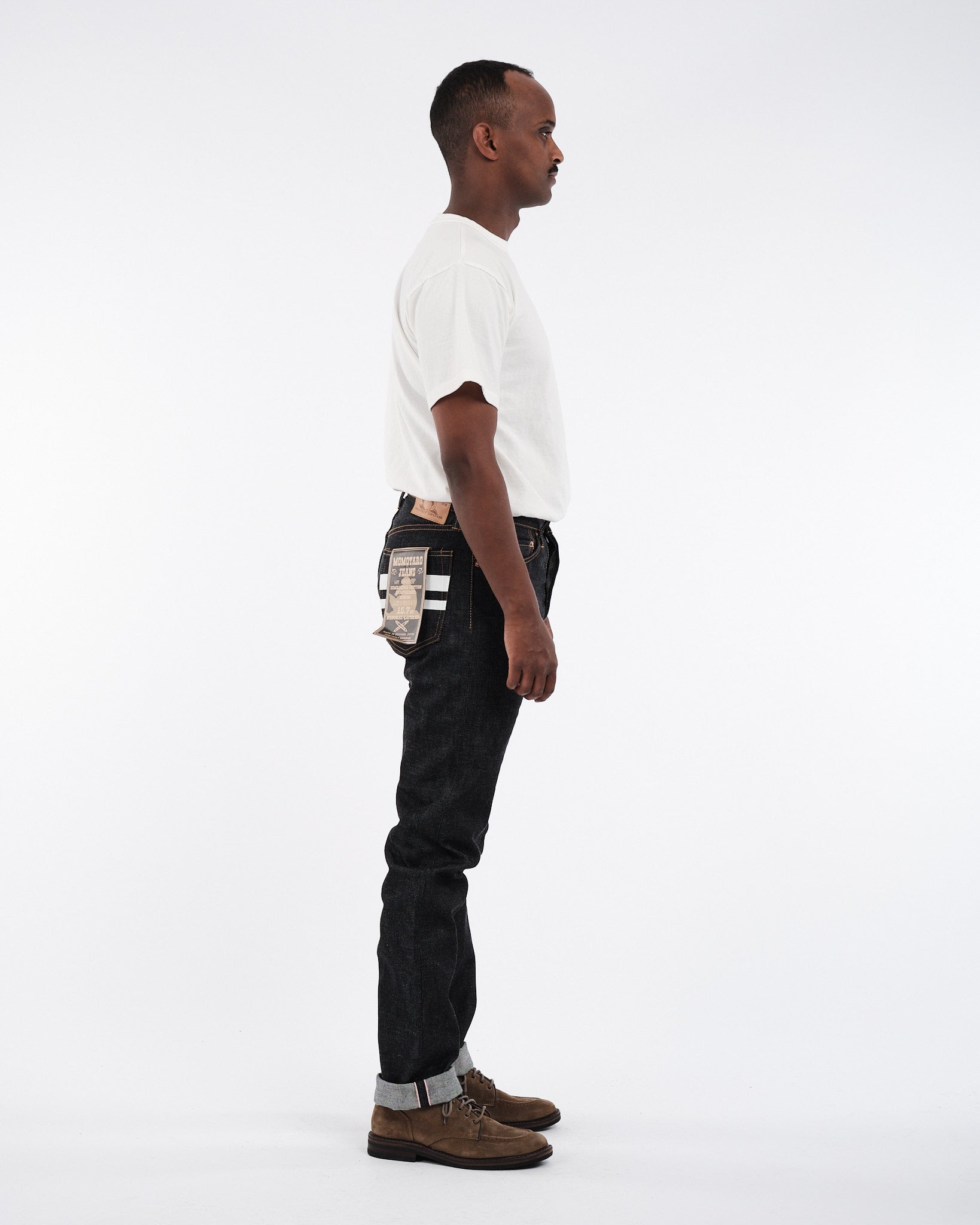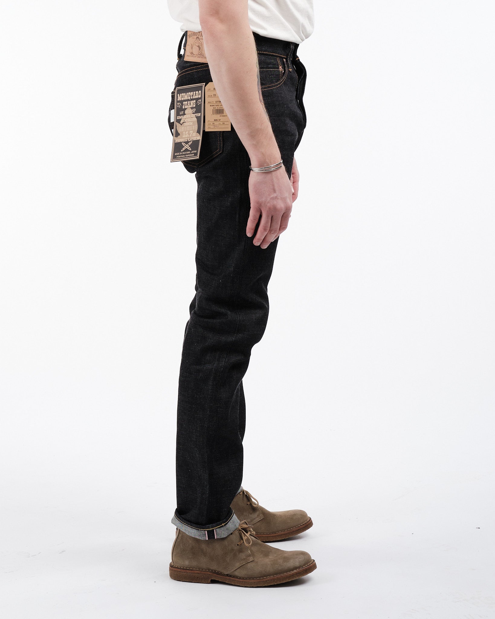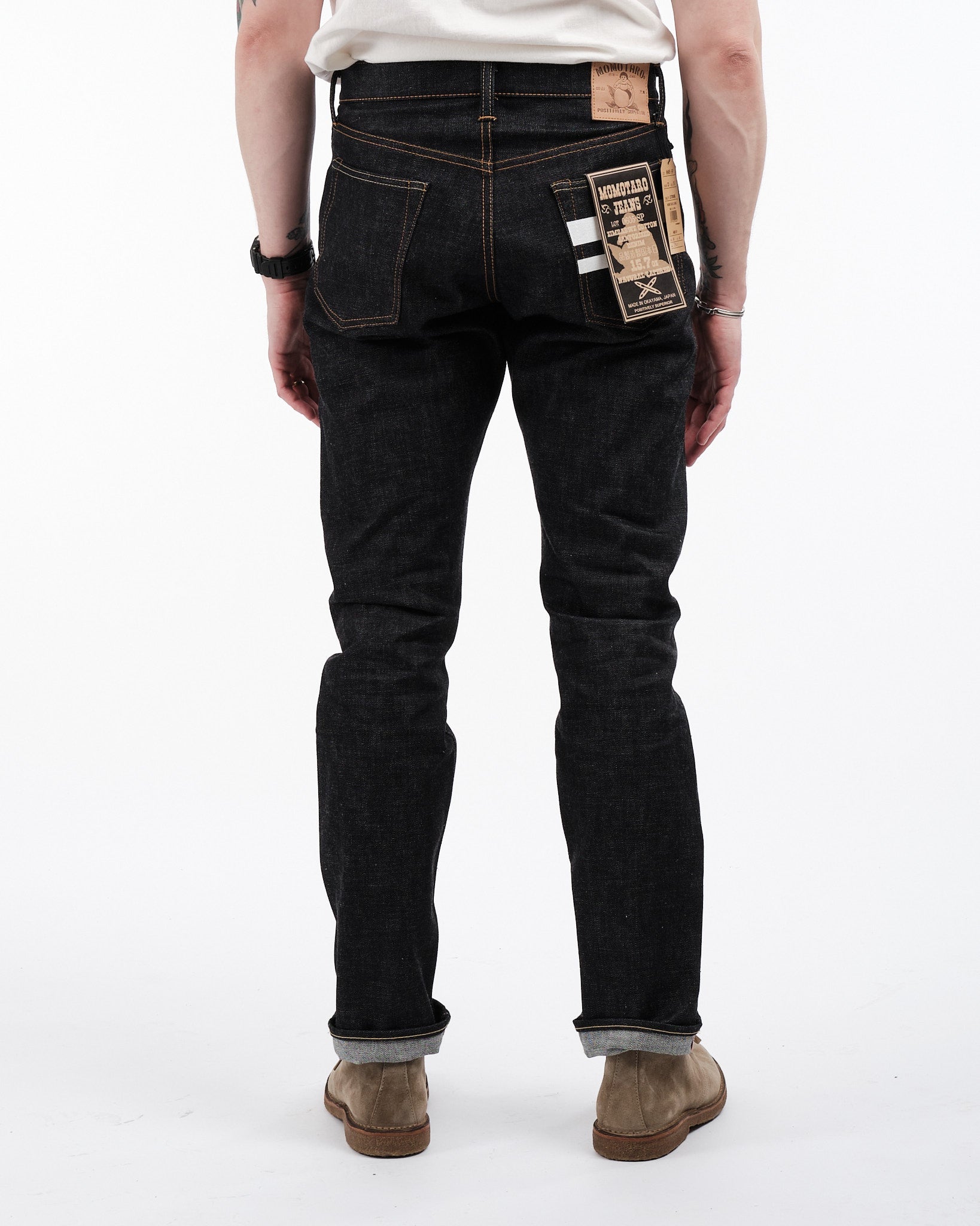3. Originele Roze Selvedge: Kenmerkende Momotaro originele roze selvedge, een teken van hoogwaardig vakmanschap.