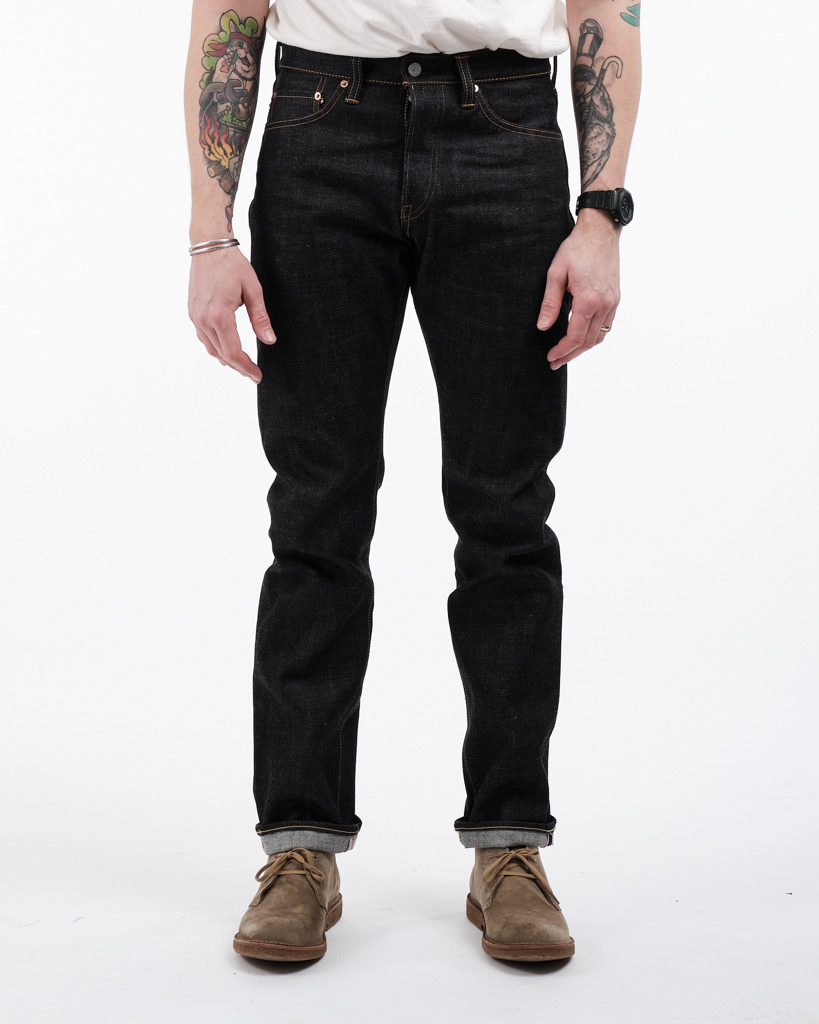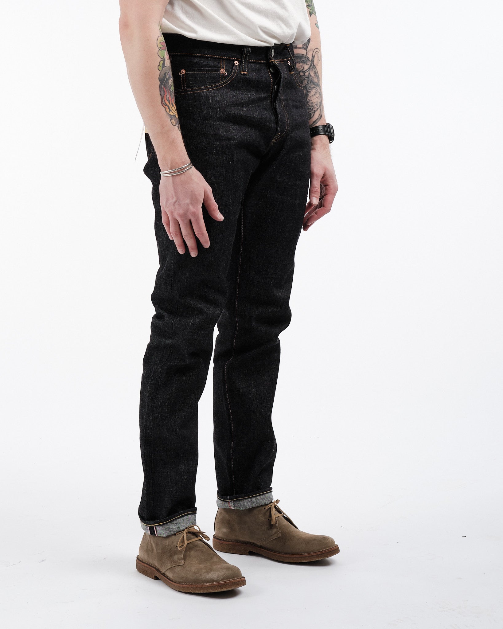 Betreed een rijk van denim vakmanschap met de Momotaro 0605 SP GOING TO BATTLE jeans, vakkundig vervaardigd uit 15,7oz Zimbabwe Katoen. Deze jeans dienen als een eerbetoon aan de vereerde denim kunst, met 100% sanforized denim dat comfort en duurzaamheid naadloos combineert. Versierd met Momotaro's roze selvedge en de GTB (Going to Battle) strepen die de rechterachterzak sieren, overstijgen deze jeans louter kleding om een gedurfd statement te maken. Van de koeienleren patch tot de binnenbeenlengte, elk detail toont een toewijding aan uitmuntendheid en individualiteit. De taps toelopende pasvorm biedt een gematigde stijging en dij die naar beneden versmalt richting het been voor een aantrekkelijk silhouet. Onwassen voor authenticiteit, deze jeans zijn klaar om zich naar jouw vorm te vormen, waardoor een pasvorm ontstaat die uniek evolueert met de tijd.