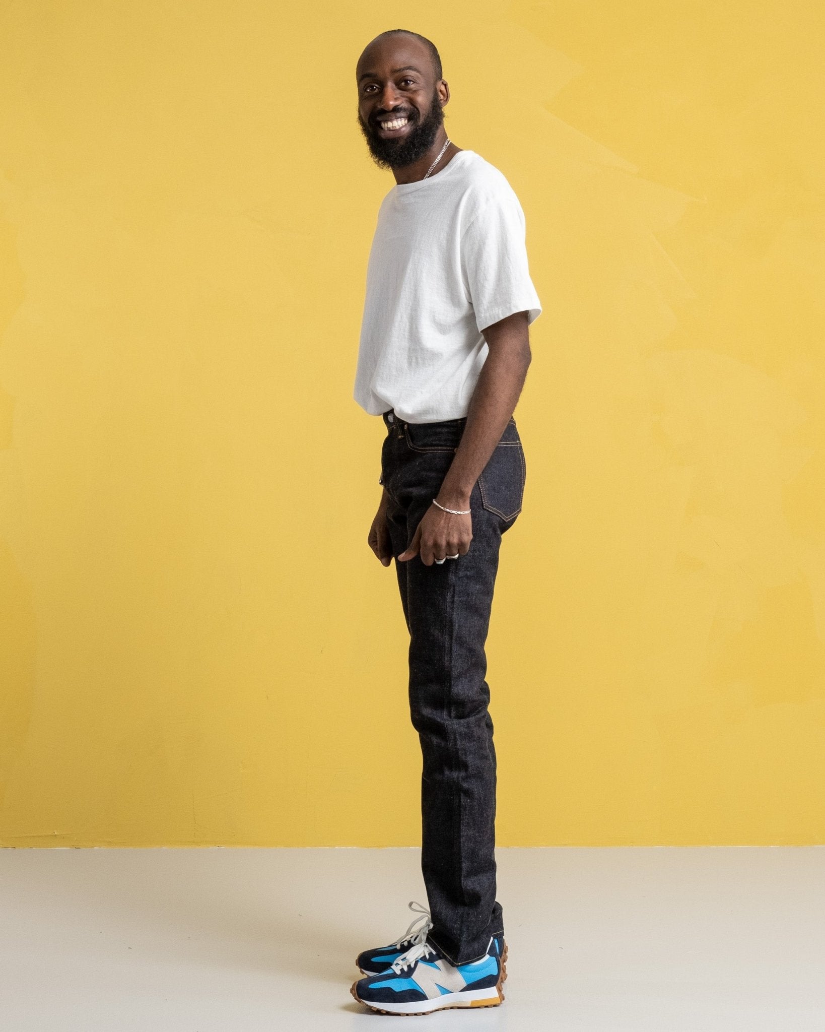 Ludjero is 179 cm lang, slank gebouwd en draagt maat 29.