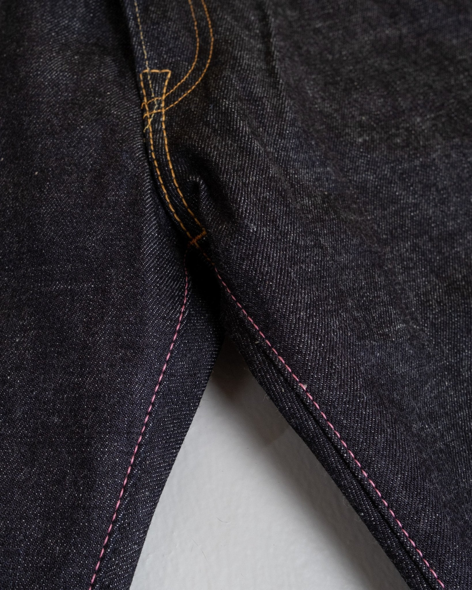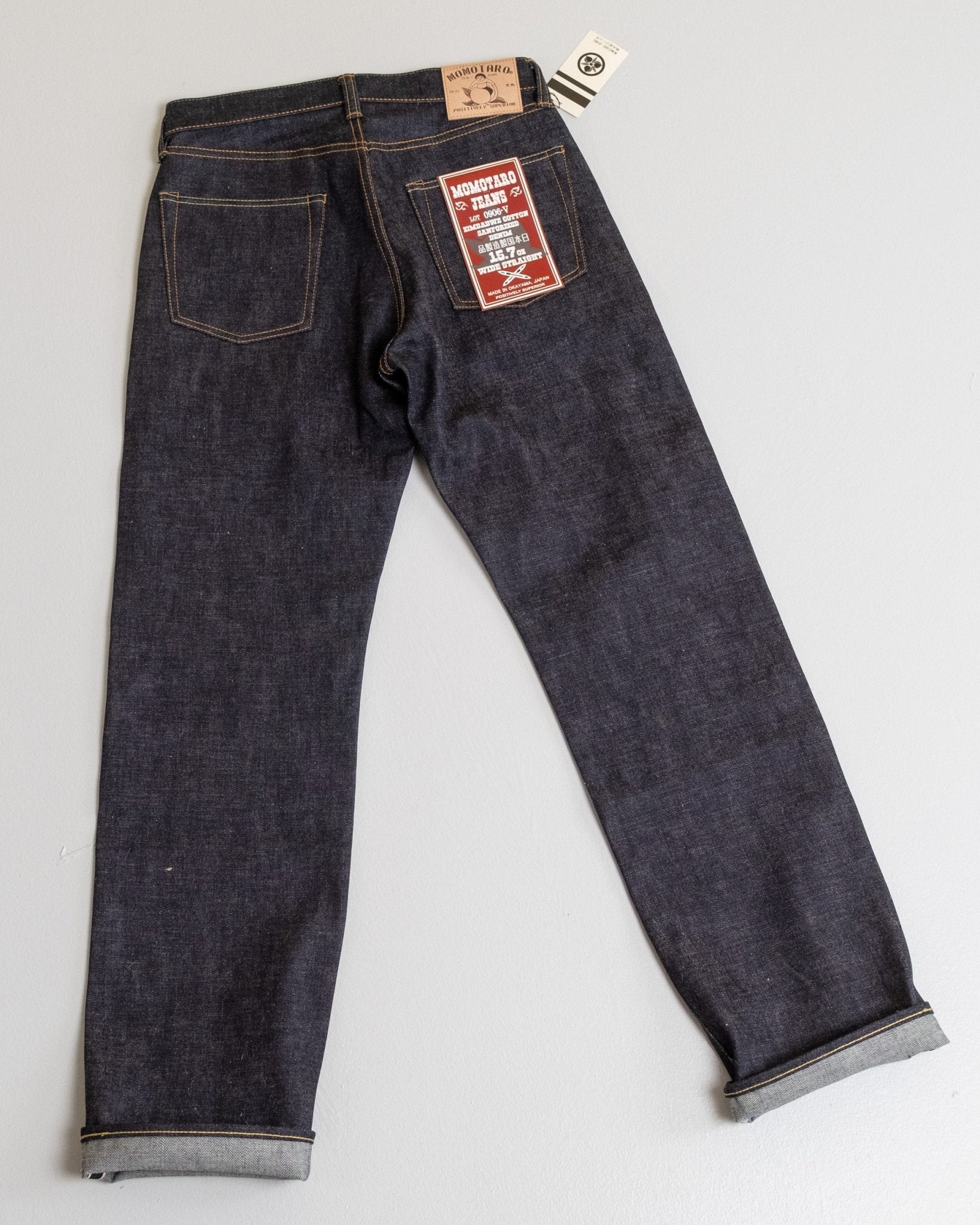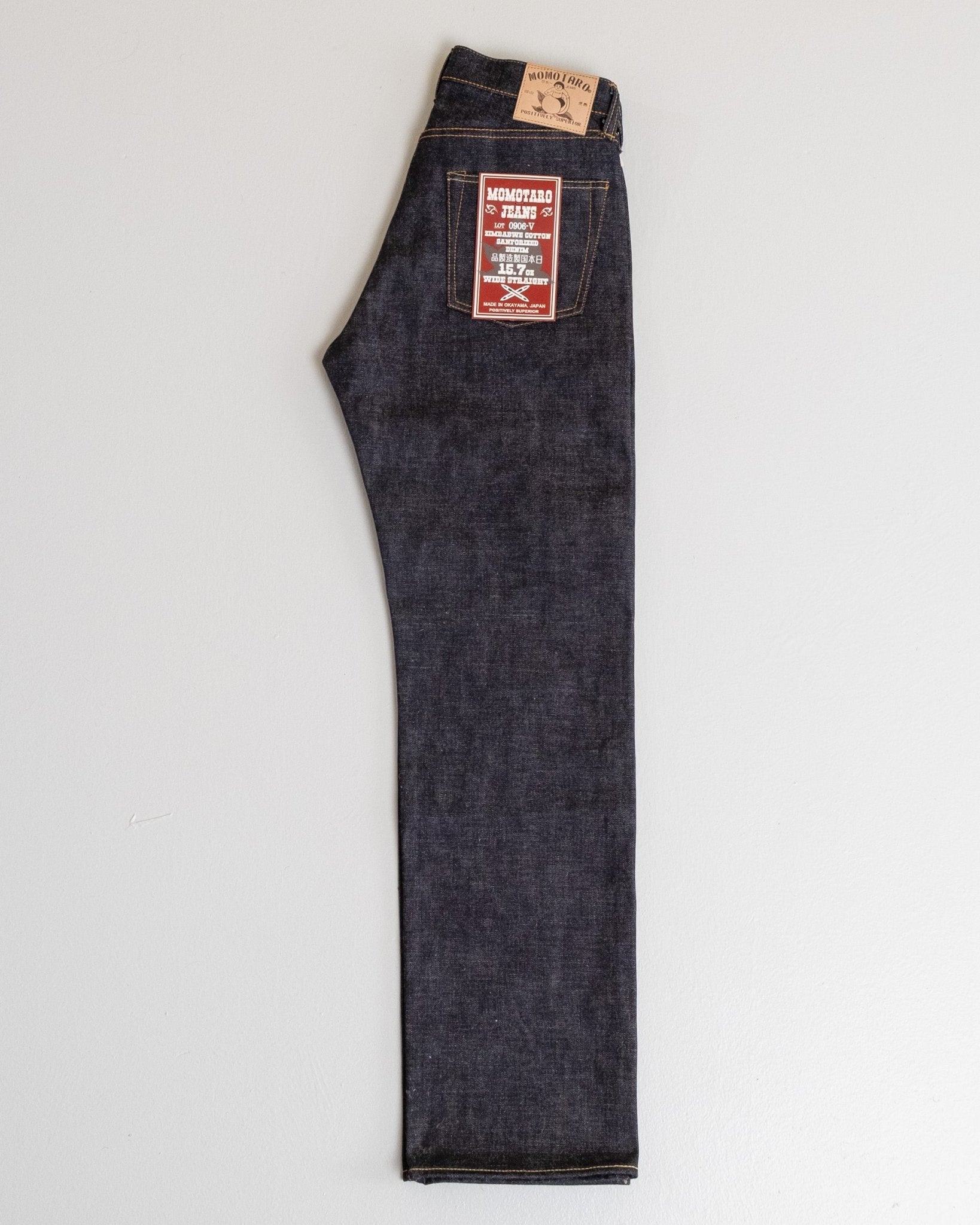 0906-V 15.7 oz Zimbabwe Katoen Wide Straight Jeans van Momotaro Jeans. Een wijde rechte pasvorm met een hoge taille. Gemaakt van 15.7 oz Japans selvedge denim dat is gemaakt van het fijnste Zimbabwe katoen. Het denim is gesanforiseerd (voorgekrompen). Kenmerkt hun iconische roze naad aan de binnenkant en een knoopsluiting. Gemaakt in Japan.