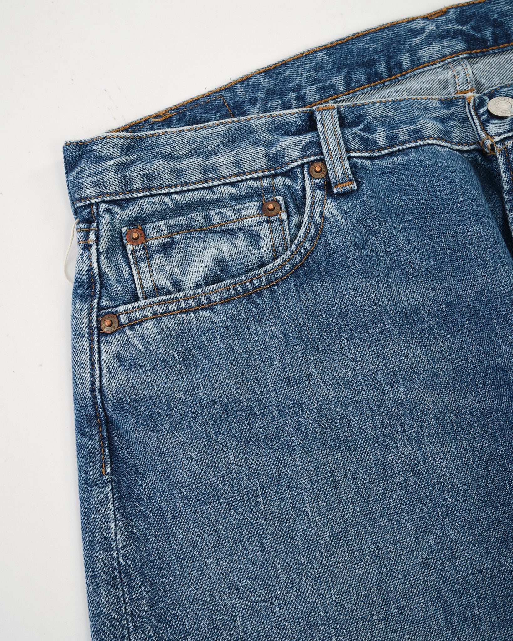 • Heavily Washed Finish: Bereikt een lichtblauwe, ingedragen look die de klassieke jaren '90 esthetiek belichaamt.