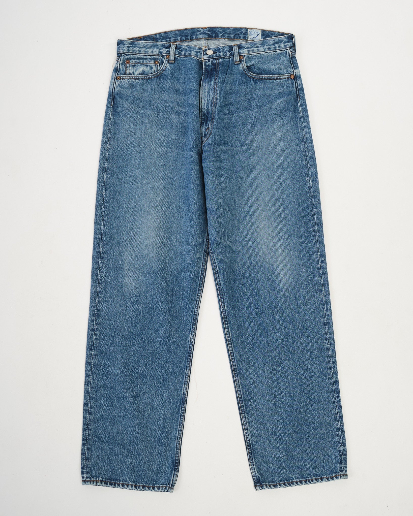De orSlow 101 Dad's Fit Denim Pants in Denim Used (Productcode: 01-1010W-95) vangen de essentie van denim uit de jaren '90 met hun iconische lichtblauwe kleur en ontspannen pasvorm. Ontworpen voor dagelijks gebruik, hebben deze jeans een licht toelopende pijp voor een tijdloze silhouet. Gemaakt van 12.5oz Japans denim, hebben ze een uitgebreid was- en verouderingsproces ondergaan, waardoor ze een zachte, sterk gedragen uitstraling krijgen die doet denken aan oude favorieten. Met een vijfzaksontwerp, een duurzame ritssluiting en een merkleren patch, combineren deze jeans praktisch gebruik, duurzaamheid en authentiek Japans vakmanschap. Perfect voor casual outfits, belichamen ze moeiteloze stijl met een nostalgisch randje.