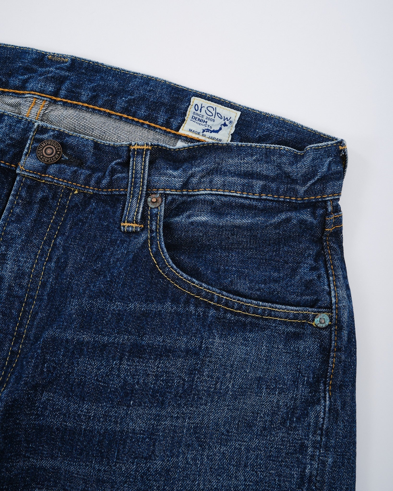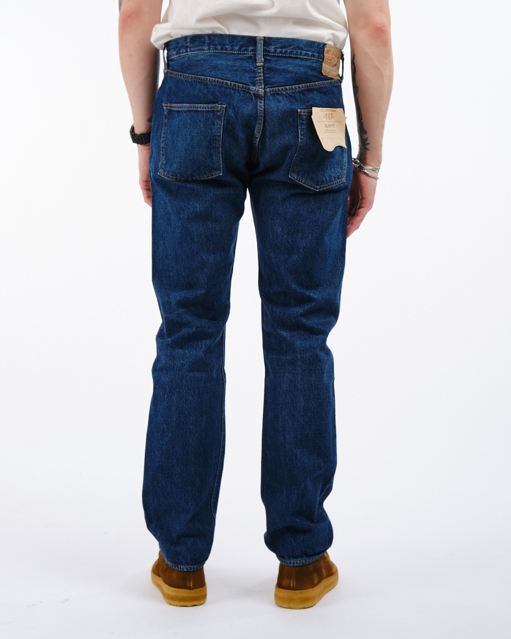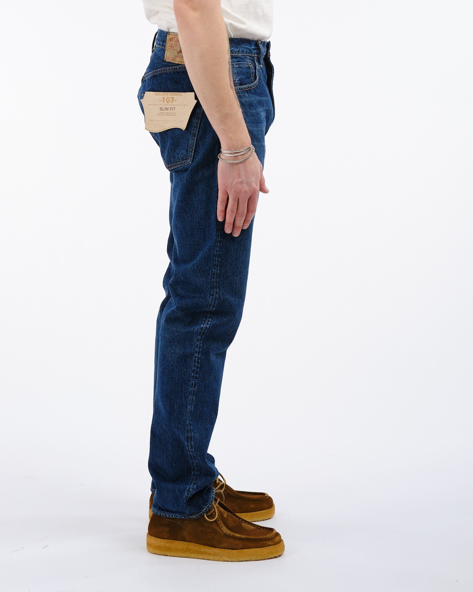 Ervaar de mix van traditie en moderniteit met de orSlow 107 Ivy Fit Selvedge Denim Jeans in 2 Year Wash. Zorgvuldig met de hand gemaakt in Japan, brengen deze jeans een eerbetoon aan de Levis broeken uit de jaren '50 en '60. Gemaakt met premium 13,5oz selvedge denim bieden ze een tijdloze pasvorm die een balans vindt tussen een medium taillehoogte, comfortabele dijen en een subtiele versmalling onder de knie. Ze zijn voorgespoeld om krimp te minimaliseren en bieden een ingedragen gevoel terwijl elementen zoals geoxideerde klinknagels en een authentieke papieren taillepatch met vintage charme behouden blijven. Perfect voor individuen die zowel stijl als comfort waarderen in hun keuzes, deze jeans belichamen orSlows onwankelbare toewijding aan superieure kwaliteit en blijvende mode.