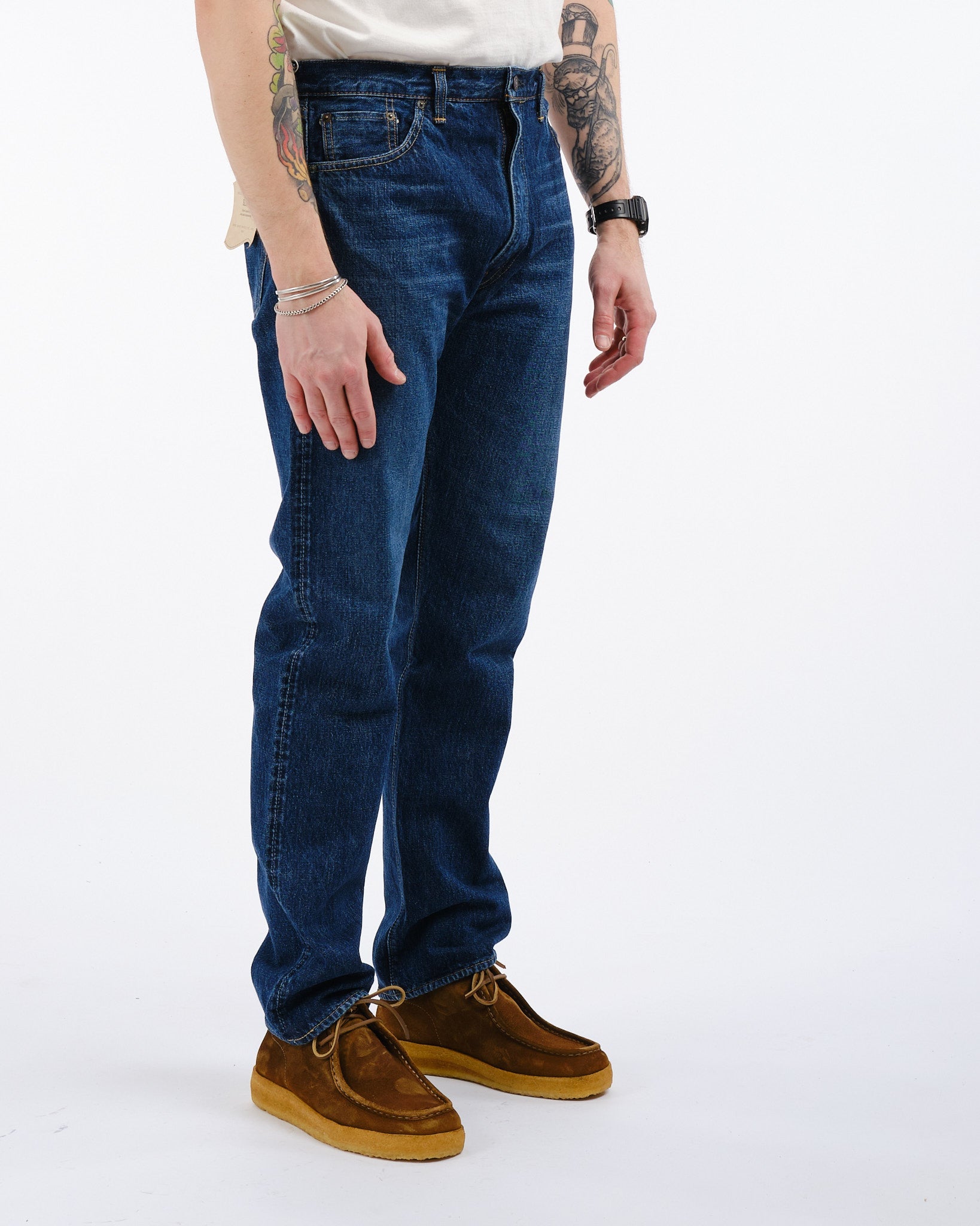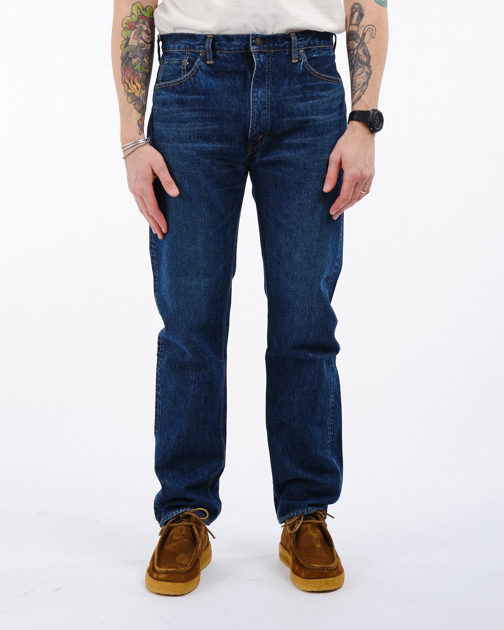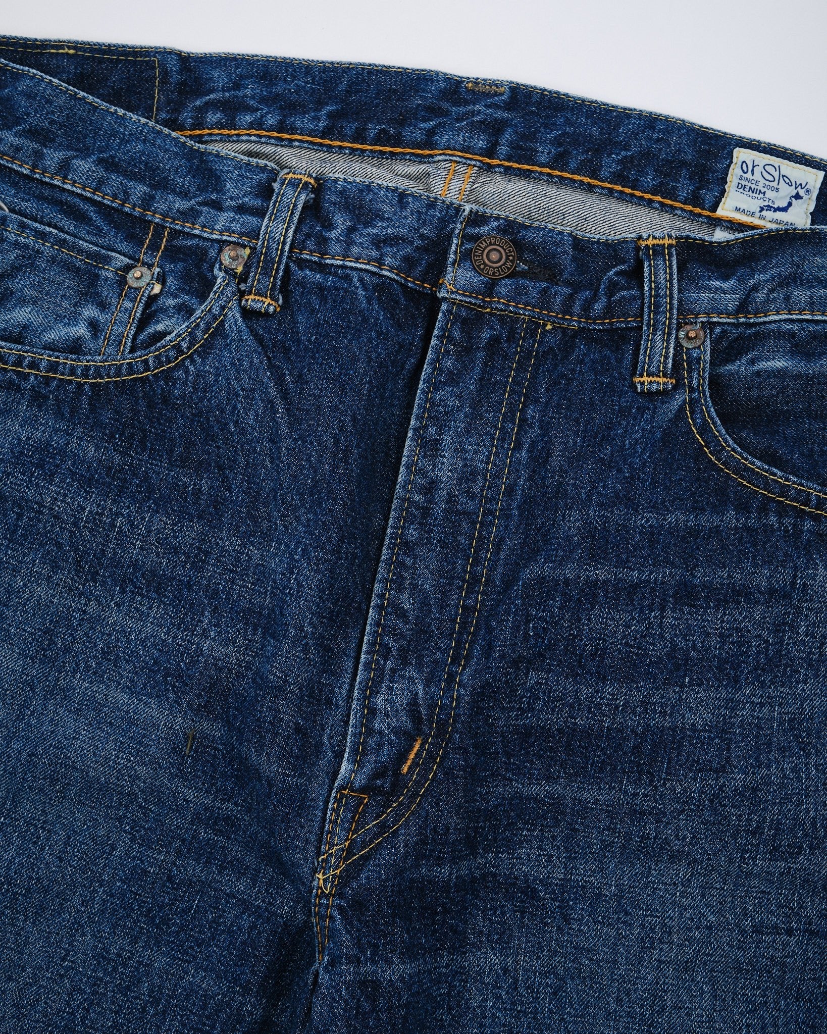 Ervaar de mix van traditie en moderniteit met de orSlow 107 Ivy Fit Selvedge Denim Jeans in 2 Year Wash. Zorgvuldig met de hand gemaakt in Japan, brengen deze jeans een eerbetoon aan de Levis broeken uit de jaren '50 en '60. Gemaakt met premium 13,5oz selvedge denim bieden ze een tijdloze pasvorm die een balans vindt tussen een medium taillehoogte, comfortabele dijen en een subtiele versmalling onder de knie. Ze zijn voorgespoeld om krimp te minimaliseren en bieden een ingedragen gevoel terwijl elementen zoals geoxideerde klinknagels en een authentieke papieren taillepatch met vintage charme behouden blijven. Perfect voor individuen die zowel stijl als comfort waarderen in hun keuzes, deze jeans belichamen orSlows onwankelbare toewijding aan superieure kwaliteit en blijvende mode.
