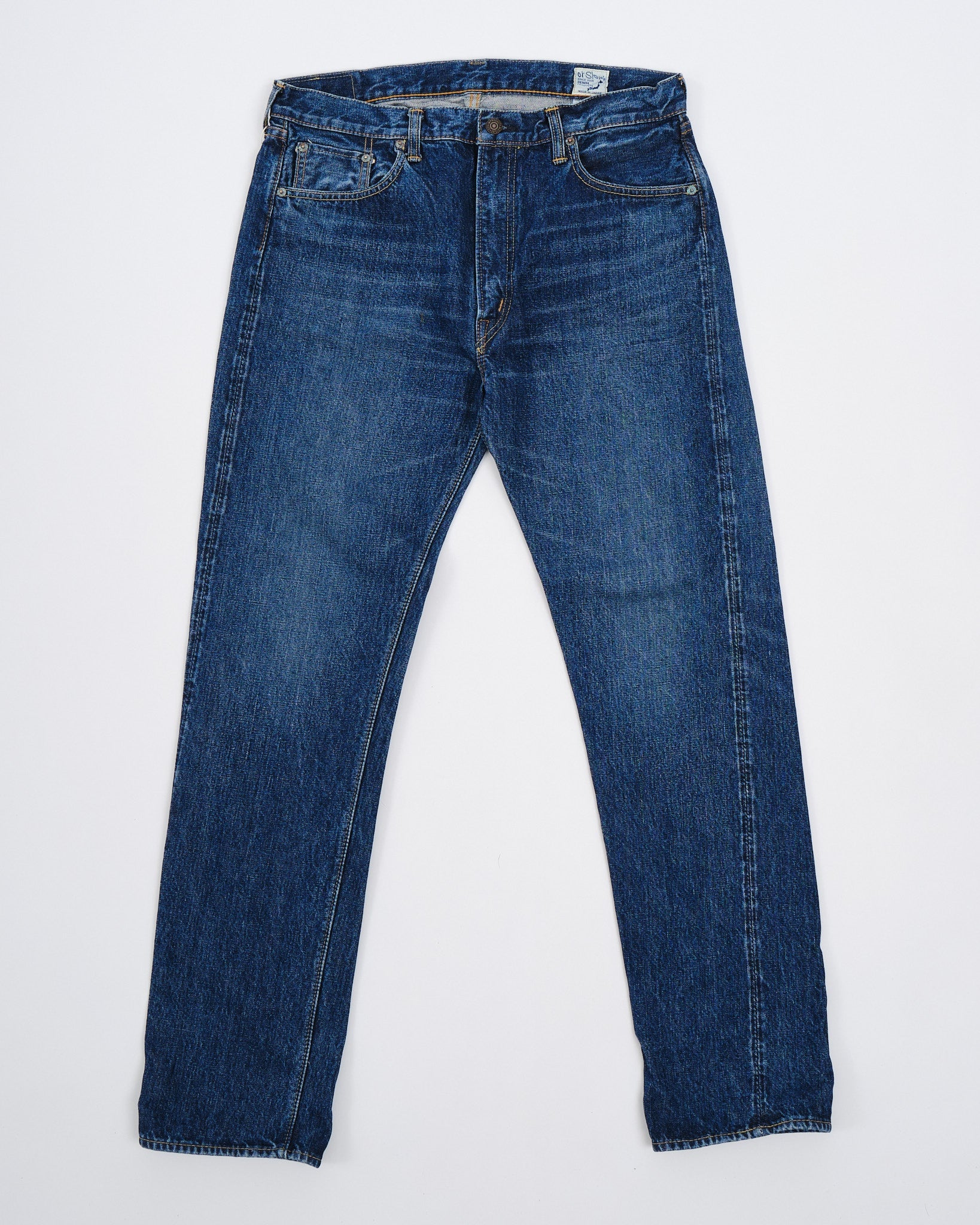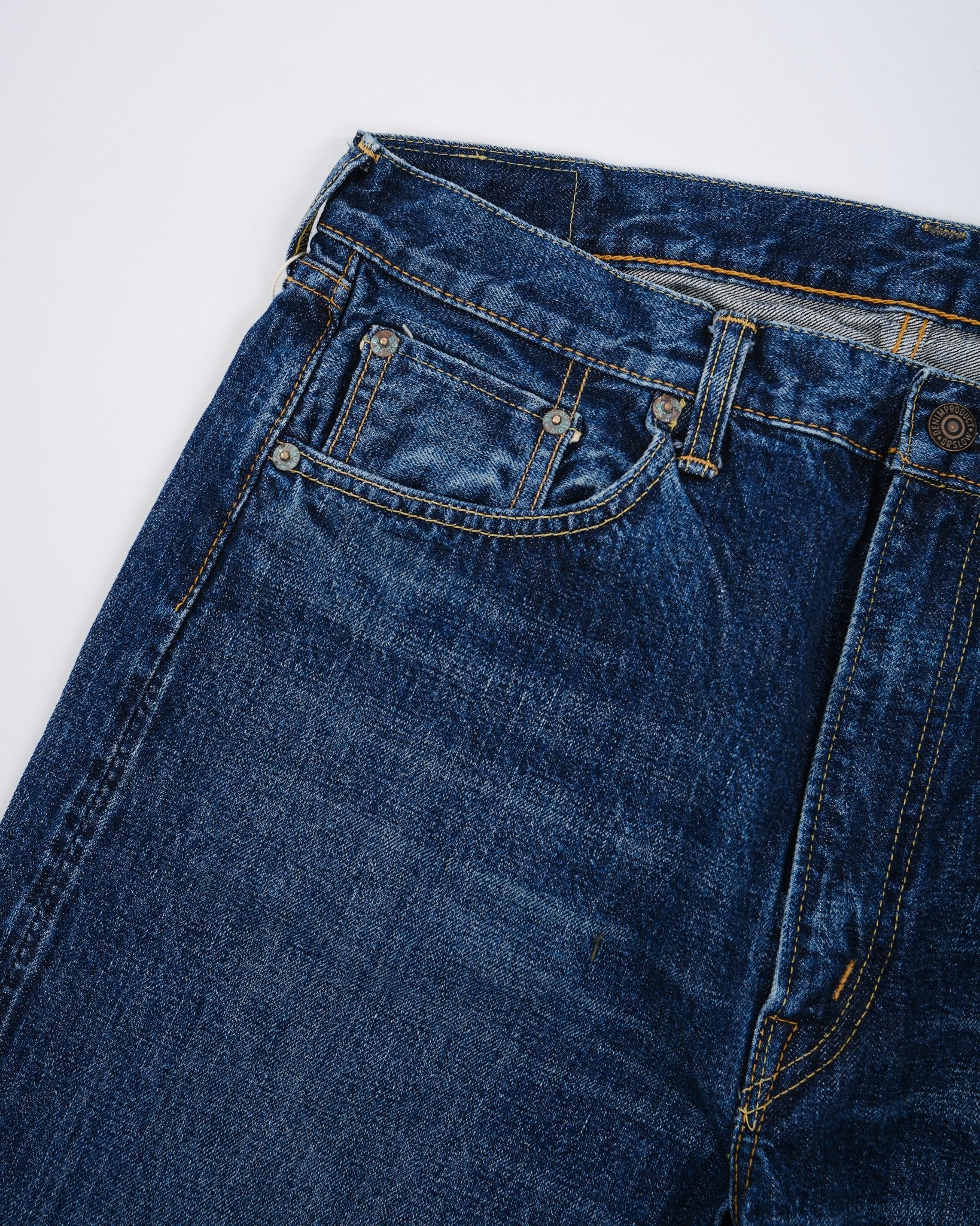 2. Gemaakt van premium 13,5oz selvedge denim voor duurzaamheid en kwaliteit.
