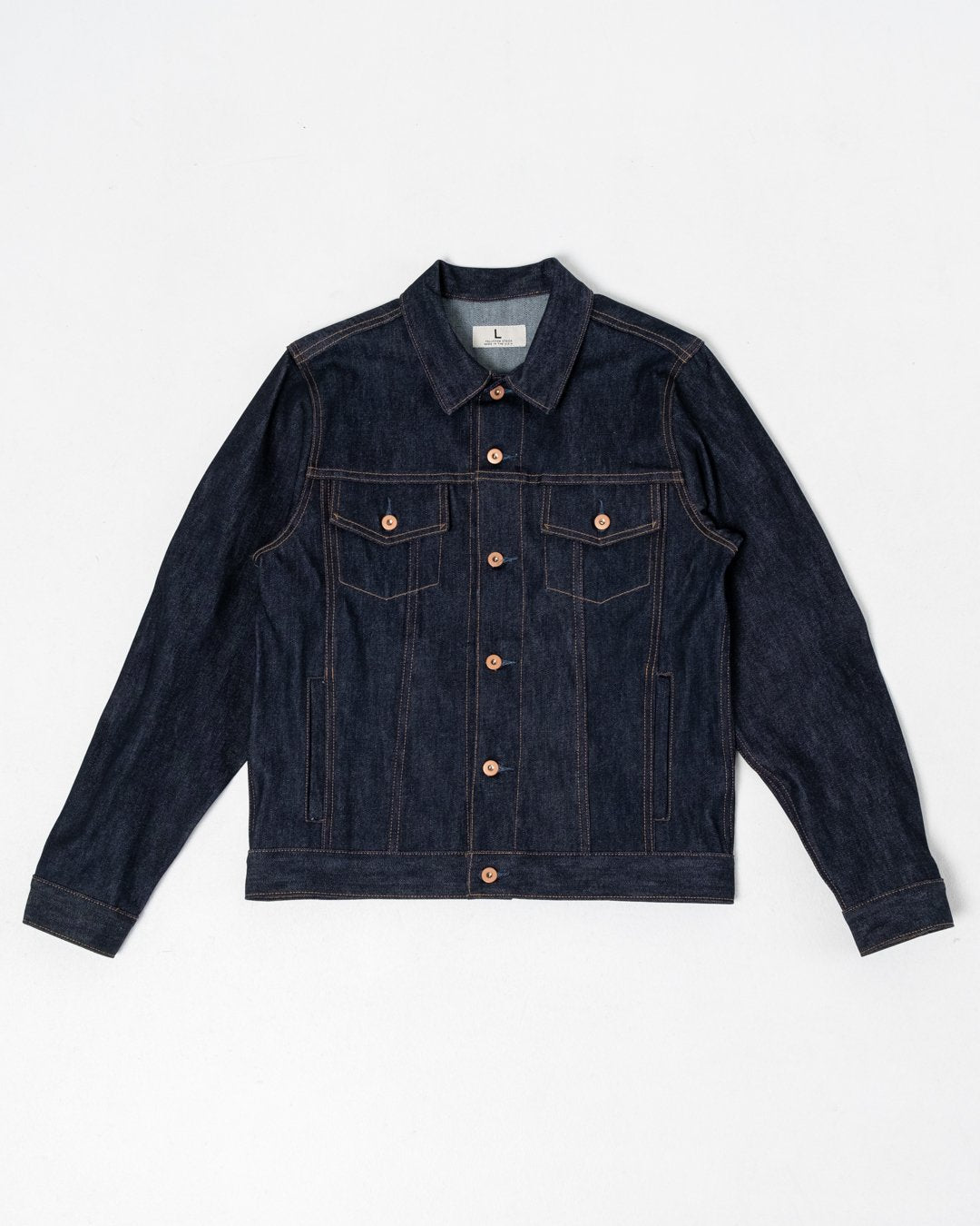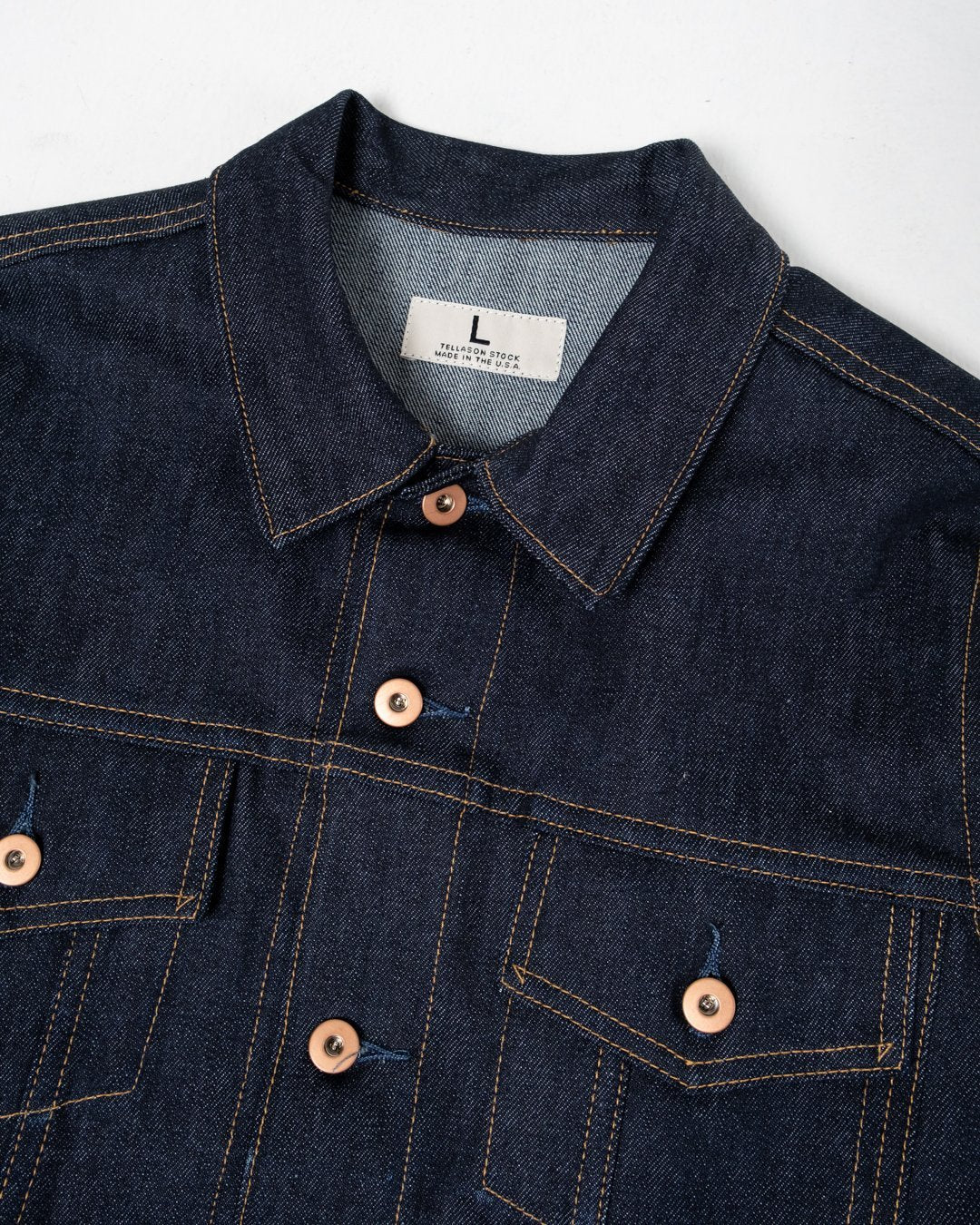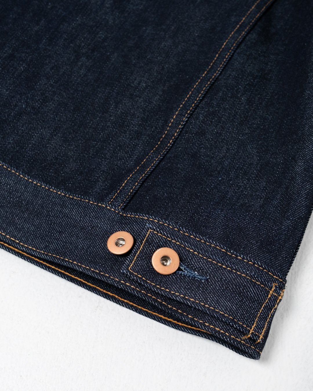 7. Duurzaam Denim: Het gebruik van 14 oz Cone Mills denim zorgt ervoor dat de jas de tand des tijds doorstaat.