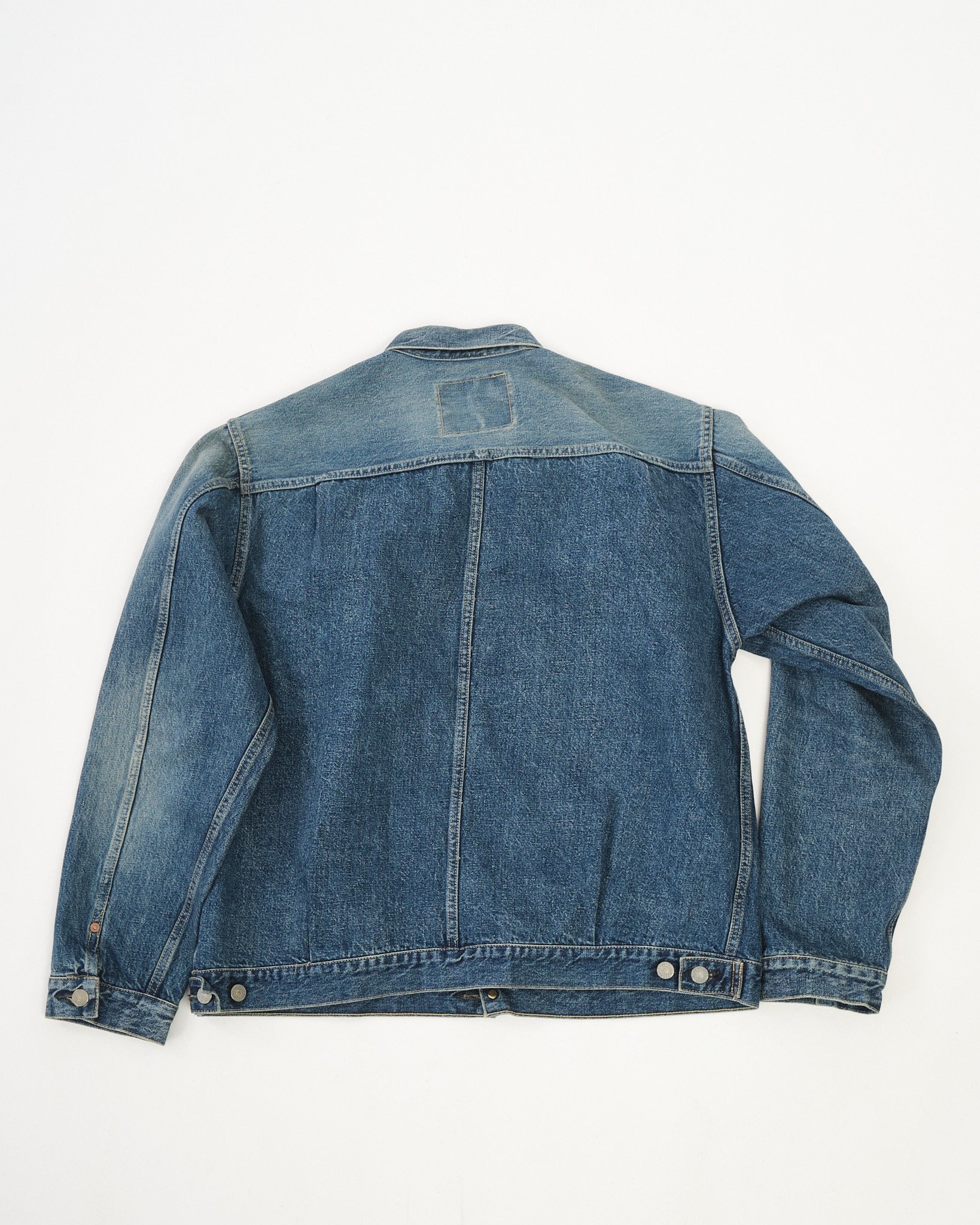 Gemaakt van 12.5oz selvedge denim, heeft deze jas een gladde maar droge textuur, die nauw aansluit bij het gevoel van echte vintage werkkleding. Elk detail is zorgvuldig vervaardigd om het verouderde karakter van oude denim na te bootsen, waardoor de tijdloze aantrekkingskracht van geliefde kledingstukken wordt opgeroepen.