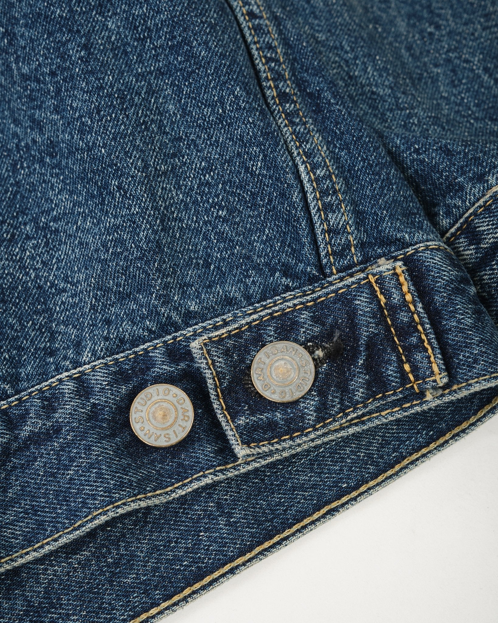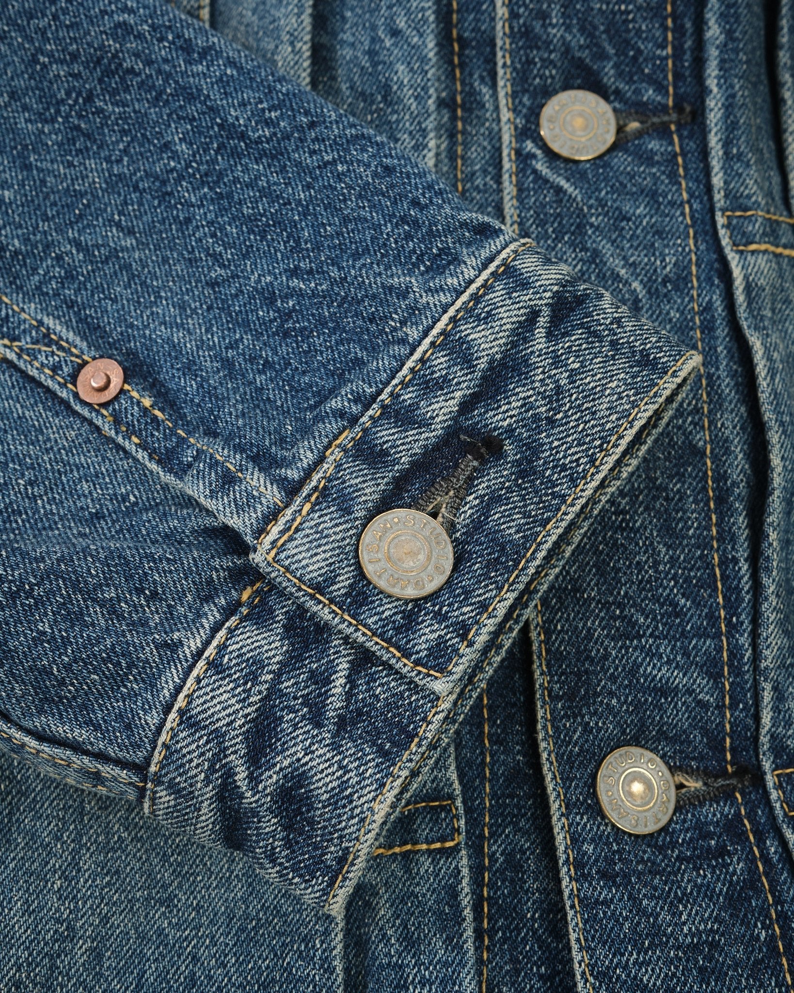 De STUDIO D'ARTISAN 1950 Denim Jacket (D4536U) brengt een eerbetoon aan de rebelse geest van de jeugdcultuur uit de jaren '50, toen spijkerjassen symbool stonden voor verzet en onafhankelijkheid. Dit stuk is een nauwkeurige reproductie van vintage spijkerjassen uit de jaren '50, compleet met een authentieke gebruikte wassing die het natuurlijke verkleurings- en oxidatieproces van goed gedragen denim uit die tijd vastlegt.