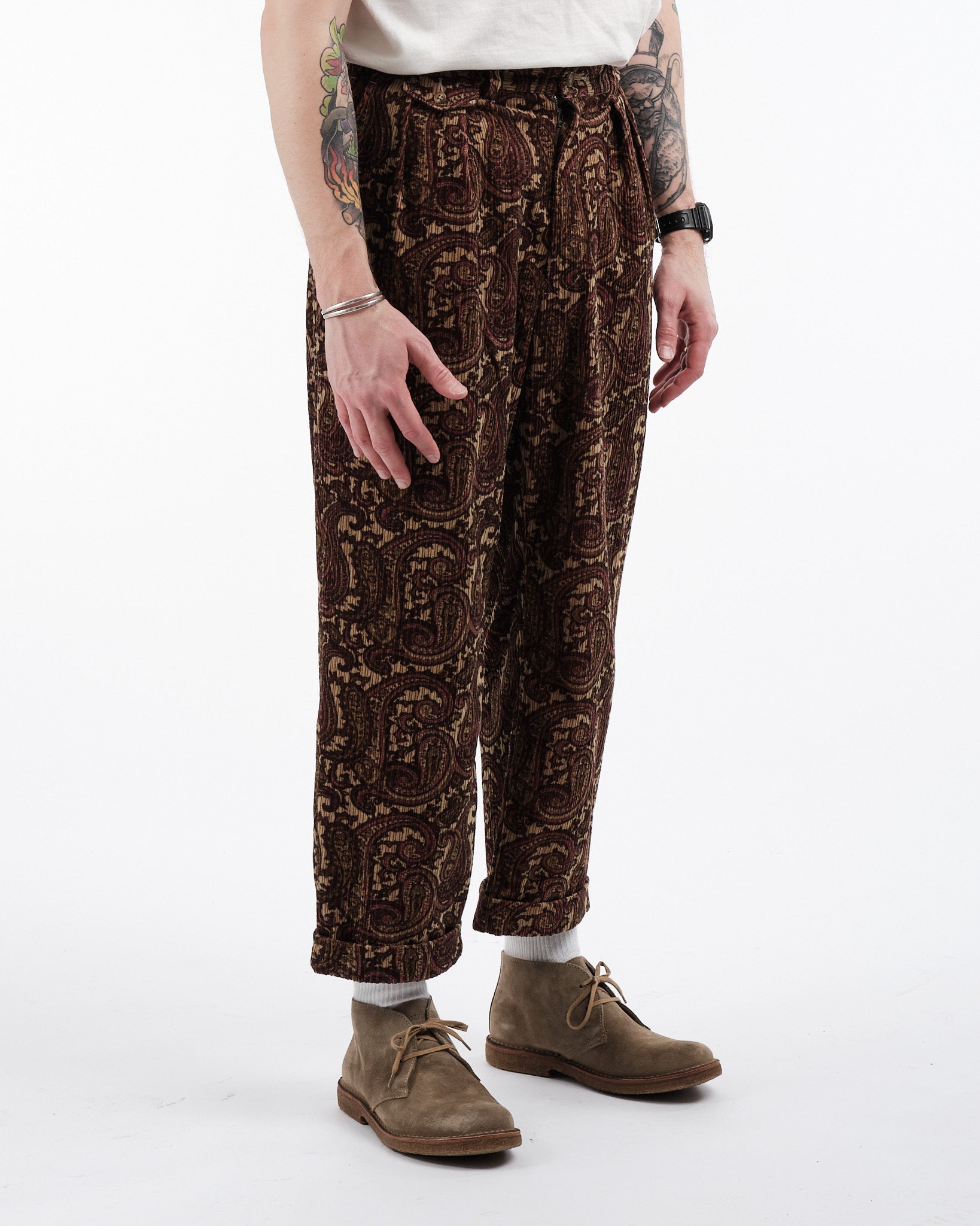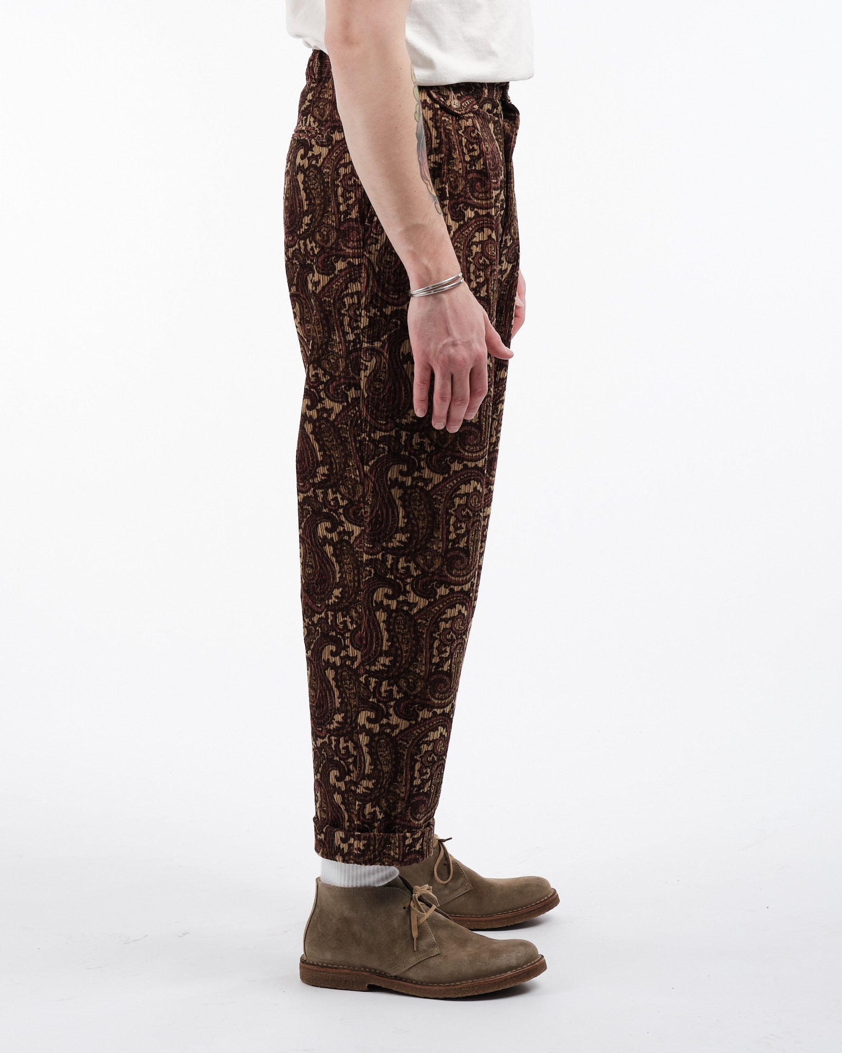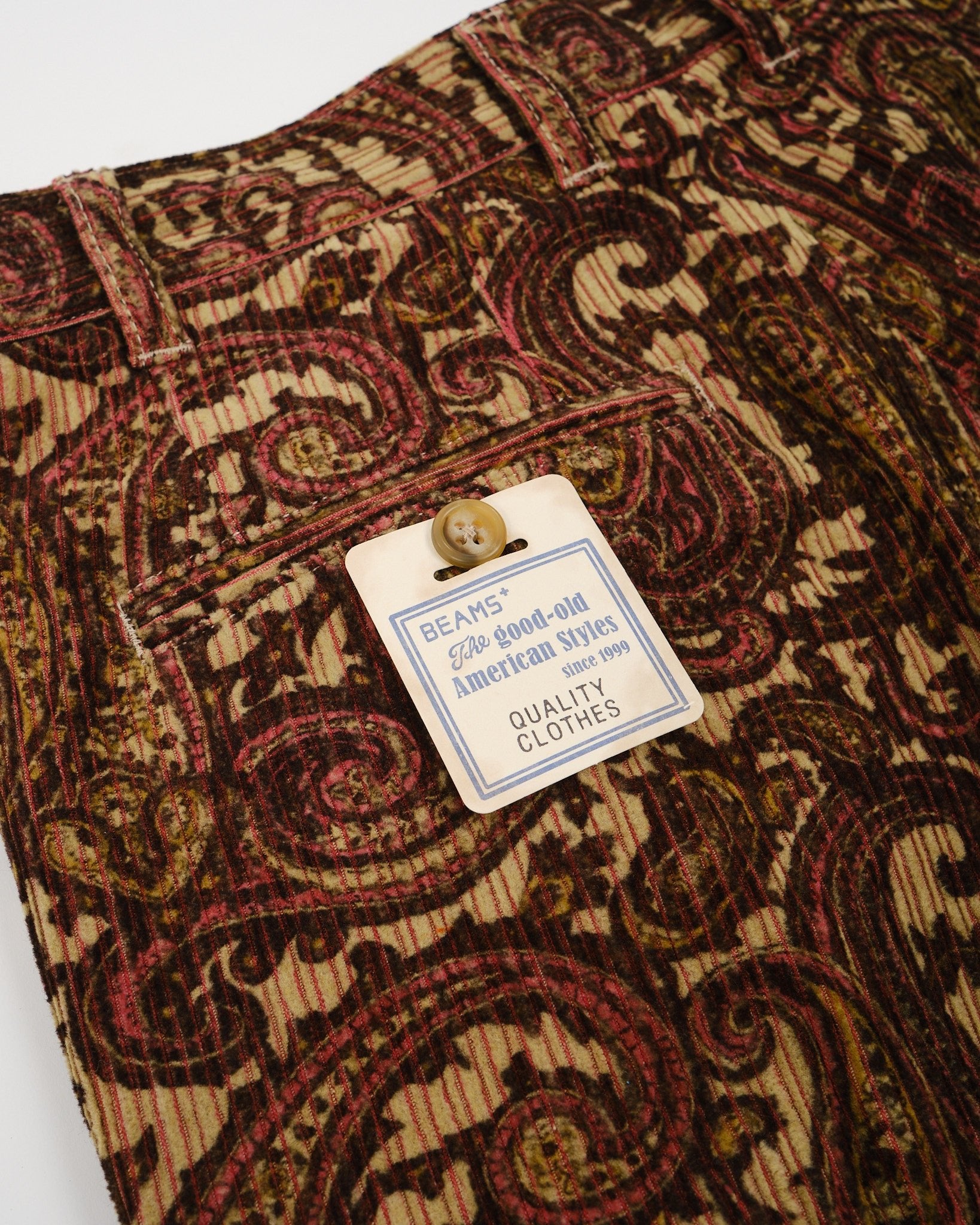 Doe een stap terug in de tijd met de Beams+ 2 Pleats Trousers Corduroy Print Burgundy. Deze broek is geïnspireerd op de mode van de jaren '50 en combineert retro charme met een tailoring twist. Zorgvuldig vervaardigd in Japan, toont deze broek een paisley patroon in tinten van bruin, beige en bourgondië op hoogwaardige corduroy stof. Met een beenontwerp dat een vleugje stijl toevoegt en een comfortabele stofmix inclusief polyester, katoen, rayon en een hint van polyurethaan voor rekbaarheid, maken ze een uitzonderlijke toevoeging aan elke garderobe die op zoek is naar die preppy flair.