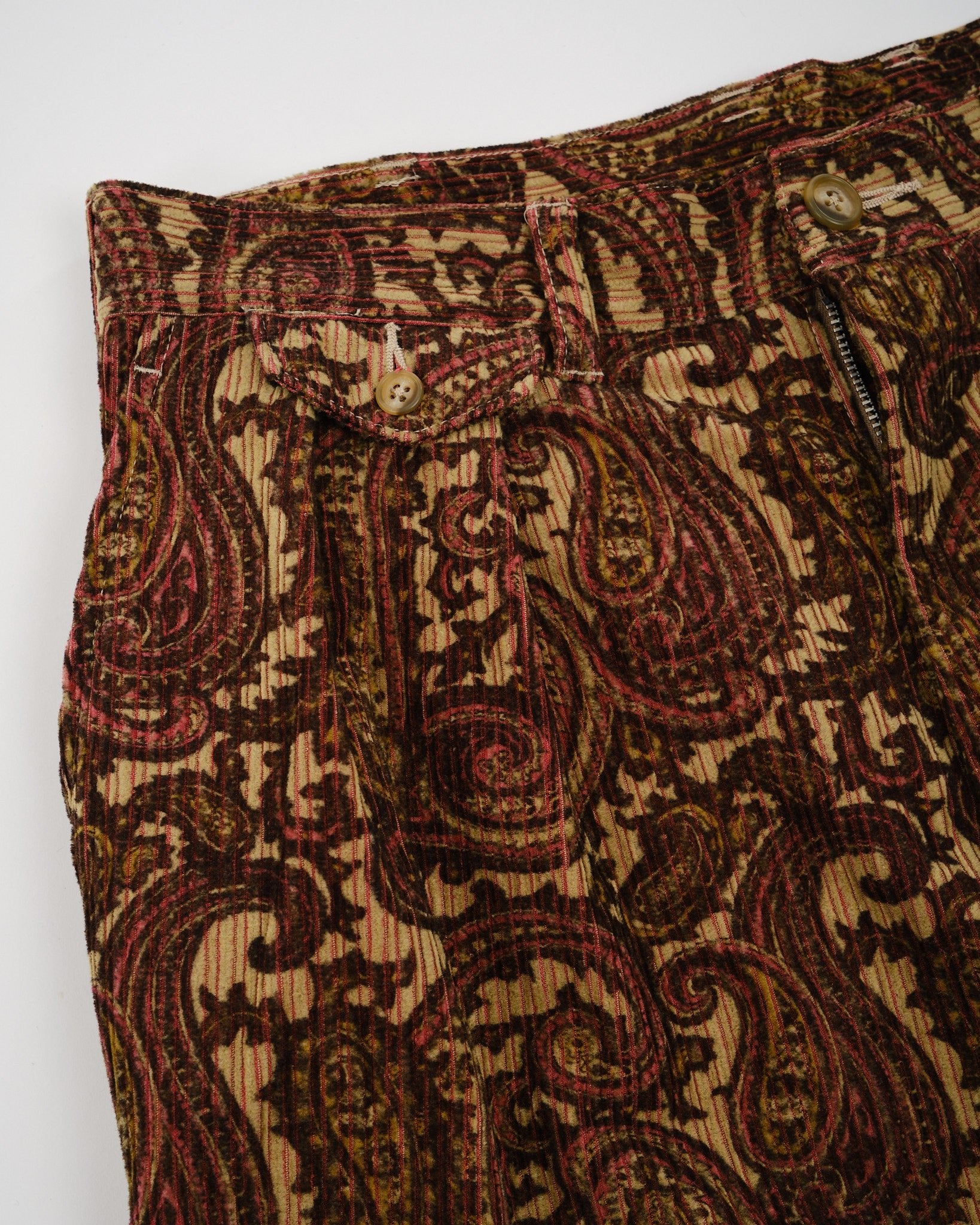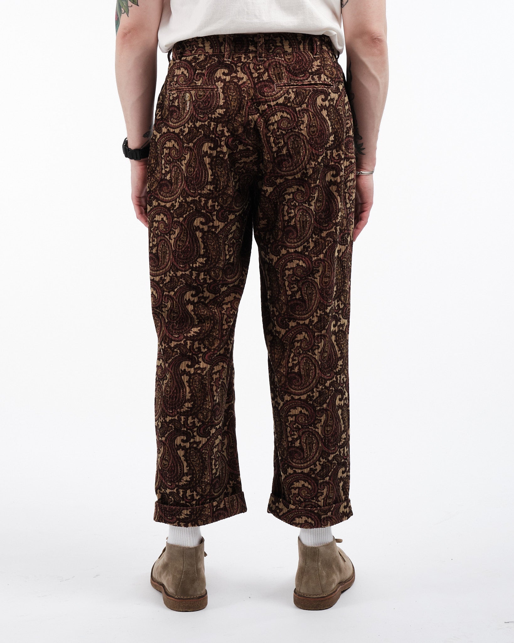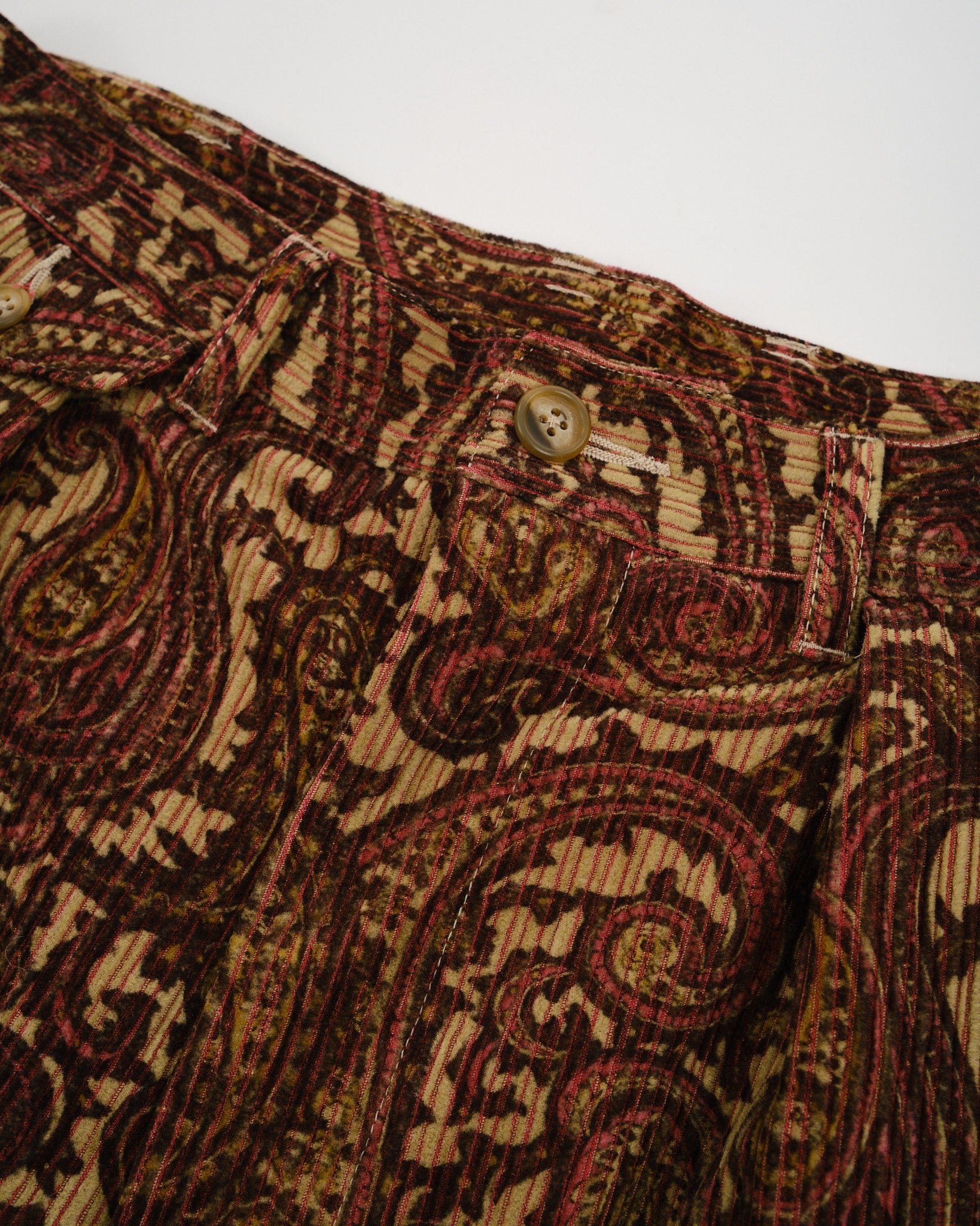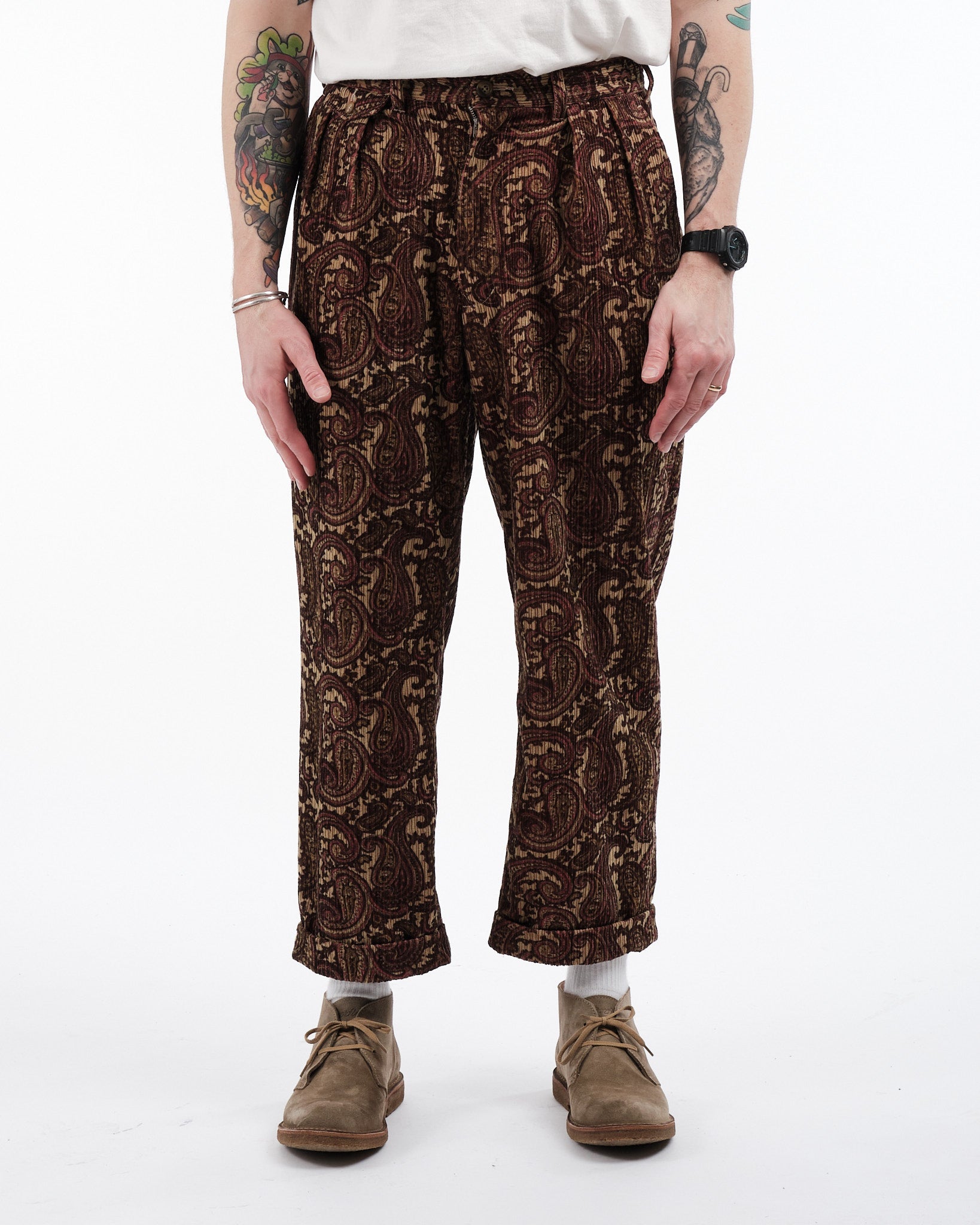 Doe een stap terug in de tijd met de Beams+ 2 Pleats Trousers Corduroy Print Burgundy. Deze broek is geïnspireerd op de mode van de jaren '50 en combineert retro charme met een tailoring twist. Zorgvuldig vervaardigd in Japan, toont deze broek een paisley patroon in tinten van bruin, beige en bourgondië op hoogwaardige corduroy stof. Met een beenontwerp dat een vleugje stijl toevoegt en een comfortabele stofmix inclusief polyester, katoen, rayon en een hint van polyurethaan voor rekbaarheid, maken ze een uitzonderlijke toevoeging aan elke garderobe die op zoek is naar die preppy flair.