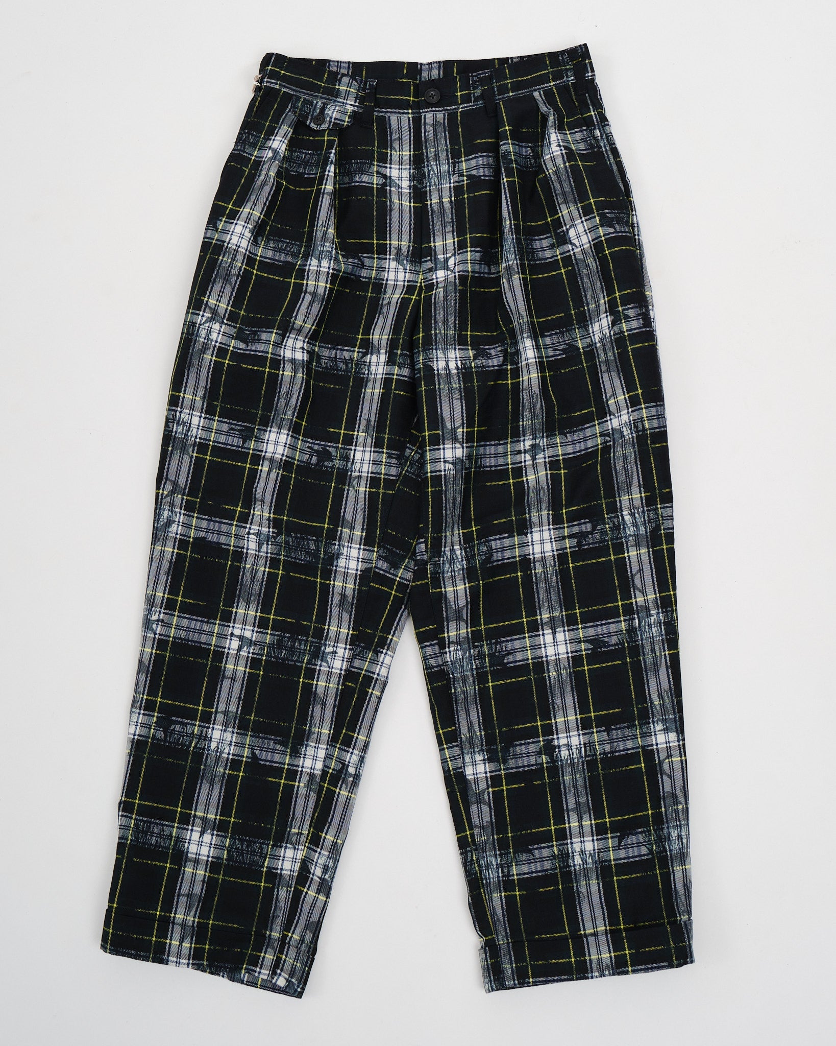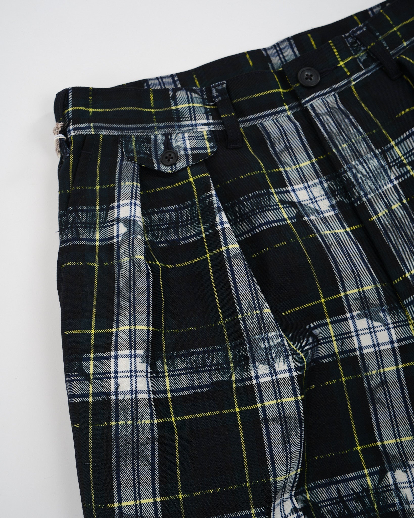Stap in een fusie van tijdloze elegantie en moderne charme, met de Beams+ 2 Plooien Broek in Geruite Print Marine. Deze broek vangt moeiteloos de geest van de jaren 1950 op, met precisie vervaardigd in Japan. Met een ontwerp van twee plooien stralen ze een lucht van verfijnde stijl uit. Voorbij het boeiende geruite patroon ligt een fascinerende verrassing - verborgen vogelprints die uitnodigen tot een blik. De broek is gemaakt van een mix van 80% polyester en 20% rayon, wat zorgt voor zowel duurzaamheid als een sierlijke valling die prachtig het silhouet van het been complementeert. Let op dat Japanse maten vaak kleiner uitvallen. Het is raadzaam om een maat groter te kiezen voor een pasvorm.