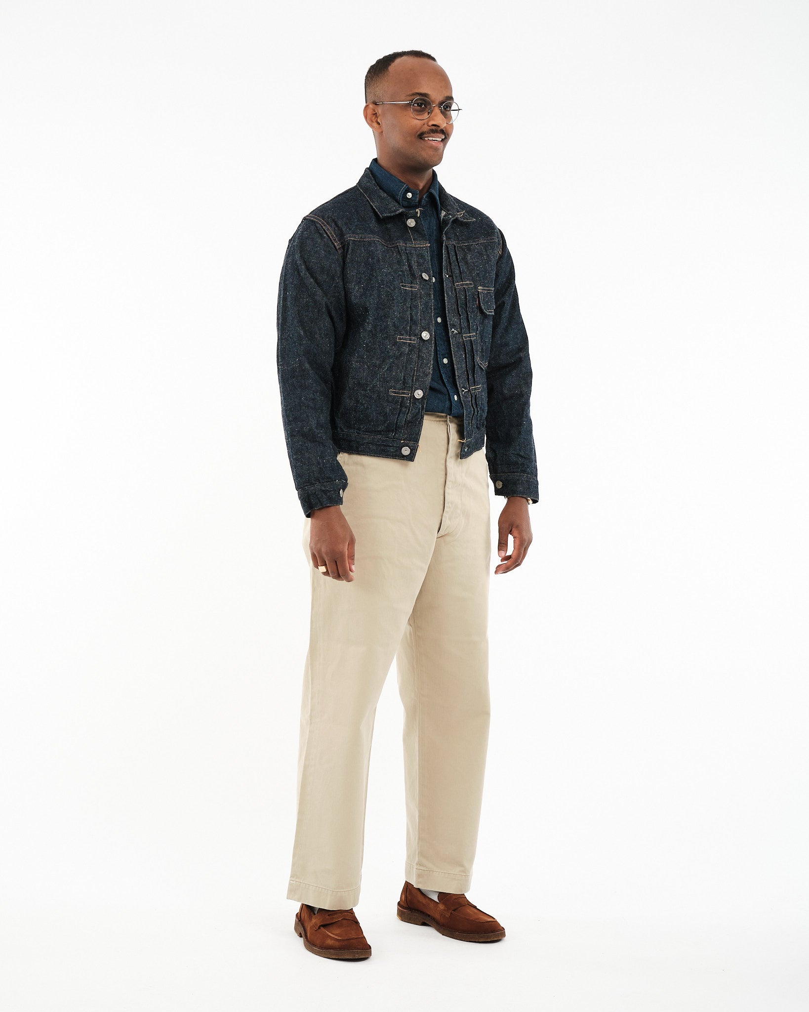 Bekijk de Warehouse & Co 2001XX 'Type I' Denim Jacket als eerbetoon aan de tijdloze Type I truckerjasstijl. Dit ontworpen stuk bevat een enkele borstklepzak, plooien aan zowel de voor- als achterkant en een verstelbare achterkant voor die authentieke vintage flair. Vervaardigd uit indigo denim met een eenmalige wasbeurt, behoudt het een scherp, net uiterlijk dat gewoon wacht om ingedragen te worden. De boxy silhouet uit de jaren 1940 is iets korter in lengte met een verlaagde schouder, wat een mix biedt van traditionele en moderne stijlen. Gemaakt van 100% katoen en geproduceerd in Japan, mengt deze jas elementen met top vakmanschap.