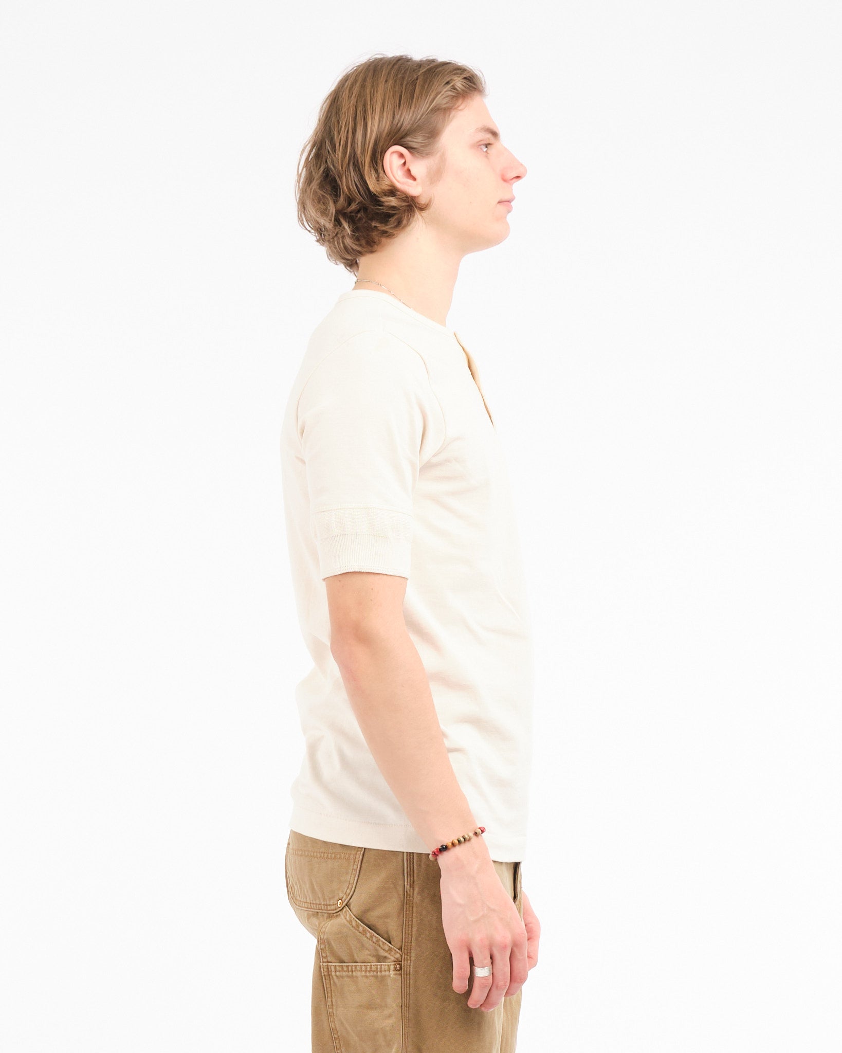 • Ontwerp: Klassieke Henley-halslijn met een drie-knoopsluiting.
