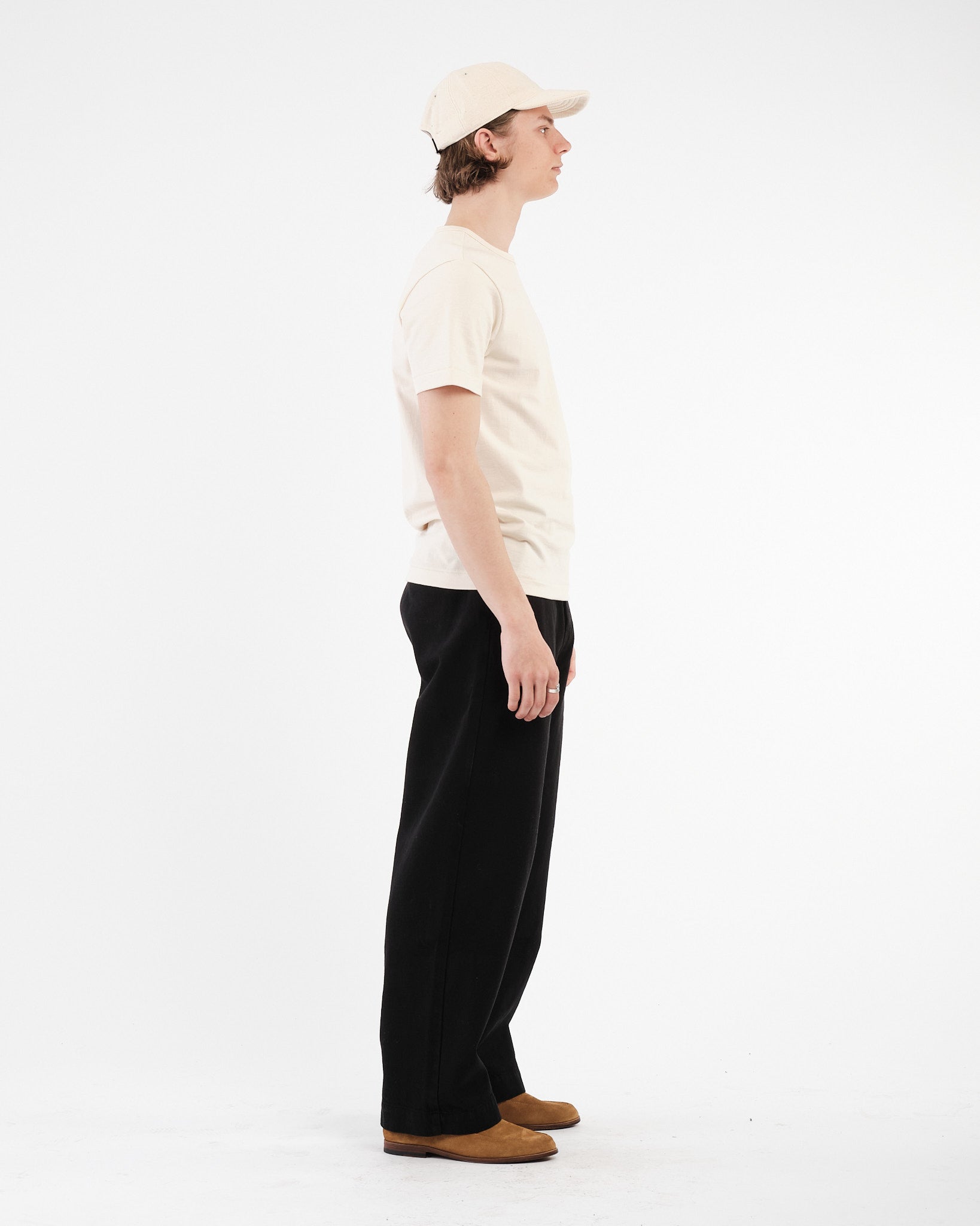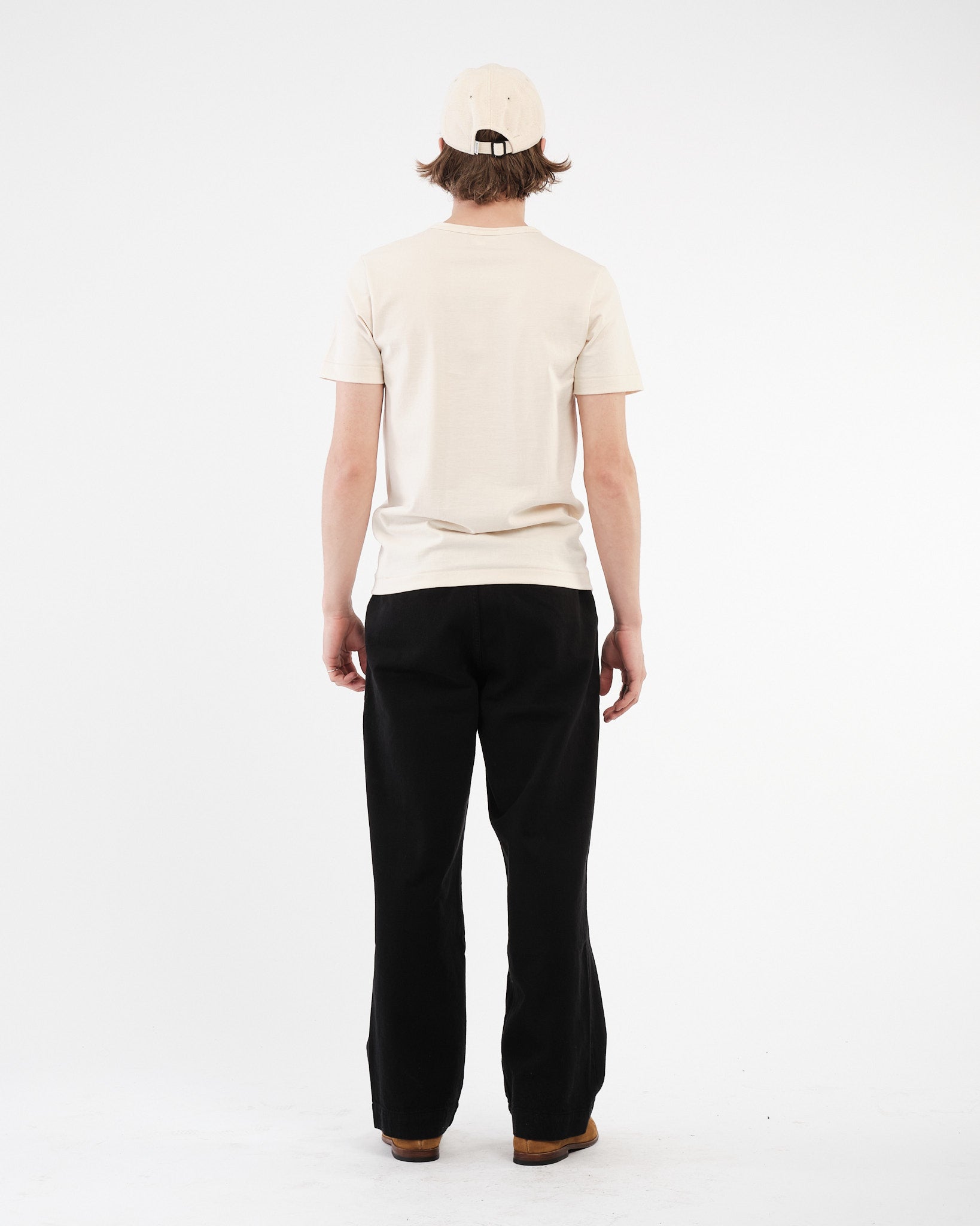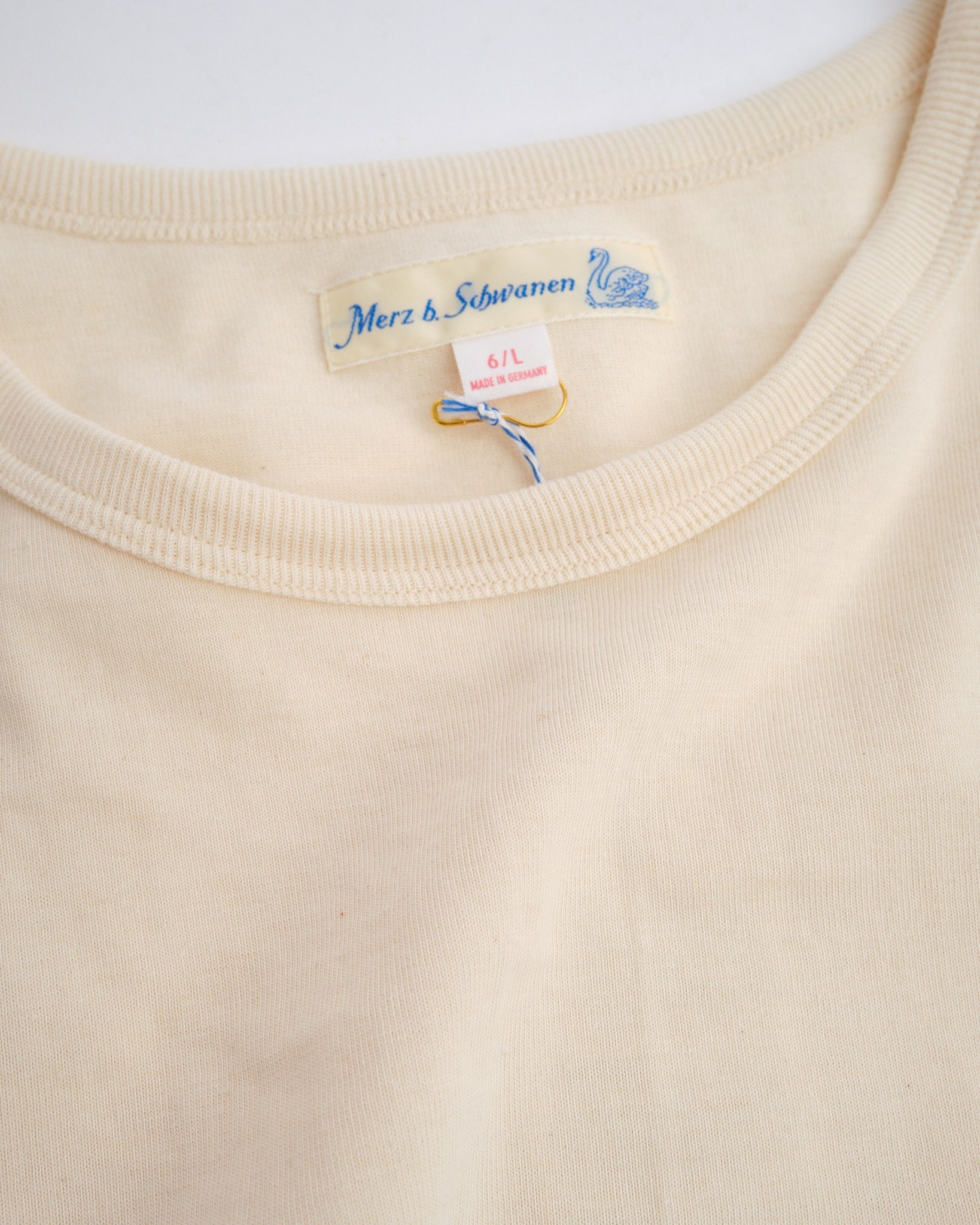 De klassieke ronde hals, afgesneden mouwzomen, en driehoekige inzet onder de arm dragen allemaal bij aan maximaal comfort, terwijl de stevige 2-draads stof die kenmerkende Merz textuur biedt — duurzaam, ademend, en gebouwd om lang mee te gaan. Een iets langere lengte zorgt voor minimale krimp na de eerste wasbeurt. Een ware moderne klassieker met schermtijd referenties.