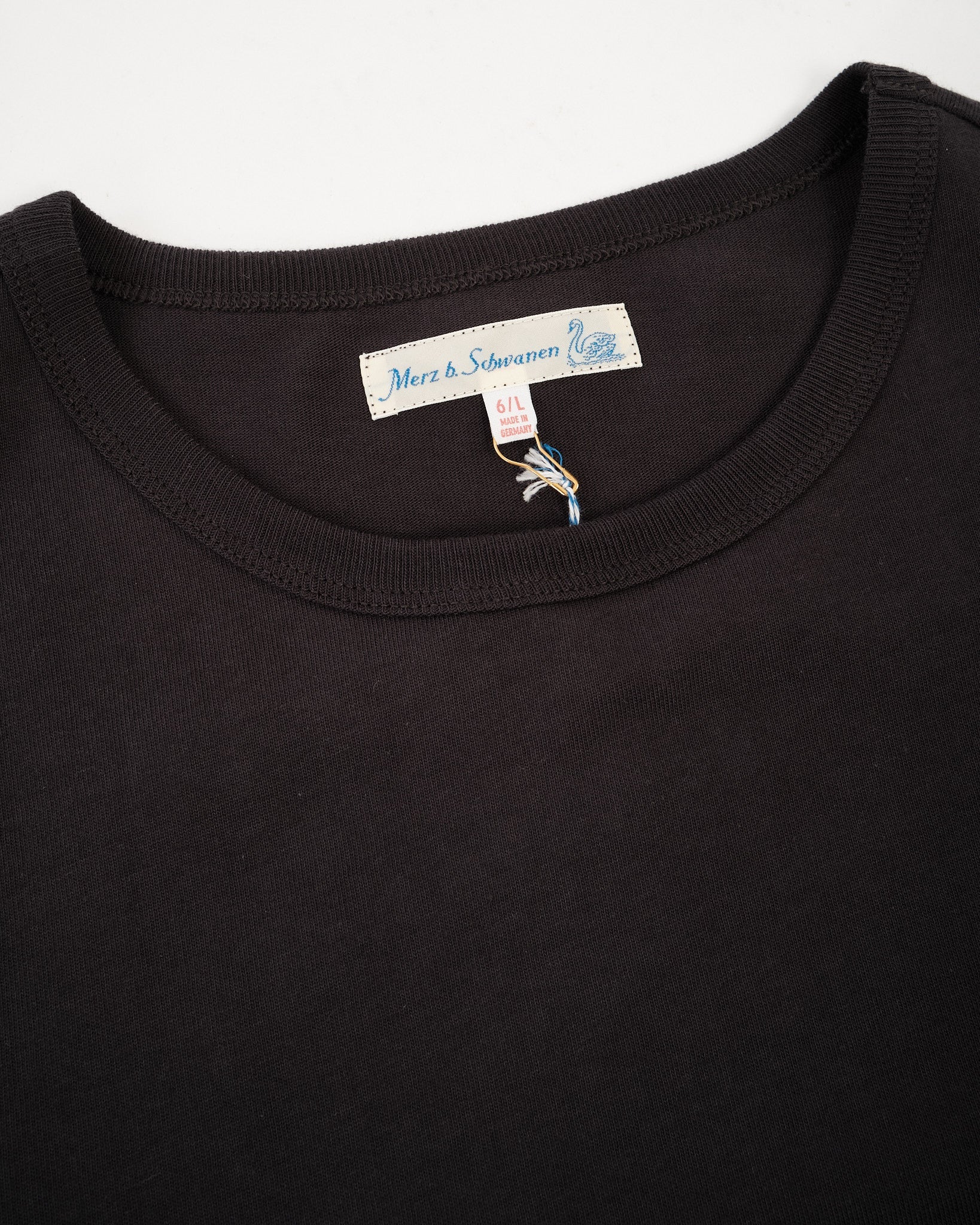 The 2M15 T-shirt by Merz b. Schwanen captures the essence of authentic mid-century craftsmanship with a contemporary edge. Made in Germany on original 1960s circular knitting machines, this 230 g/m² sturdy jersey T-shirt delivers a dense yet soft feel that lasts for years. Crafted from 100% organic cotton, it features side seams and underarm inserts for a fit that feels both structured and natural. Inspired by mid-century aesthetics, it bridges vintage spirit and modern comfort—an elevated everyday essential that stands as a true original.