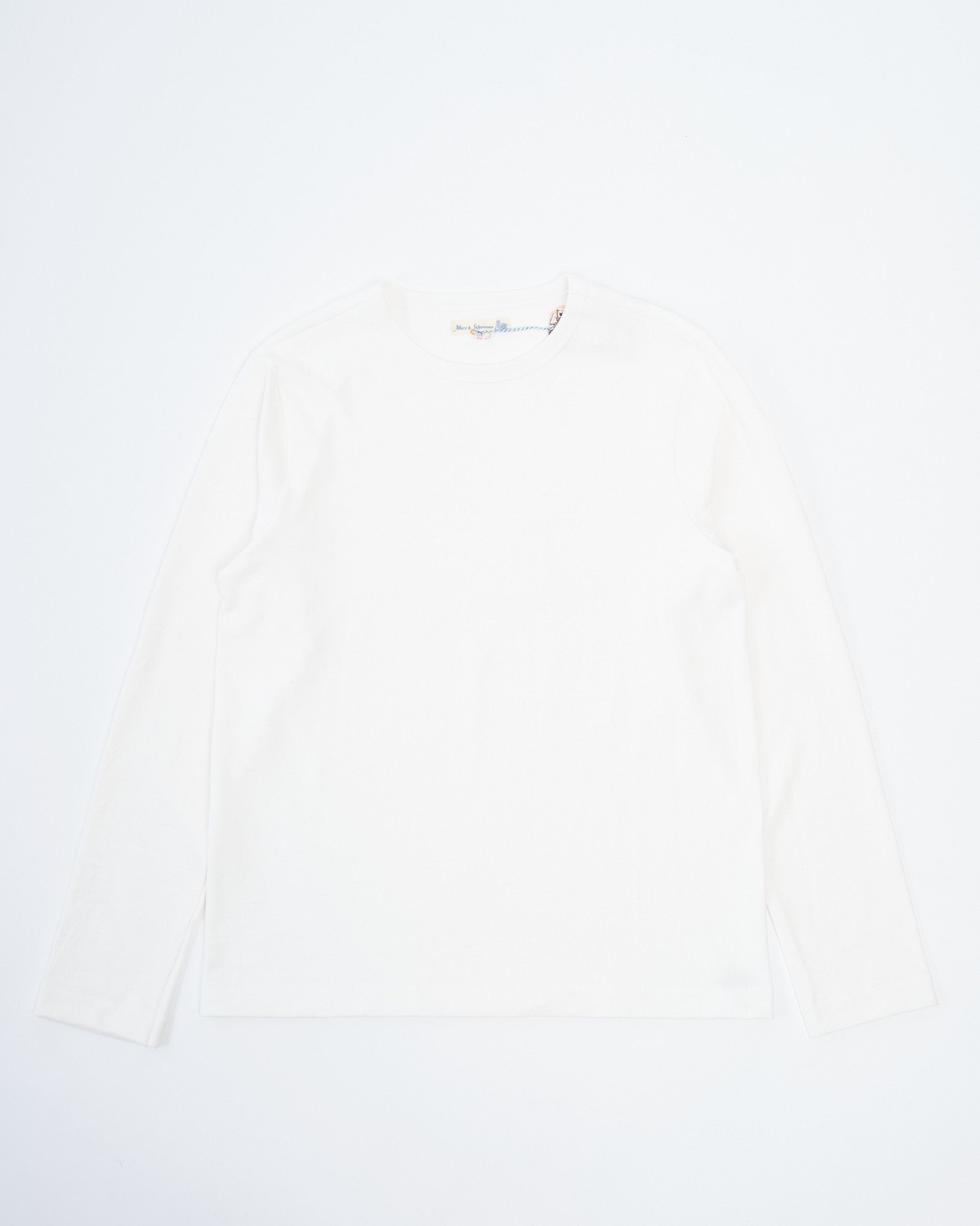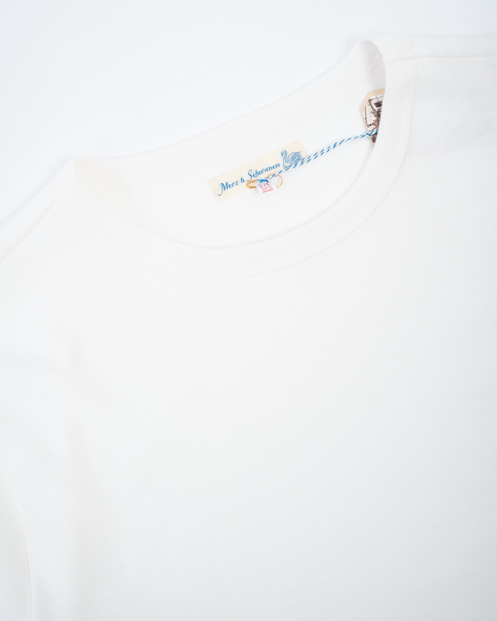 The 2S18 Heavy Longsleeve in White by Merz b. Schwanen is not for the faint of heart — this is loopwheeled fabric at its most robust. Made in Germany on rare loopwheel machines, the fabric boasts an exceptionally dense structure with subtle slub, giving it both presence and character. Despite its serious weight, the 100% organic cotton construction offers natural comfort and breathability. With a timeless cut and raw authenticity, this piece is built to last and to be worn hard — possibly the heaviest jersey you’ll ever own.