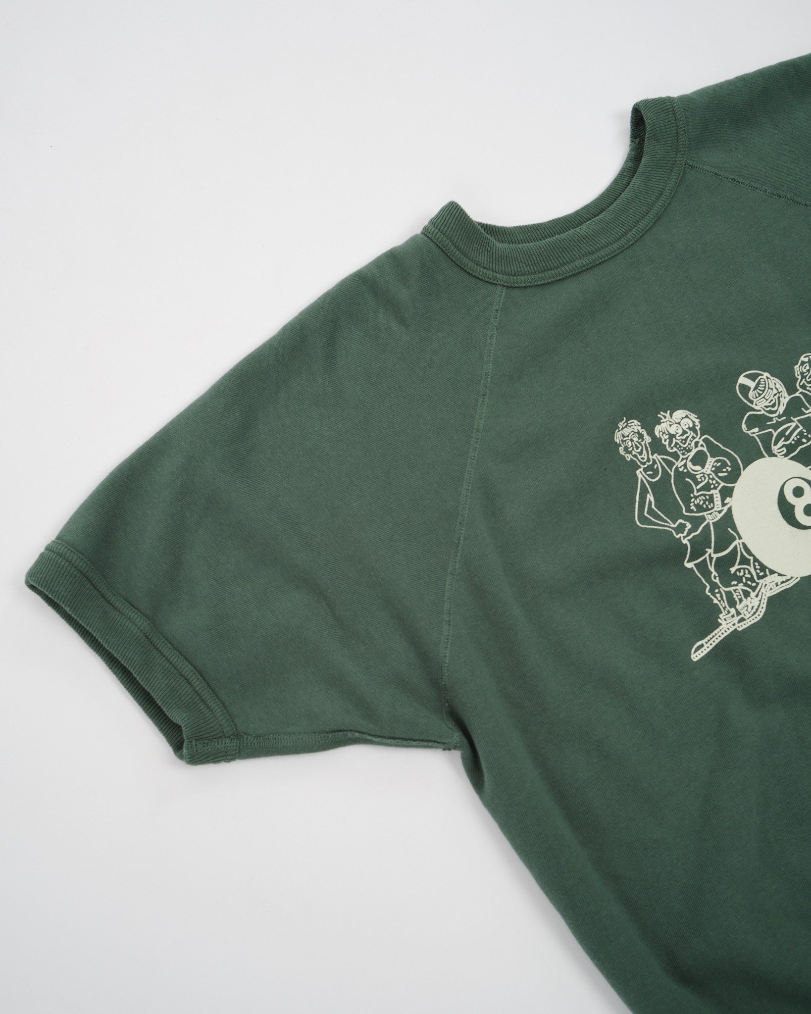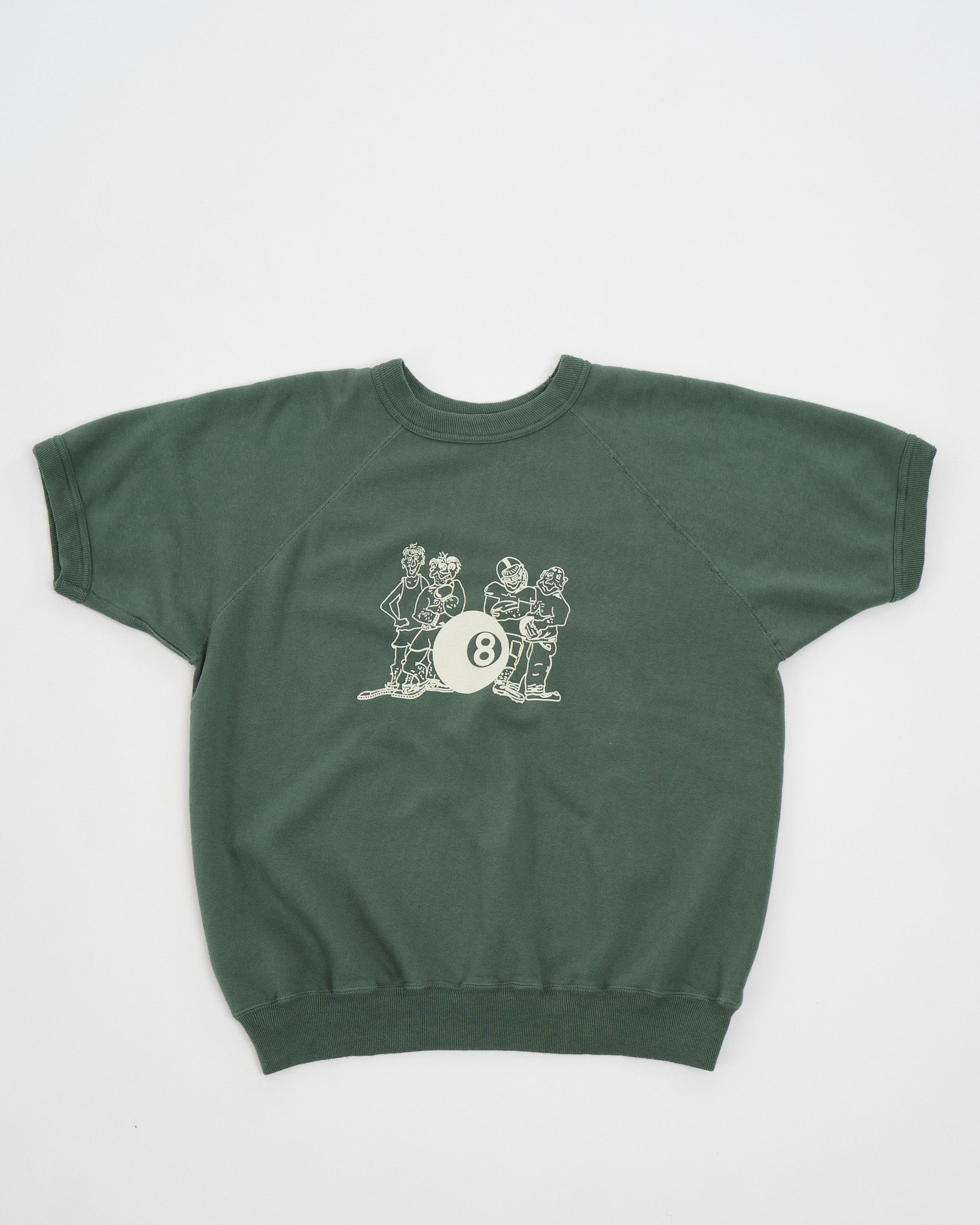 Stap in tijdloze stijl met WAREHOUSE & CO.'s 4084 KORTE MOUW SW 8BALL in GROEN. Deze korte mouwen sweatshirt, geïnspireerd door het Amerikaanse klimaat, diende historisch gezien als sportkleding voor opwarmingen, vandaar dat vintage stukken vaak een nauwsluitende pasvorm hadden. Om deze maatuitdaging aan te pakken, heeft WAREHOUSE & CO. het sweatshirt opnieuw ontworpen, waarbij gezorgd is voor een comfortabele breedte en passende lengte.