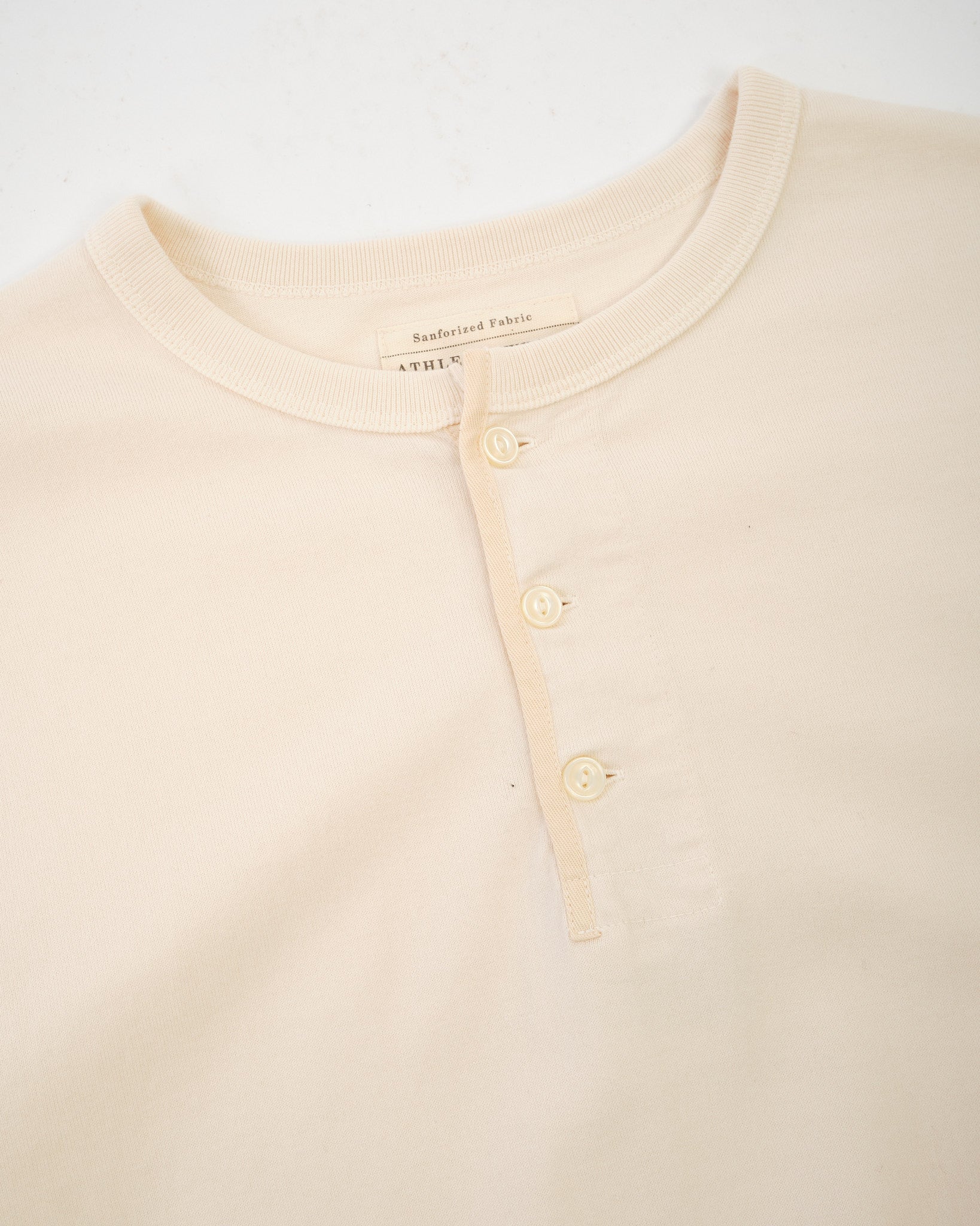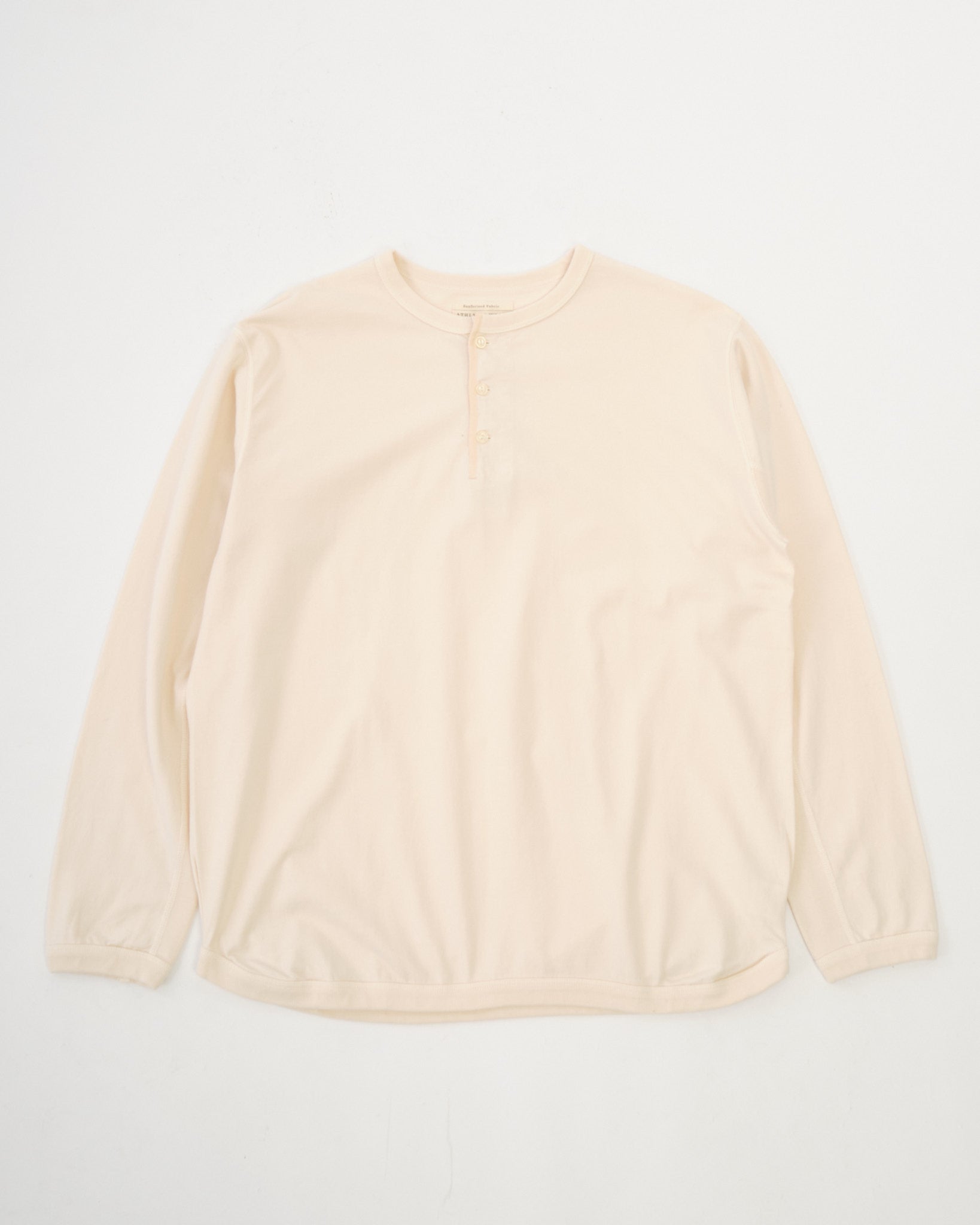 The body is circular knit on vintage machines for a clean, seam-free fit, while the 4-needle flat seam construction makes it soft against the skin. The Henley neckline with button closure adds versatility and heritage charm, while rib cuffs ensure a secure fit at the wrists. Thanks to a unique spinning method, air is trapped inside the yarn, giving the shirt a deceptively light hand while retaining a substantial feel.