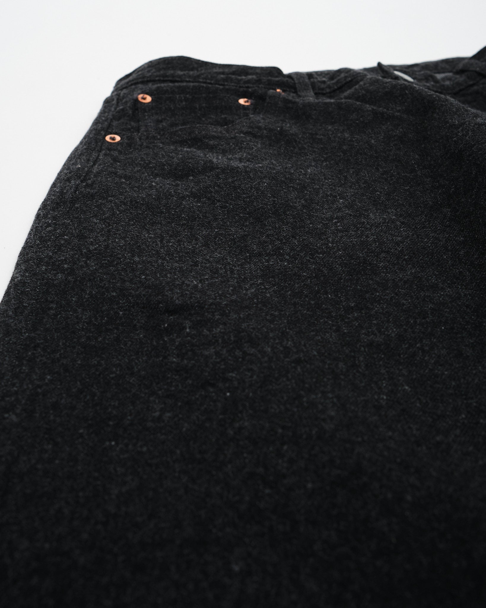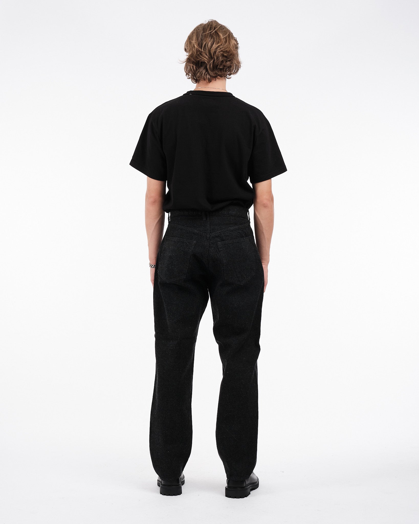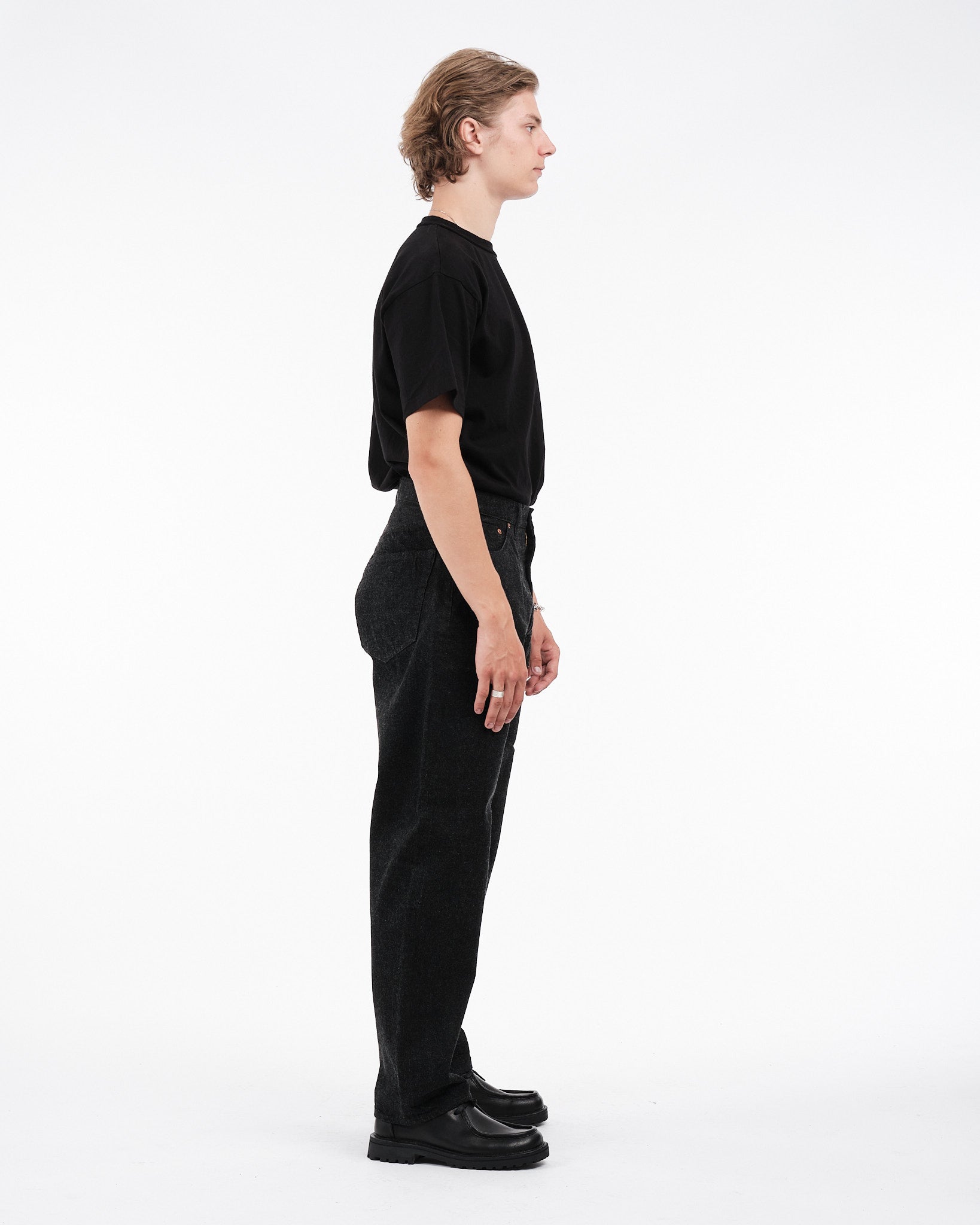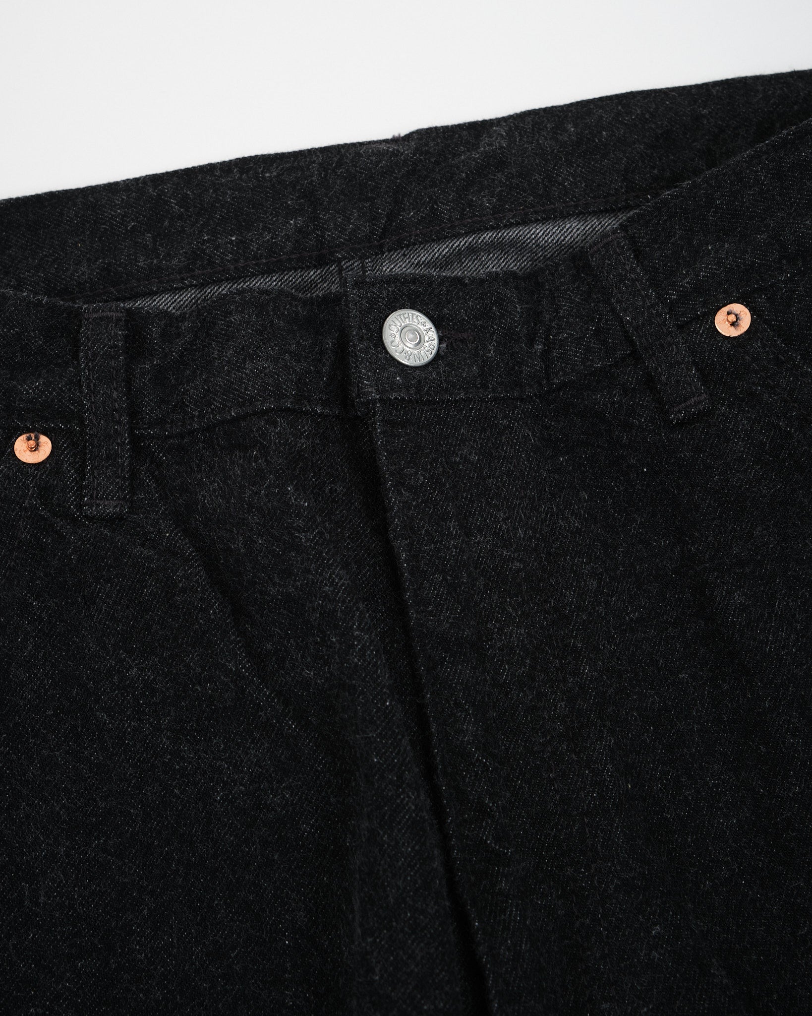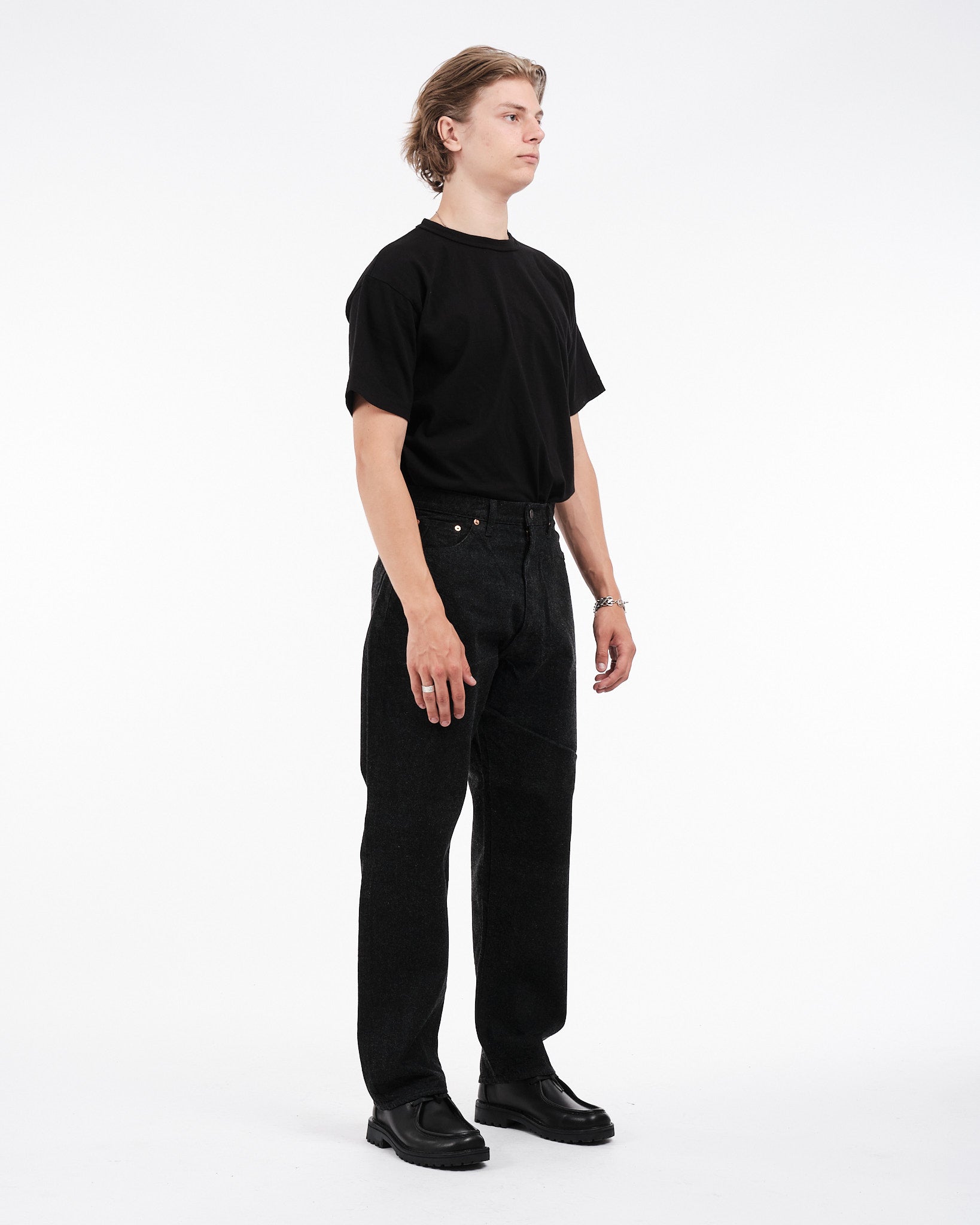 • 13,5oz Selvedge Denim: Geverfd zwart met een unieke vintage-geïnspireerde look