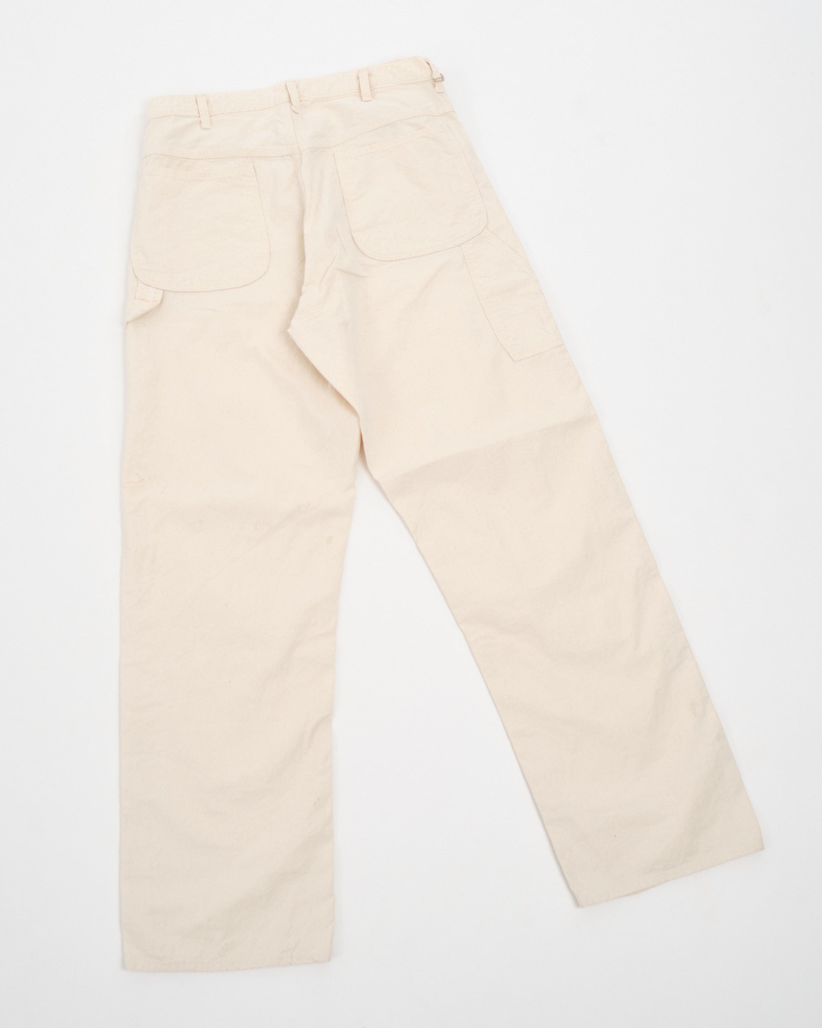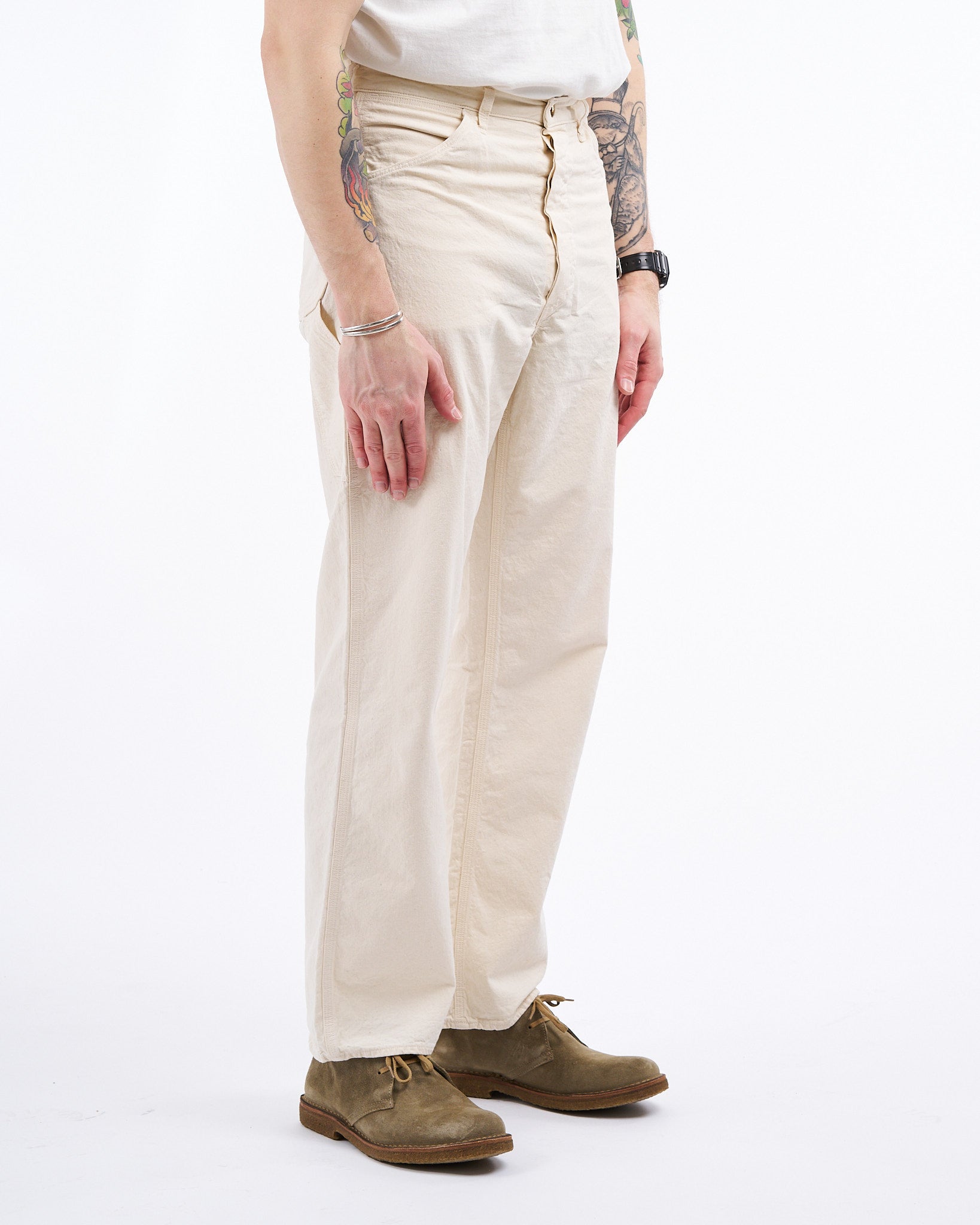 Stap in de wereld van tijdloze werkkleding met de ORSLOW 60'S PANTS in Ecru. Deze schildersbroeken van orSlow brengen een eerbetoon aan ontwerpen die hun toewijding aan uitzonderlijk vakmanschap en blijvende stijl laten zien. Vervaardigd in Japan zijn ze gemaakt van katoenen twill stof wat zowel veerkracht als comfort garandeert. Met een versterkte tailleband voor extra duurzaamheid, evenals een hamerlus en bar tack stiksels die hun authentieke werkkleding esthetiek benadrukken, mengen deze broeken moeiteloos in elke outfit—of je nu gaat voor een casual of meer geklede look—terwijl ze altijd een statement maken.