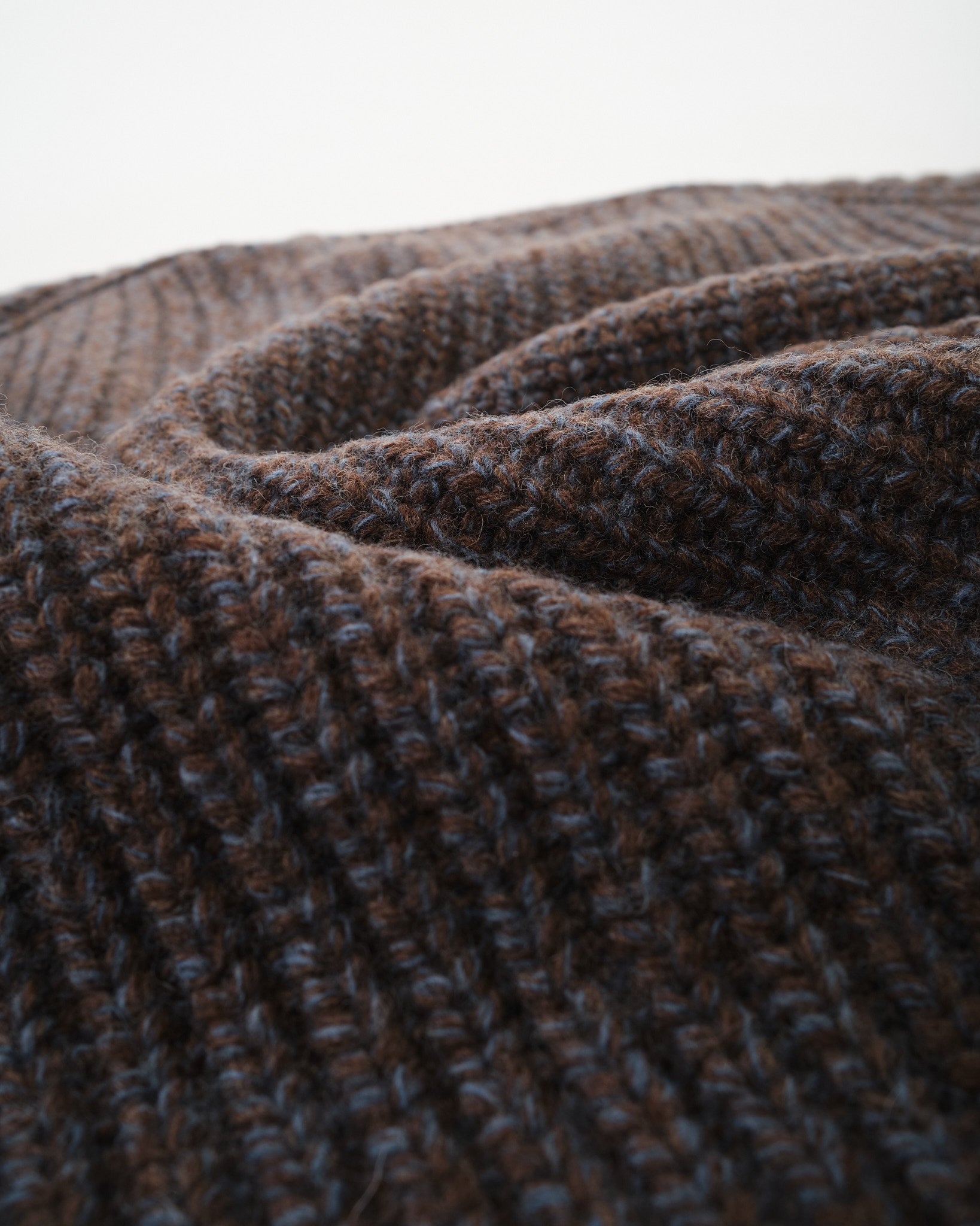 The August Chunky Crew Neck Knit in Brown brings serious heft in the best way. Crafted from thick, soft organic wool, this sweater is all about volume and warmth. It’s knitted in a traditional fisherman’s rib stitch that creates a deeply textured fabric with cozy loft. Fully fashioned and regular in fit, August is the kind of knit that feels both rugged and refined — whether you’re layering up or making it the main event.