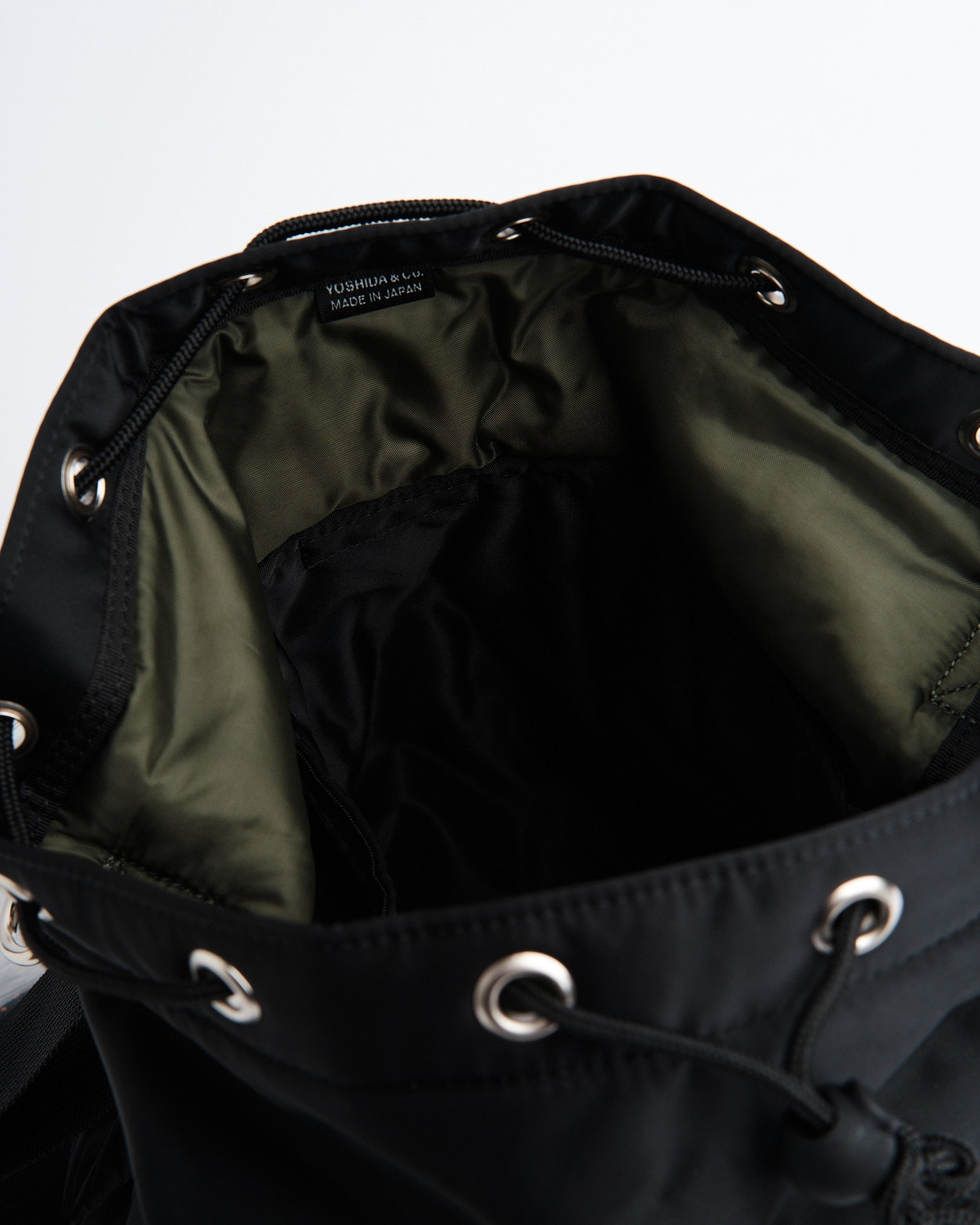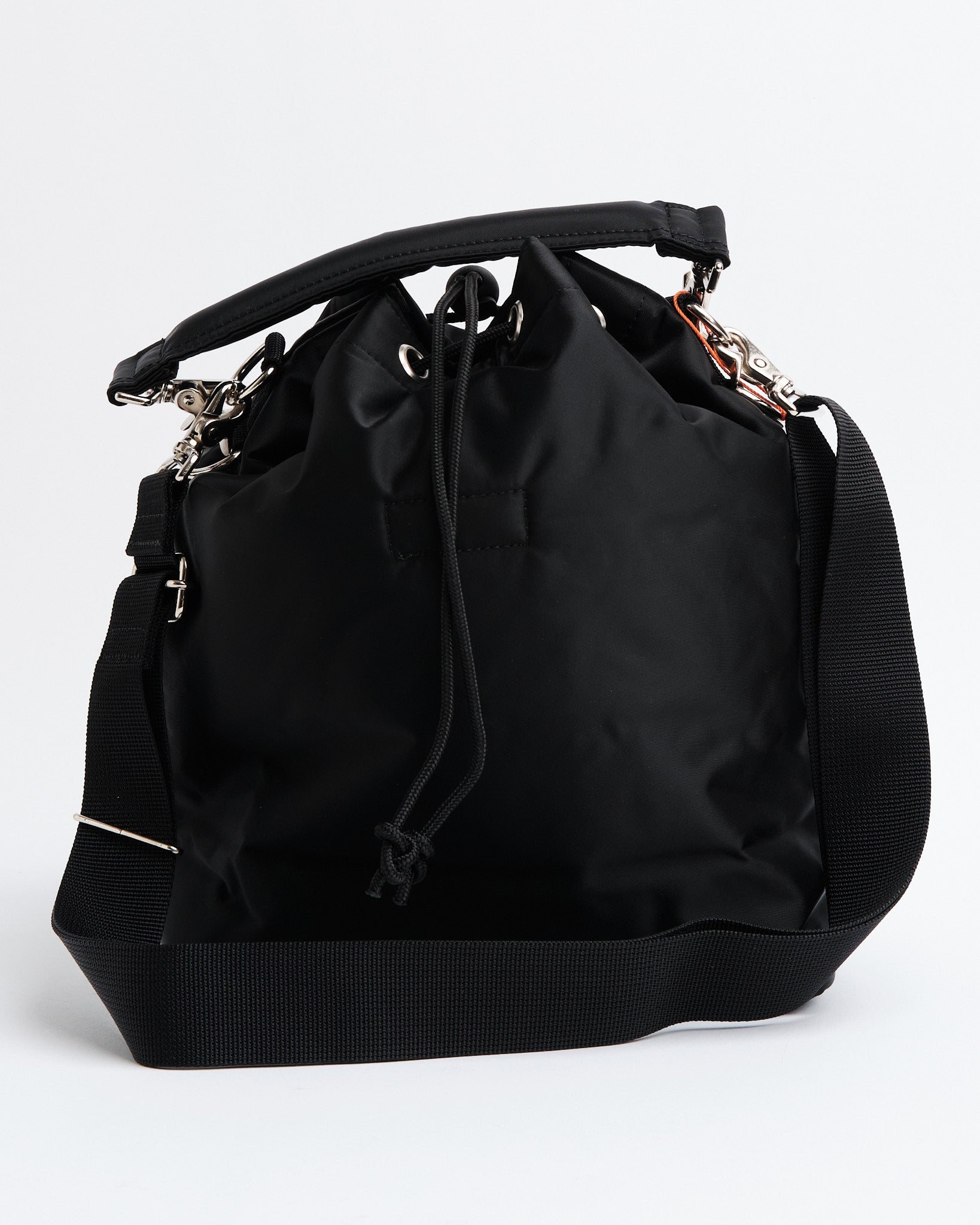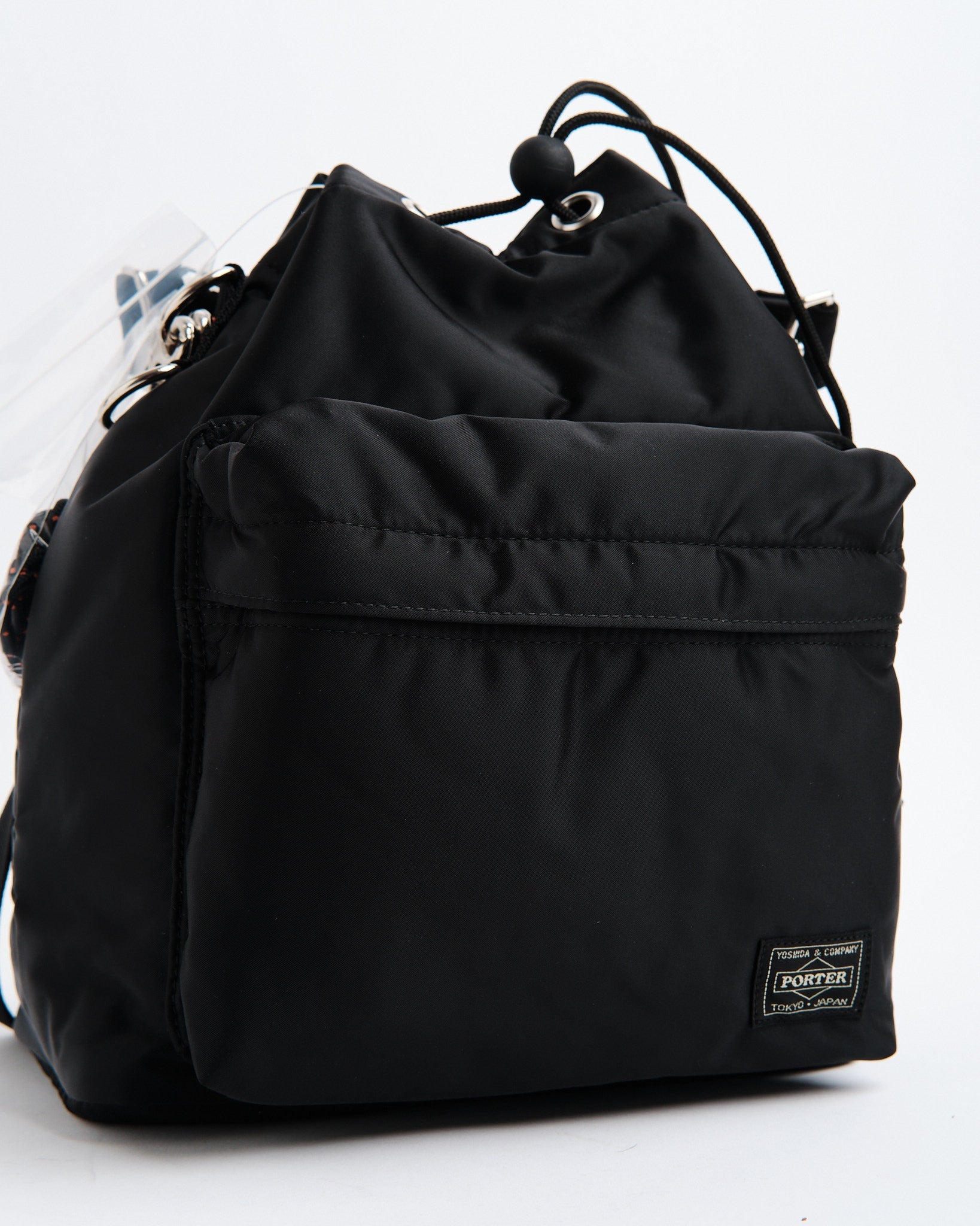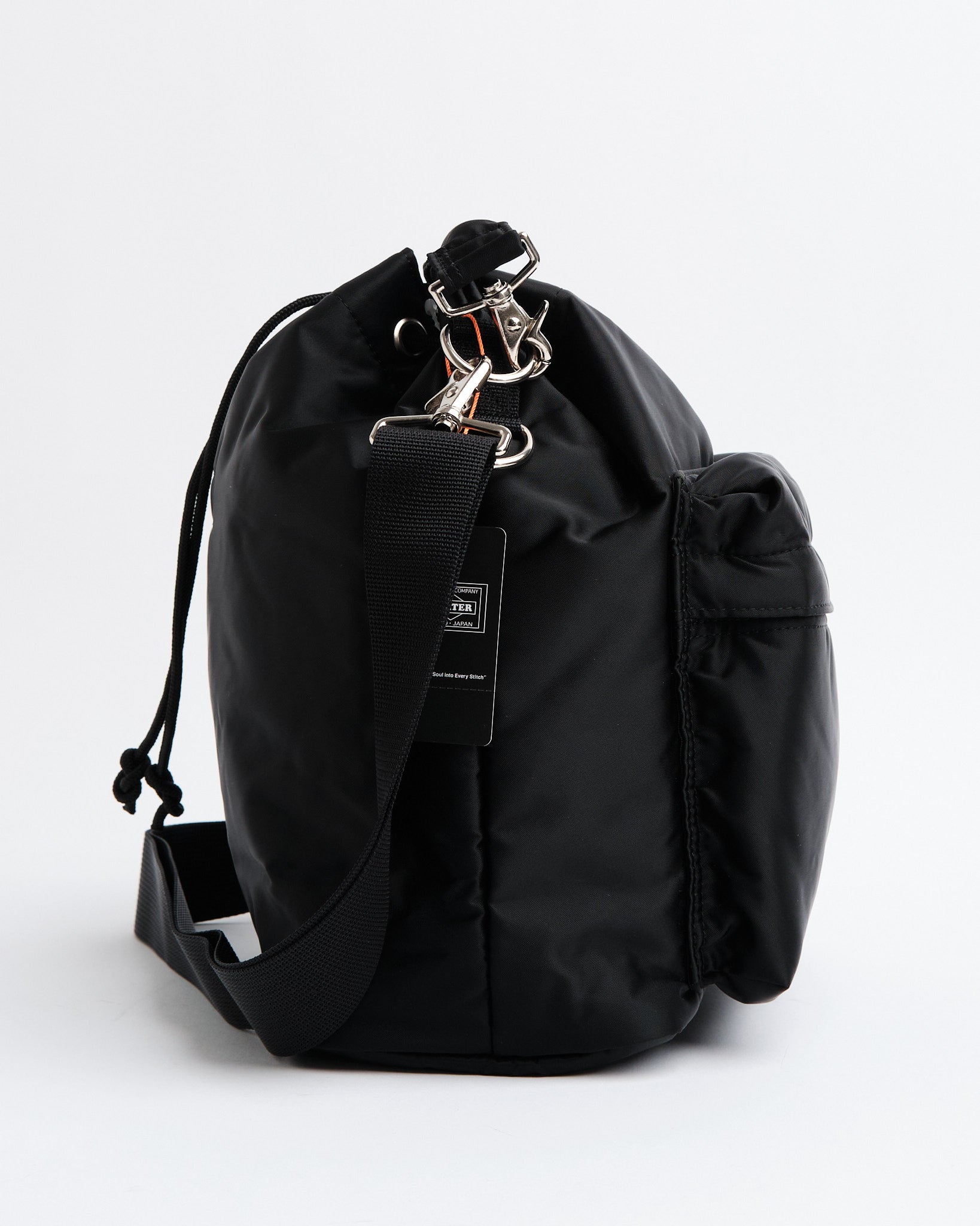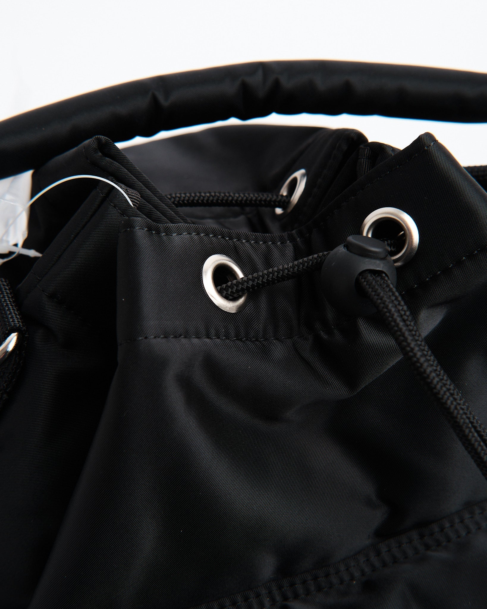 Presentatie van de PORTER YOSHIDA 381 16853 10 BALLOON BAG (L) in ZWART. Deze speciale trekkoordtas is geïnspireerd op zakjes die gebruikt worden voor het dragen van kleine voorwerpen met zijn unieke afgeronde vorm. Vervaardigd uit nylon twill stof met een katoen verbindingsmethode, het pronkt met een glans en zacht gevoel. De tas kan gesloten worden met het trekkoord aan de bovenkant en je kunt de vorm aanpassen door de koordstopper vast te zetten. Het komt met handvatten en een schouderriem die veelzijdigheid biedt in hoe het gedragen kan worden. Ofwel met de hand of over de schouder. Het 2WAY ontwerp heeft twee soorten trekkoorden; een zwart en oranje koord, evenals een effen kleur koord dat bij de tas past. Binnenin vind je een olijfkleurige voering. Met afmetingen van B; 220mm, H; 290mm, D; 130mm (B; 8.7in H; 11.4in,D;5.1in) en een gewicht van 432g (15.2oz) is deze ruime tas perfect voor het houden van een 500ml waterfles of tablet.