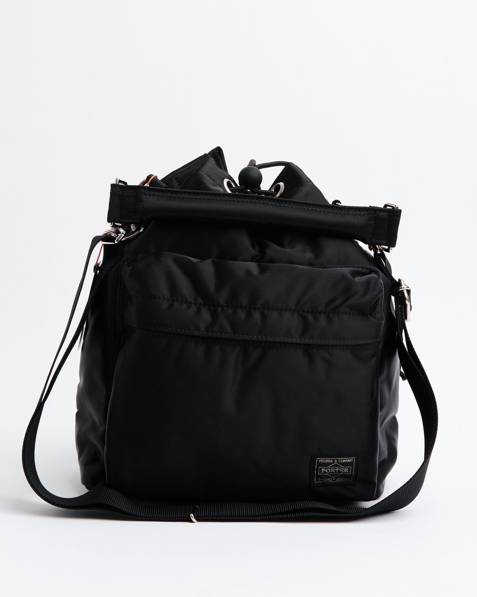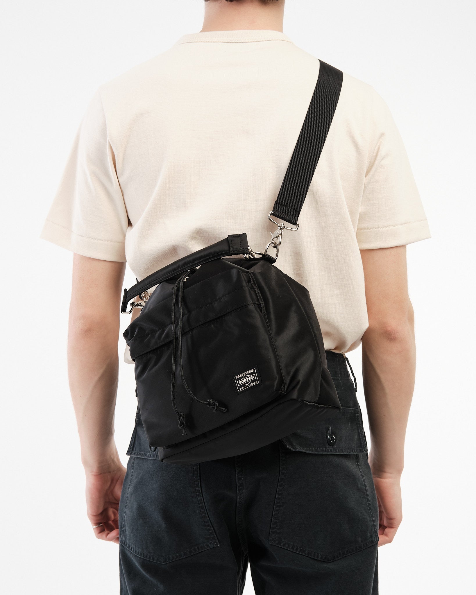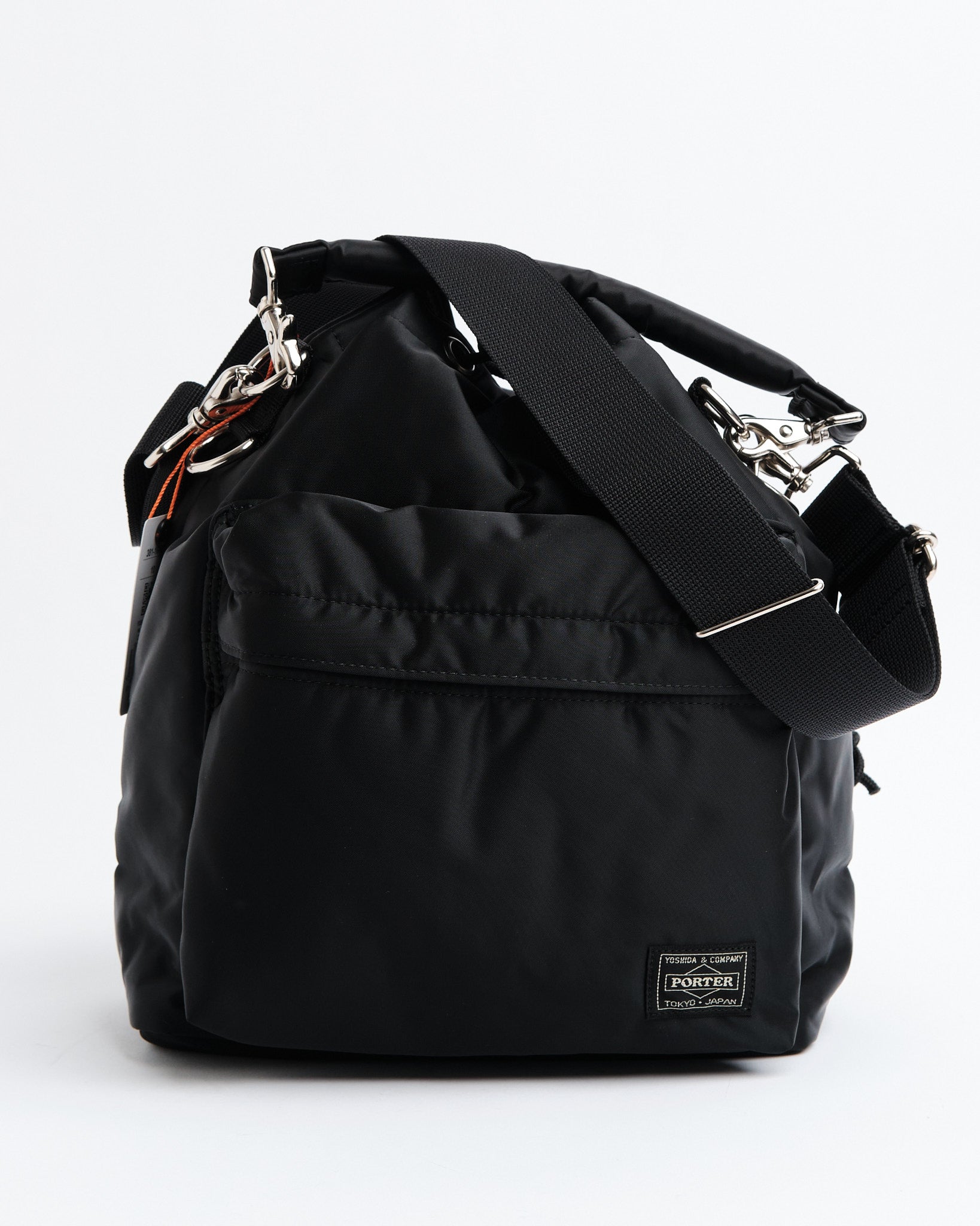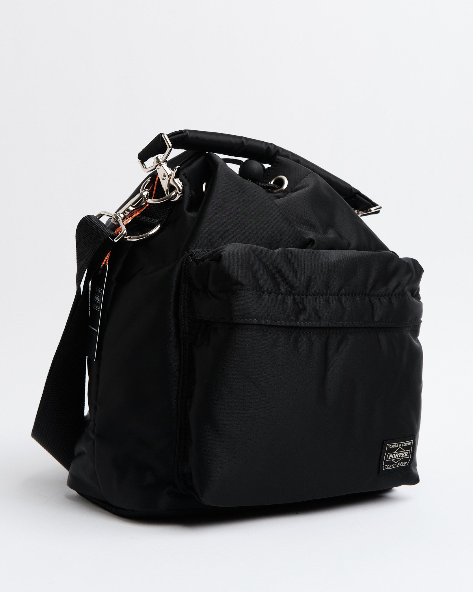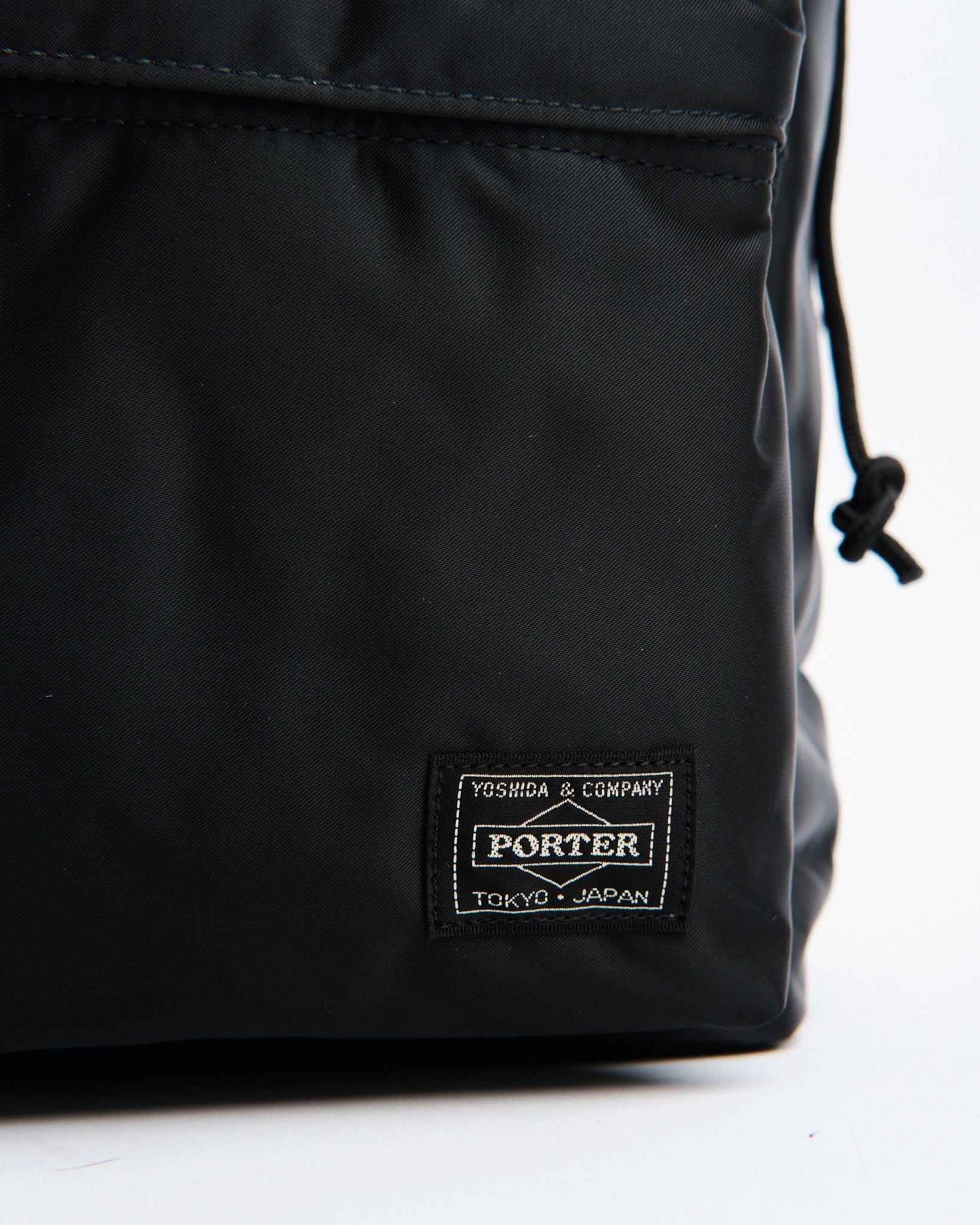 Presentatie van de PORTER YOSHIDA 381 16853 10 BALLOON BAG (L) in ZWART. Deze speciale trekkoordtas is geïnspireerd op zakjes die gebruikt worden voor het dragen van kleine voorwerpen met zijn unieke afgeronde vorm. Vervaardigd uit nylon twill stof met een katoen verbindingsmethode, het pronkt met een glans en zacht gevoel. De tas kan gesloten worden met het trekkoord aan de bovenkant en je kunt de vorm aanpassen door de koordstopper vast te zetten. Het komt met handvatten en een schouderriem die veelzijdigheid biedt in hoe het gedragen kan worden. Ofwel met de hand of over de schouder. Het 2WAY ontwerp heeft twee soorten trekkoorden; een zwart en oranje koord, evenals een effen kleur koord dat bij de tas past. Binnenin vind je een olijfkleurige voering. Met afmetingen van B; 220mm, H; 290mm, D; 130mm (B; 8.7in H; 11.4in,D;5.1in) en een gewicht van 432g (15.2oz) is deze ruime tas perfect voor het houden van een 500ml waterfles of tablet.