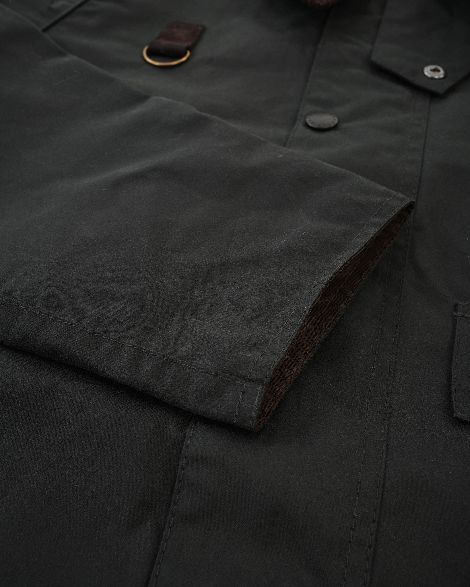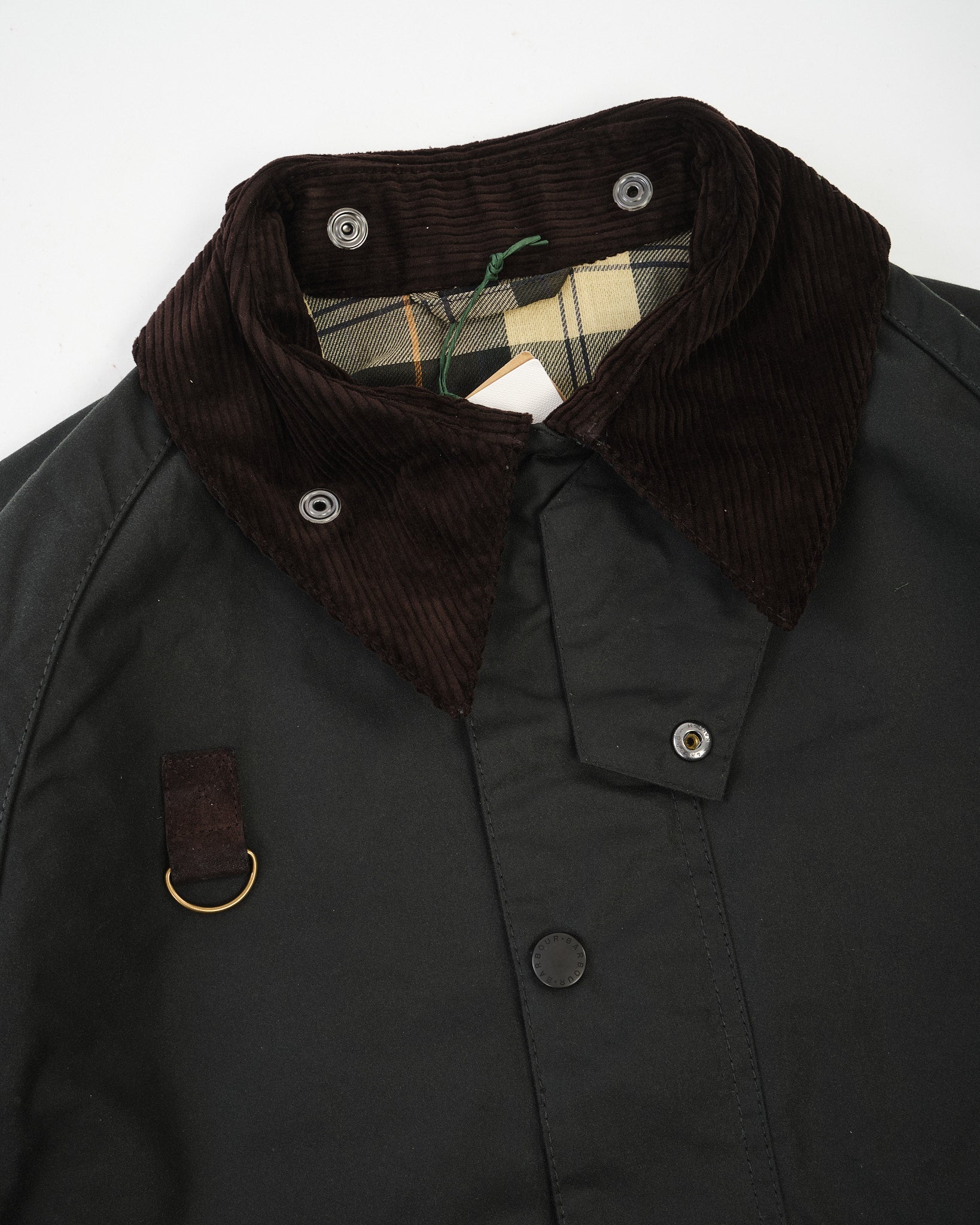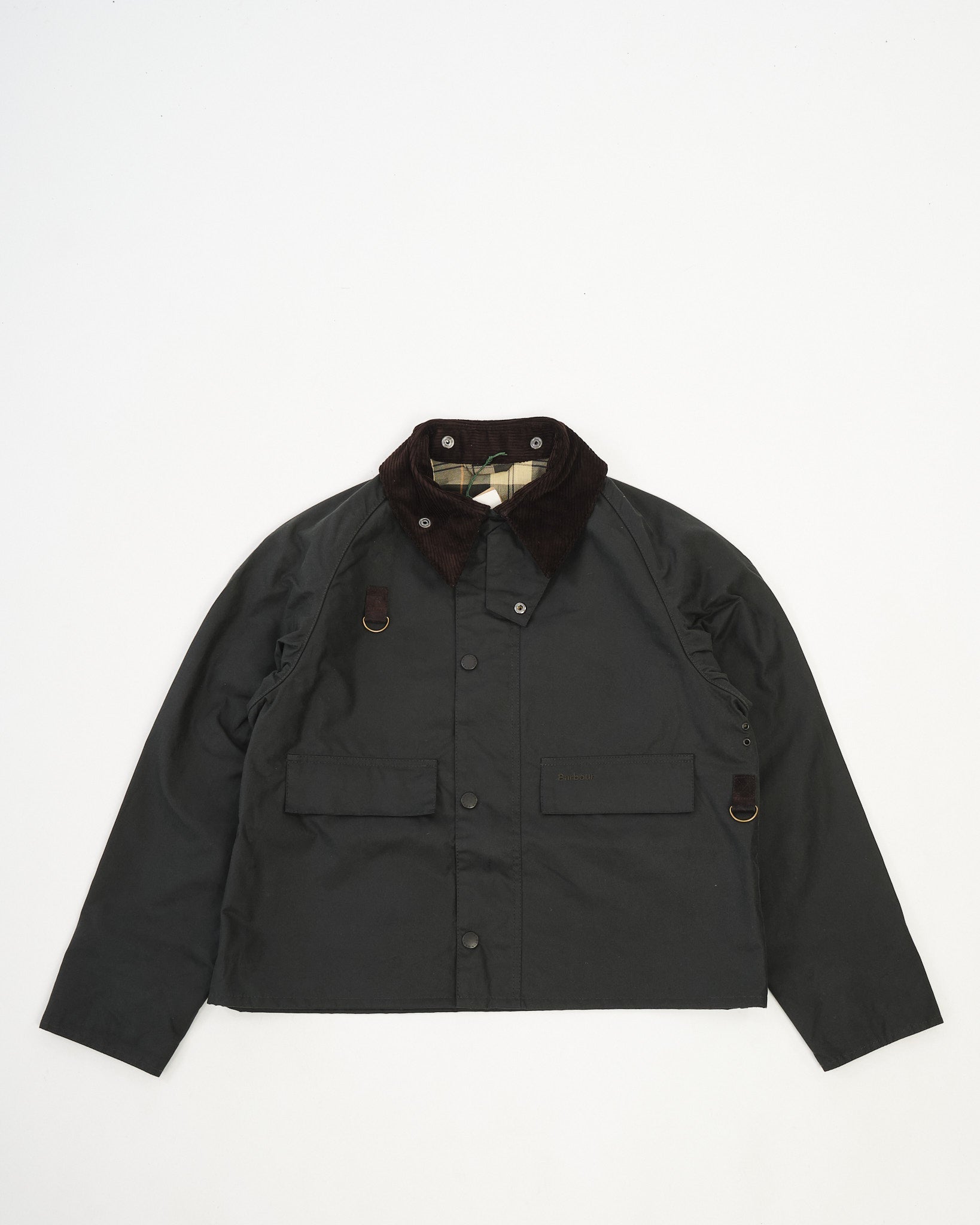 The Spey Wax Jacket in Sage by Barbour is a refreshed take on the iconic short-length fishing jacket, blending heritage utility with everyday wearability. Crafted from Barbour’s signature 6oz Sylkoil waxed cotton, it delivers a rugged matte finish in a deep, classic sage green. The fit retains its boxy, functional roots, now enhanced with extended rear coverage for improved versatility. Details include a corduroy collar with throat strap, press-stud storm flap over a brass zip, large bellows pockets, and the signature Barbour tartan lining. Built to endure the elements and age beautifully, it’s a refined staple from Barbour’s archive made for today.