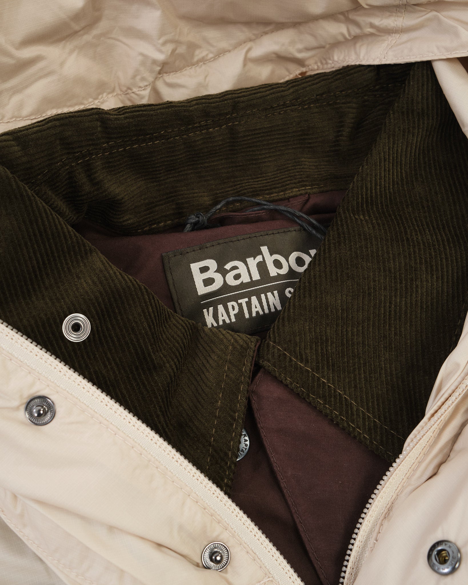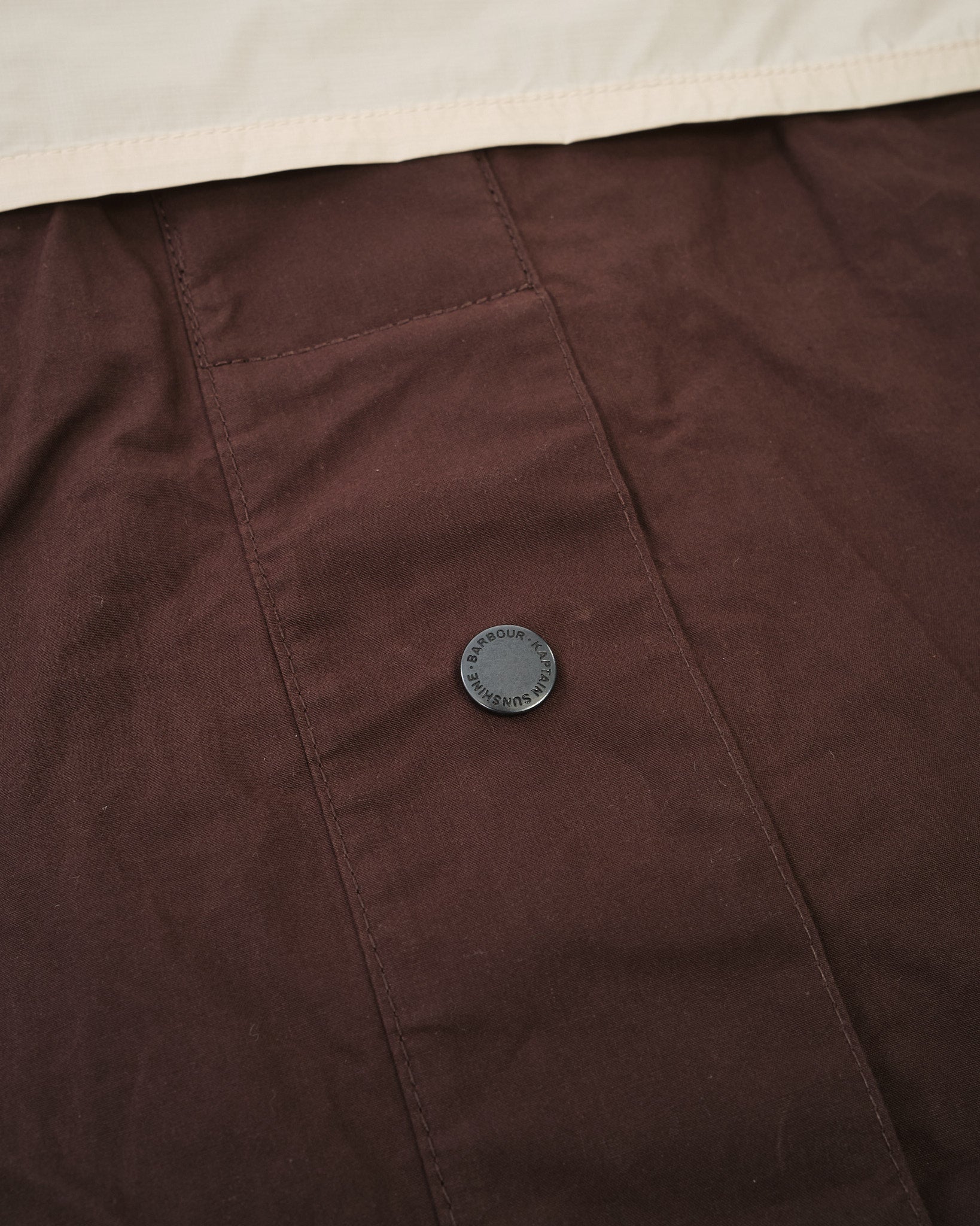 The main coat is made from a durable 200g canvas and features Barbour’s signature bellows pockets, handwarmer pockets, and a classic corduroy collar. Adjustable cuffs and a large rear vent enhance comfort and freedom of movement. Completing the design is a removable overlayer, crafted from a lightweight fabric and inspired by the compact, utilitarian Barbour Spey Jacket.