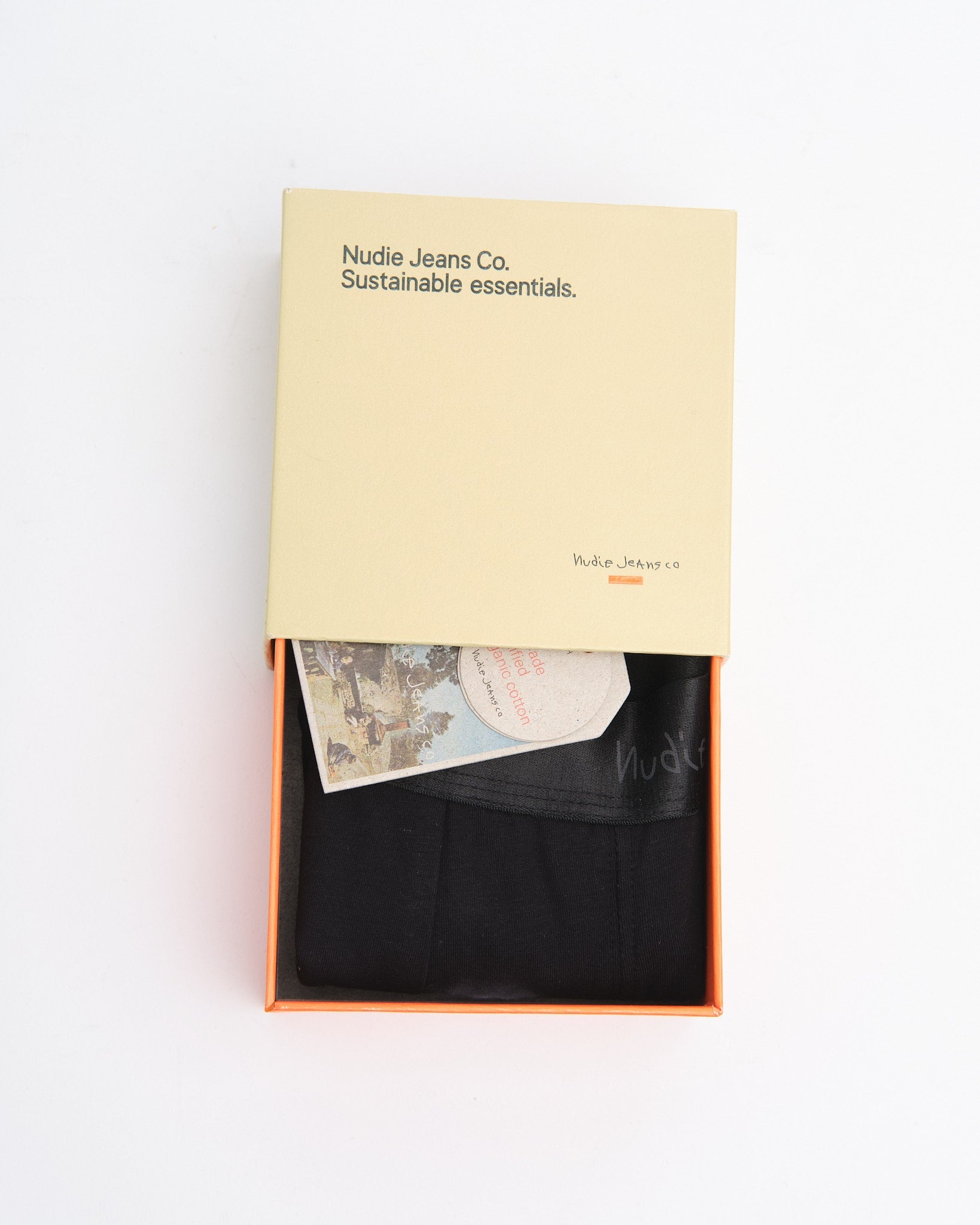 Start at layer one with the Nudie Jeans Boxer Briefs in black. Cut in a regular fit from soft organic and Fairtrade cotton jersey, they’ve been updated with a slightly roomier shape, longer legs, and a more sculpted center seam. Comfort comes first, so the inside features a printed detail instead of a scratchy label. Each pair is delivered in a recycled cotton cardboard box—part of the Nudie Jeans Essentials line. Everyday underwear made responsibly, designed to feel good from the first wear.