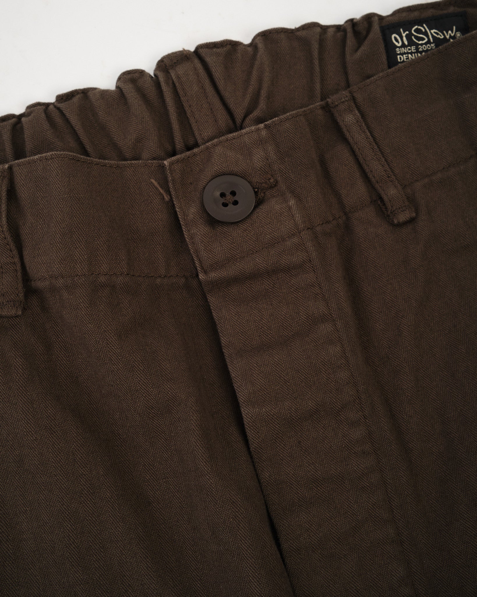 De orSlow Wide Fit Work Pants in Coffee Brown geven een moderne draai aan traditionele Franse werkkleding door een comfortabele en praktische wijde pijp ontwerp te bieden dat geschikt is voor verschillende gelegenheden. Handgemaakt in Japan met gebruik van katoenen materiaal en voorzien van een hoge taille en ruime pijpsnede die onbeperkte beweging mogelijk maakt. De stijlvolle koffiebruine tint voegt veelzijdigheid en elegantie toe aan deze broeken die perfect zijn voor zowel casual samenkomsten als formele gelegenheden. Met zakken aan de voor- en achterkant en een duurzame constructie voor langdurig gebruik benadrukt het de toewijding van orSlow aan kwaliteit en klassiek ontwerp.