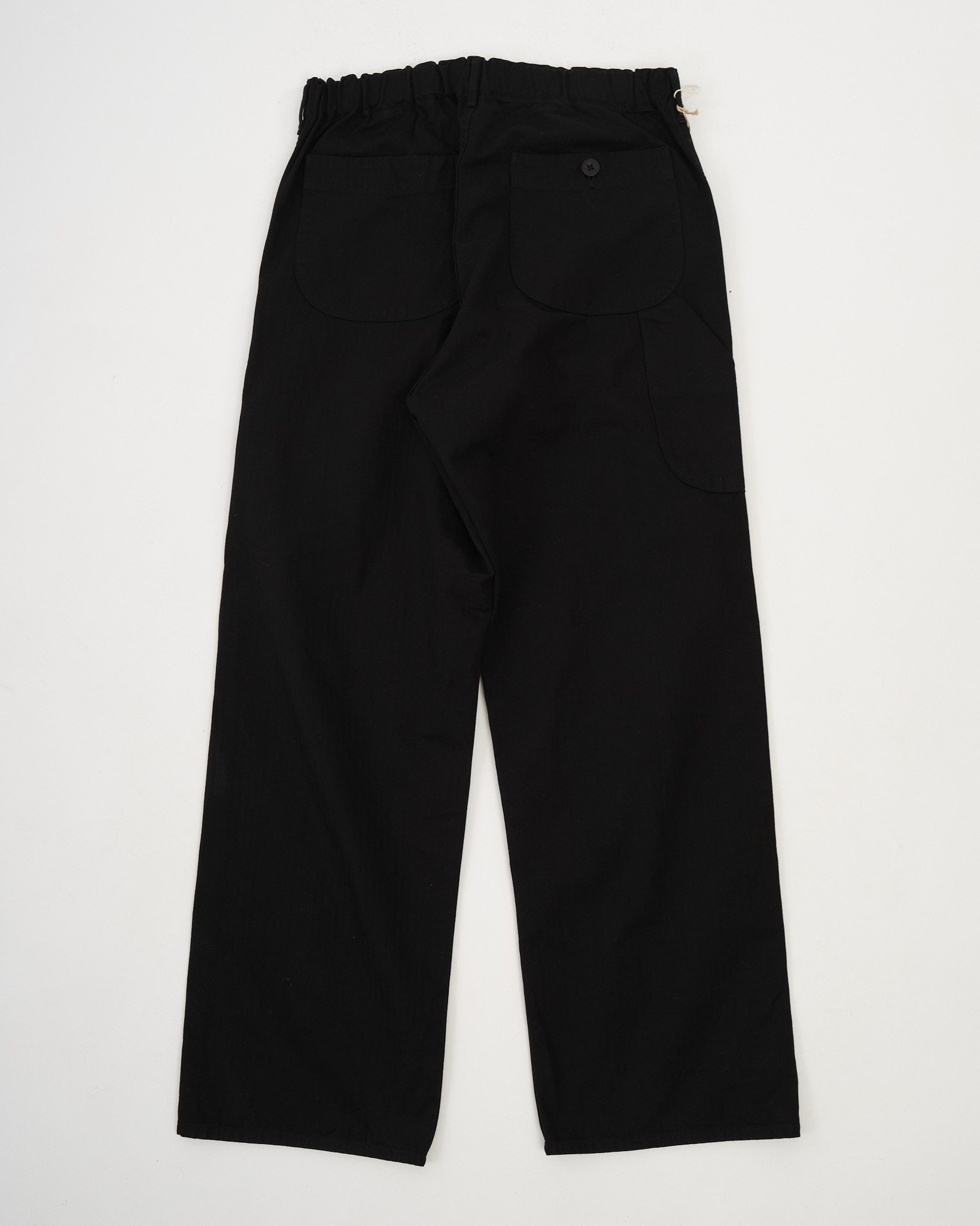 Met een wijde pijp silhouet, bieden ze voldoende ruimte voor beweging, wat hun utilitaire oorsprong weerspiegelt. De diepzwarte tint voegt een vleugje verfijning toe, waardoor ze veelzijdig zijn voor verschillende gelegenheden.