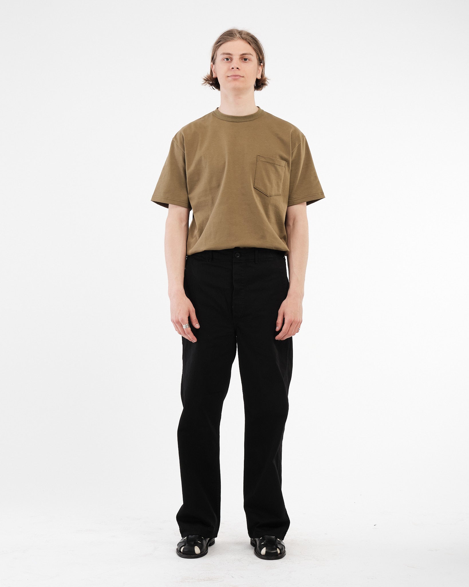 De orSlow Wide Fit Franse Werkbroek in Zwart zijn een hedendaagse interpretatie van traditionele Franse werkkleding, zorgvuldig vervaardigd om zowel duurzaamheid als moderne stijl te bieden. Gemaakt van hoogwaardige katoenen stof, bieden deze broeken een comfortabel maar robuust gevoel, geschikt voor dagelijks gebruik.