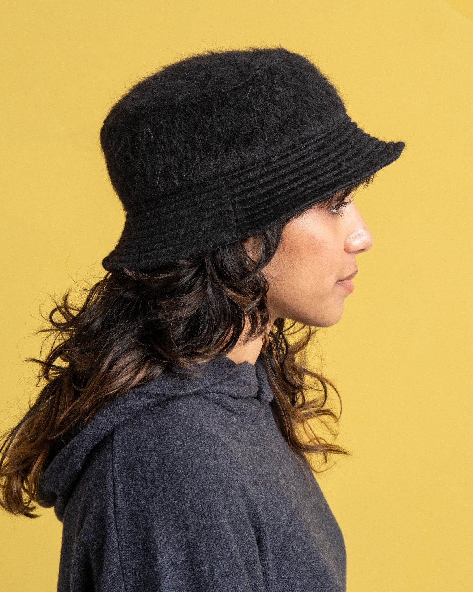 Bucket Hat Black Mohair