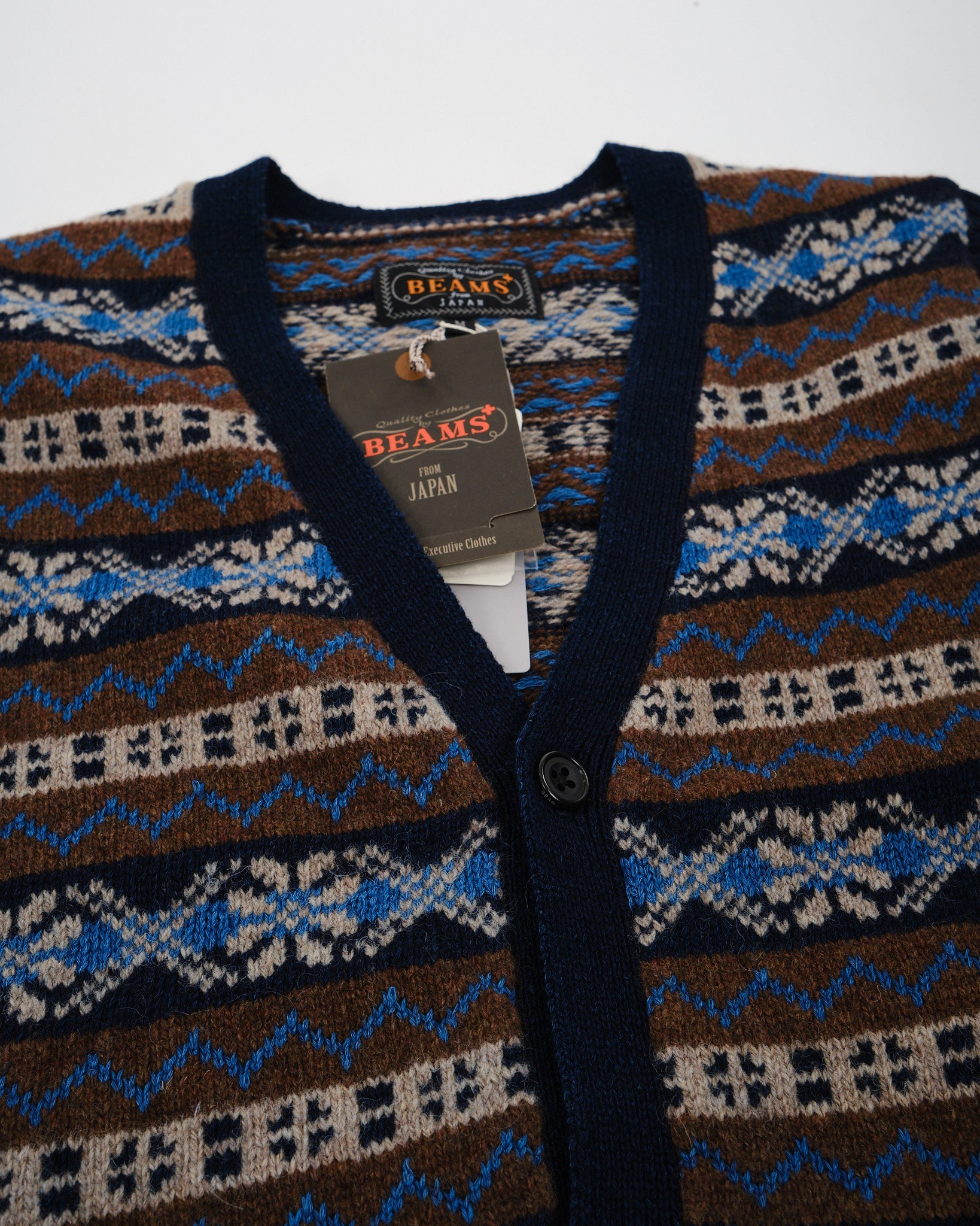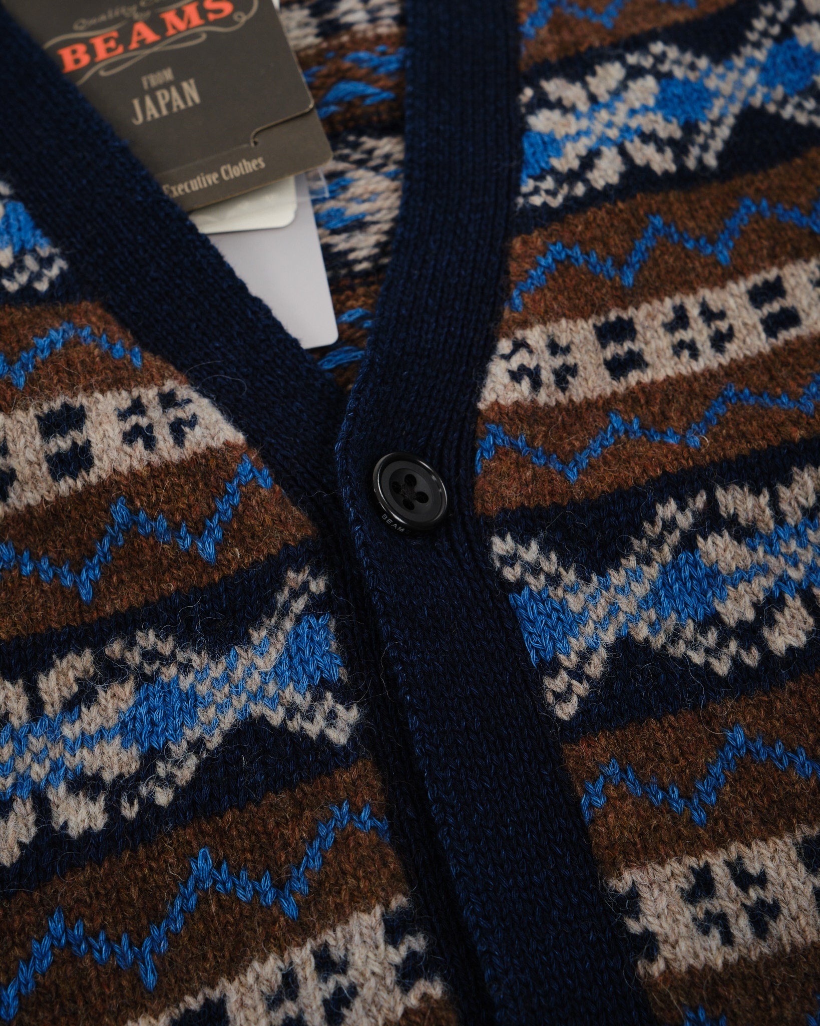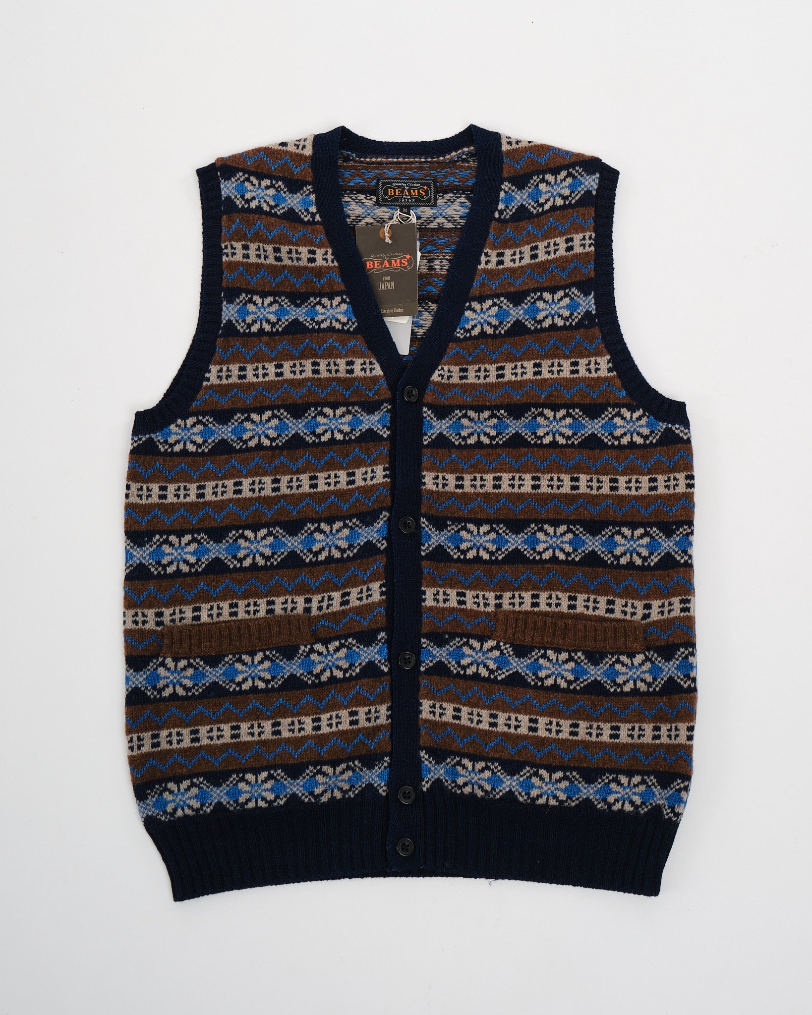 Verken de BEAMS+ Button Knit Vest, in Indigo Fair Isle Brown bij Meadow. Een vlekkeloze mix van gezelligheid en tijdloze stijl. Deze vest verwerkt prachtig het Fair Isle patroon in een rustgevend groen kleurenschema dat een eeuwige charme uitstraalt. Zorgvuldig vervaardigd in Japan met 55% wol, 44% katoen en 1% acryl toont dit kledingstuk deskundige breitechnieken. Met zijn ontwerp en praktische V-hals kraag, aangevuld met handige dubbele zijzakken, dient het als een ideaal laagjesstuk.