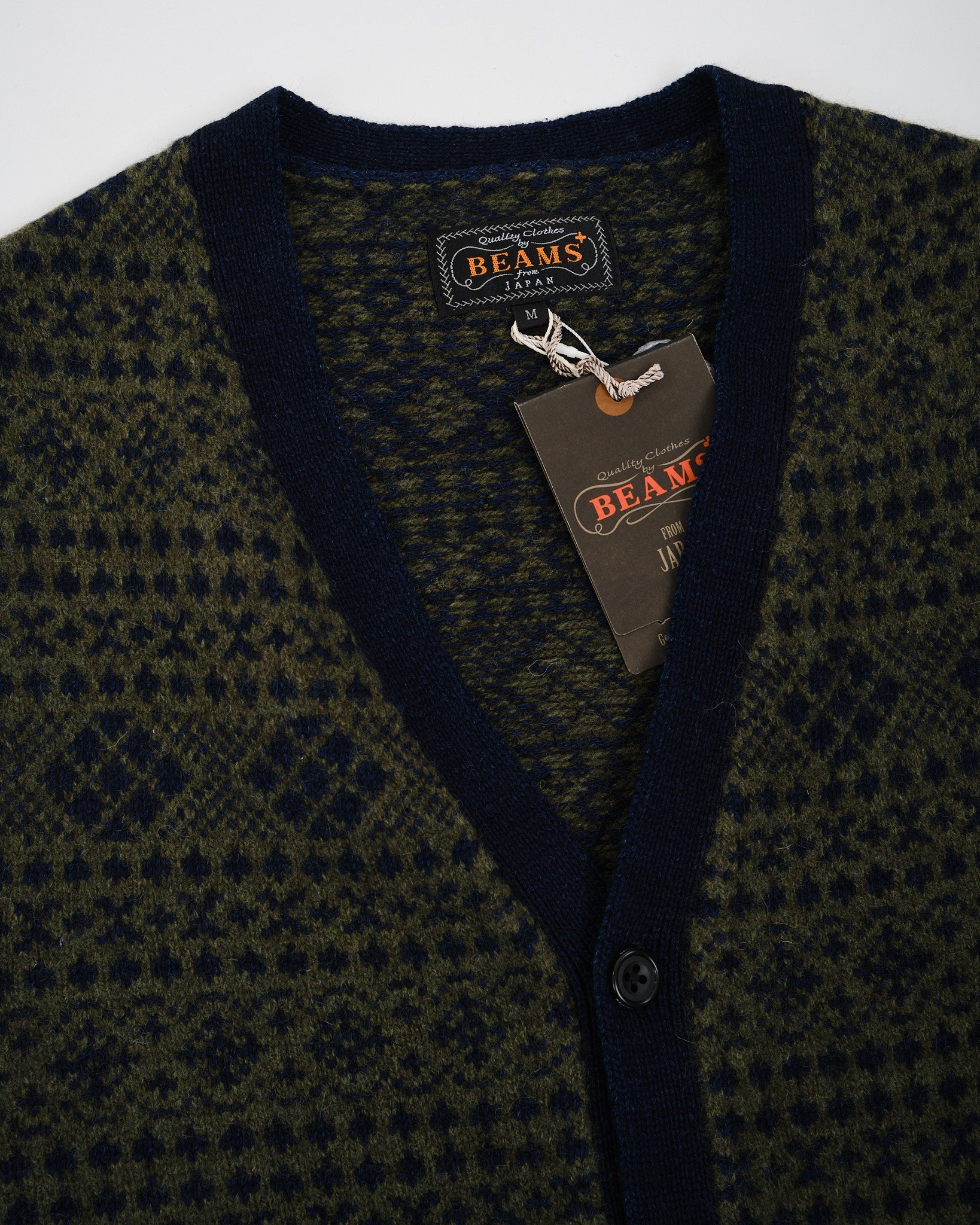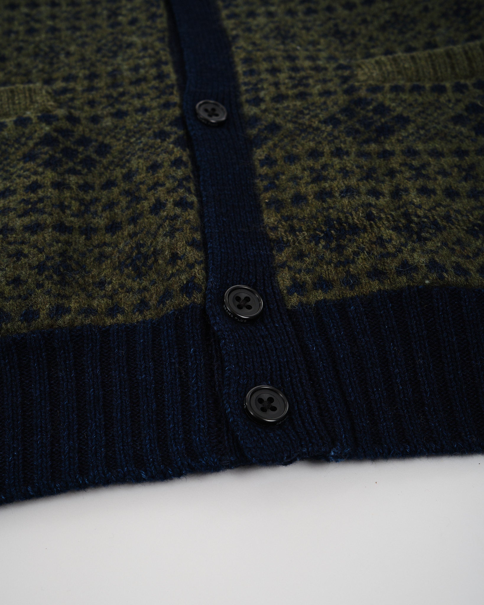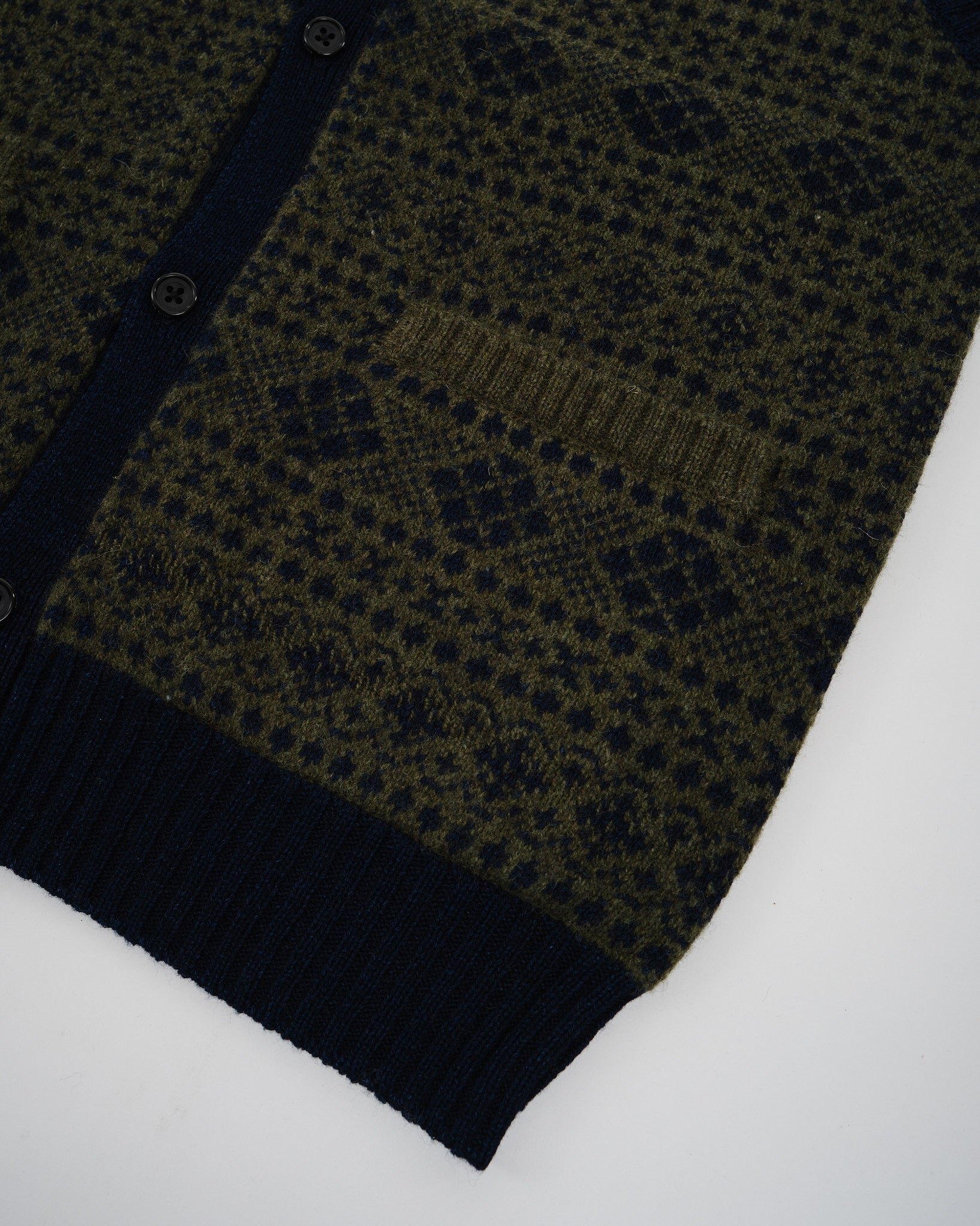 Verken de BEAMS+ Button Knit Vest, in Indigo Fair Isle Green bij Meadow. Een vlekkeloze mix van gezelligheid en tijdloze stijl. Deze vest verwerkt prachtig het Fair Isle patroon in een rustgevend groen kleurenschema dat een eeuwige charme uitstraalt. Zorgvuldig vervaardigd in Japan met 55% wol, 44% katoen en 1% acryl toont dit kledingstuk deskundige breitechnieken. Met zijn ontwerp en praktische V-hals kraag, aangevuld met handige dubbele zijzakken, dient het als een ideaal laagjesstuk.