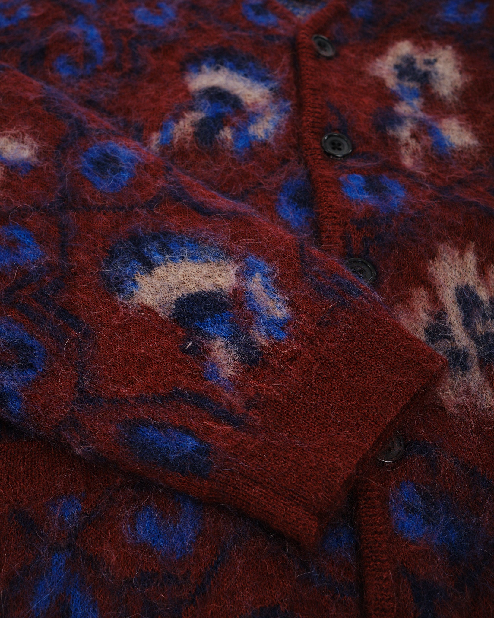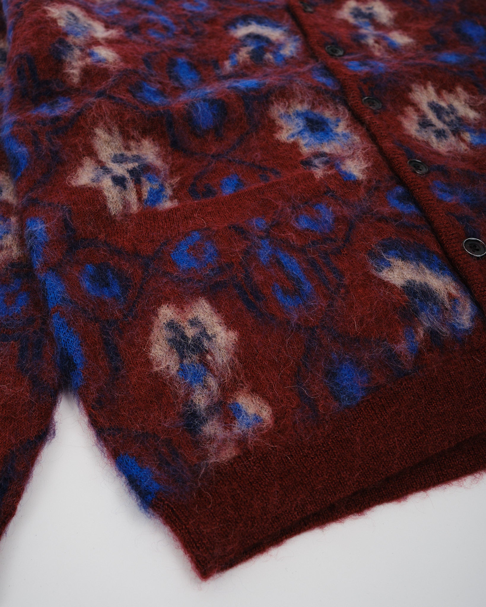 Stap in een wereld van rust, met de Beams+ Cardigan Botanical Burgundy. Deze V-hals cardigan met een bourgondische tint, aangevuld met tinten blauw en licht, is een gezellig meesterwerk vervaardigd uit een luxueuze mix van wol en mohair. Met zijn intarsia breiwerk dat een botanisch patroon toont, vangt elke steek de adembenemende schoonheid van de natuur. Het geborstelde effect geeft een vleugje allure, waardoor elke cardigan een uniek testament is, voor de wonderen van de natuurlijke wereld.