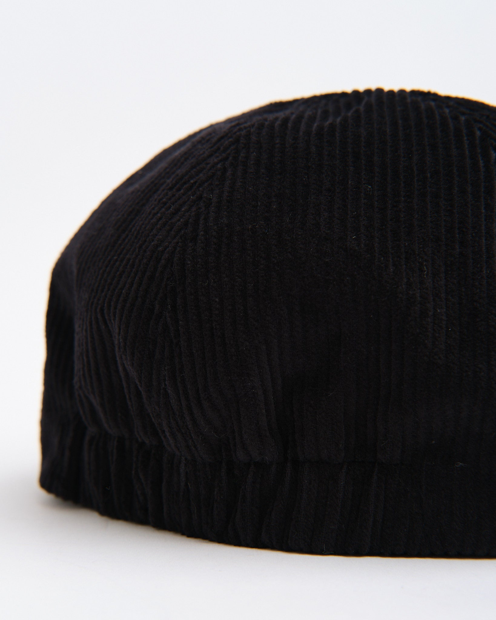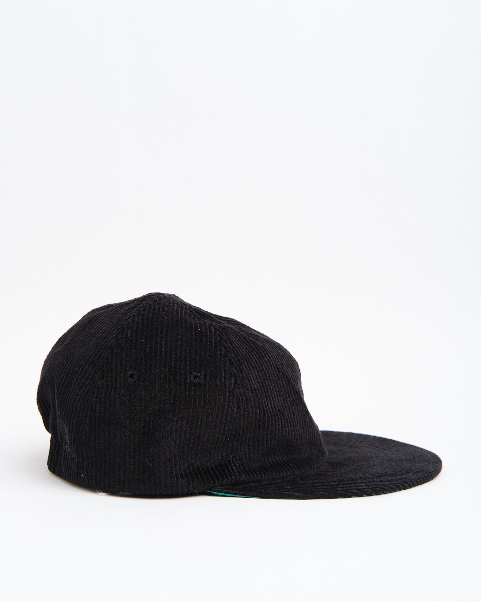 De Found Feather FW24ML02TWE Classic 6 Panel Cap Zwart met Groene  Onderklep is een klassiek ontwerp dat een moderne draai heeft gekregen door het gebruik van contrast en hoogwaardige  materialen. Deze pet is gemaakt van rijk 8W corduroy stof wat deze pet zeer  textuurrijk en duurzaam maakt. De constructie met zes panelen, kelly groene onderklep, een zachte klep  met een leren inzet en andere kenmerken maken deze pet zowel modieus als praktisch. Enkele kenmerken zijn geborduurde  luchtgaatjes, katoenen twill voering, en een volledig elastische achterkant voor comfort. Dit is een  handgestempeld unisex accessoire gemaakt in Japan en de Classic 6 Panel Cap is een geweldige toevoeging aan elke  casual kleding.