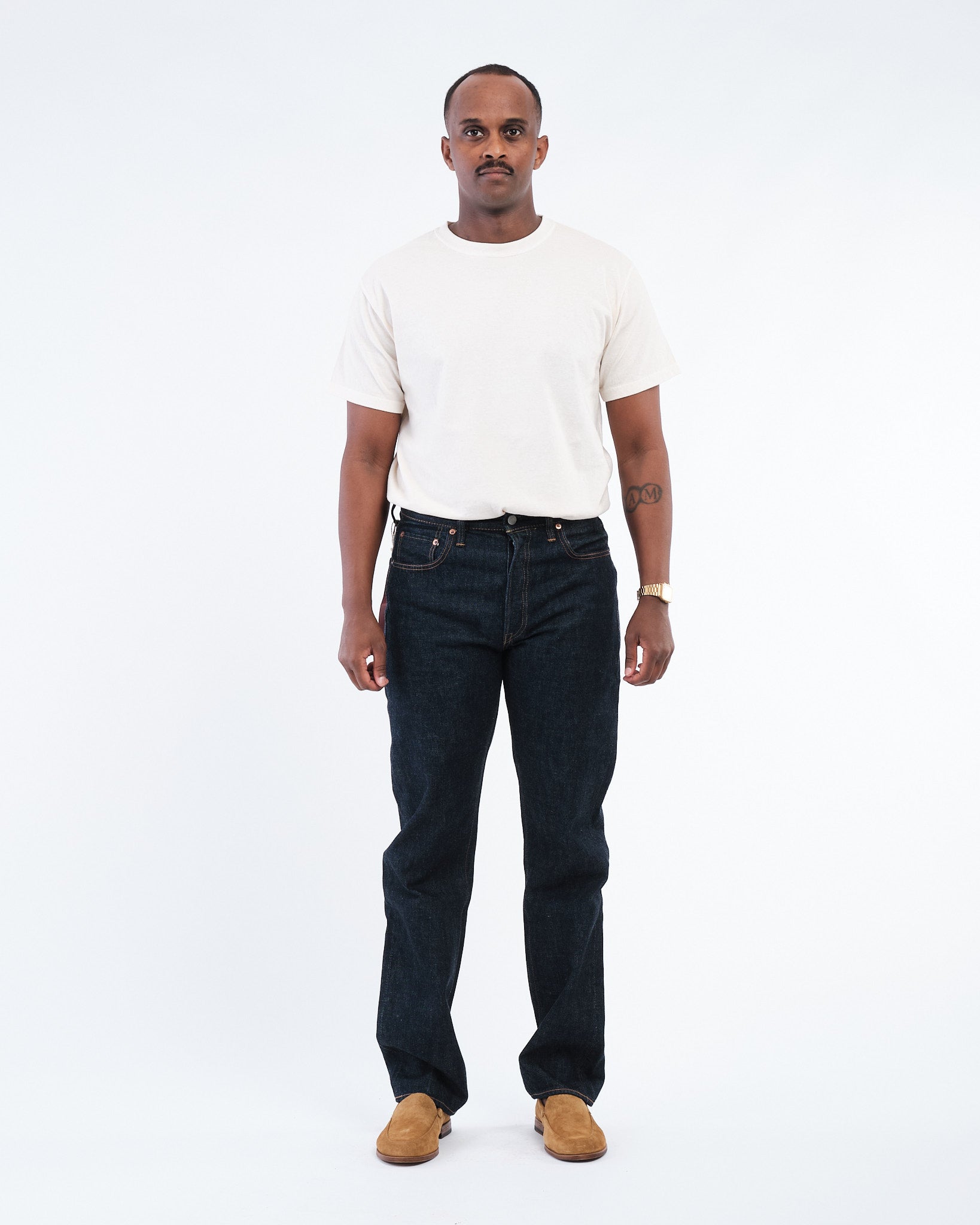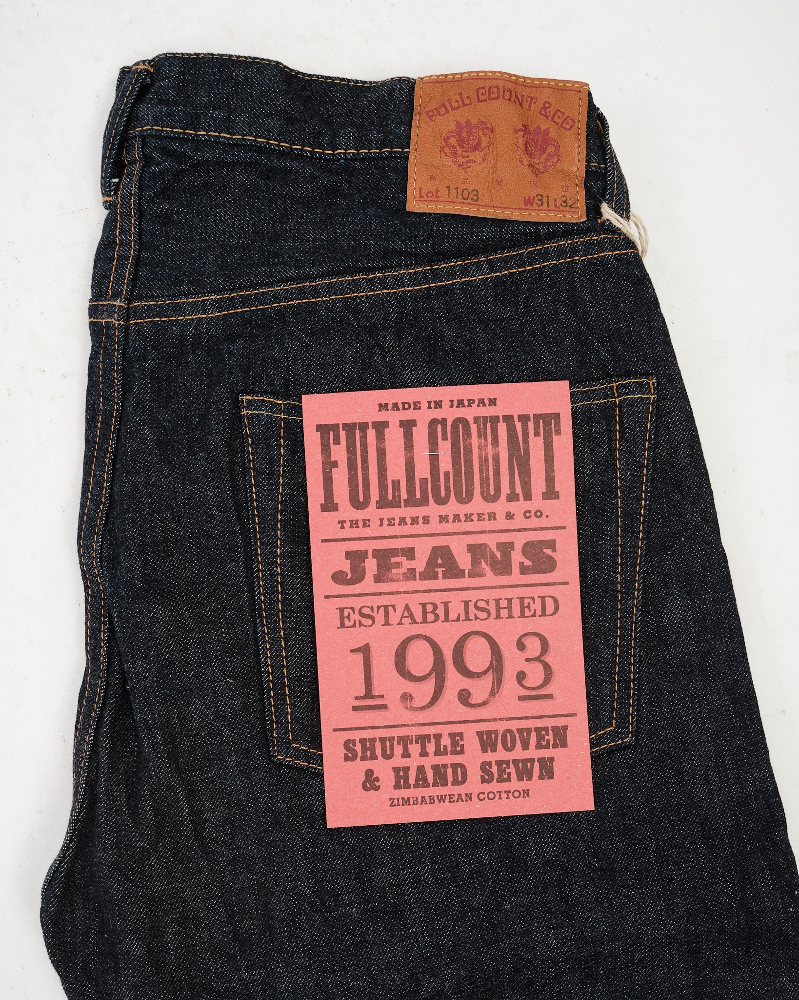 De FULL COUNT 1103W-23 CLEAN STRAIGHT DENIM in INDIGO BLAUW (1103W-23) introduceert een frisse silhouet ontworpen om structuur en veelzijdigheid in balans te brengen. Ontwikkeld als onderdeel van de 30-jarig jubileumlijn van Full Count, zit deze Clean Straight snit perfect tussen de 1101 en 1108 pasvormen, met een dijbreedte dichter bij de 1101 en een zoomwijdte vergelijkbaar met de 1108. Vervaardigd uit 13.7oz originele selvedge denim, geweven van 100% Zimbabwe katoen, bieden deze jeans duurzaamheid, comfort en een gladde textuur die prachtig verzacht bij het dragen. Een subtiel detail—een diagonaal geneigde achterste centrale riemlus—voegt een onderscheidend accent toe. Of het nu in een wash of non-wash is, deze stijl is een nieuwe favoriet voor denimliefhebbers.