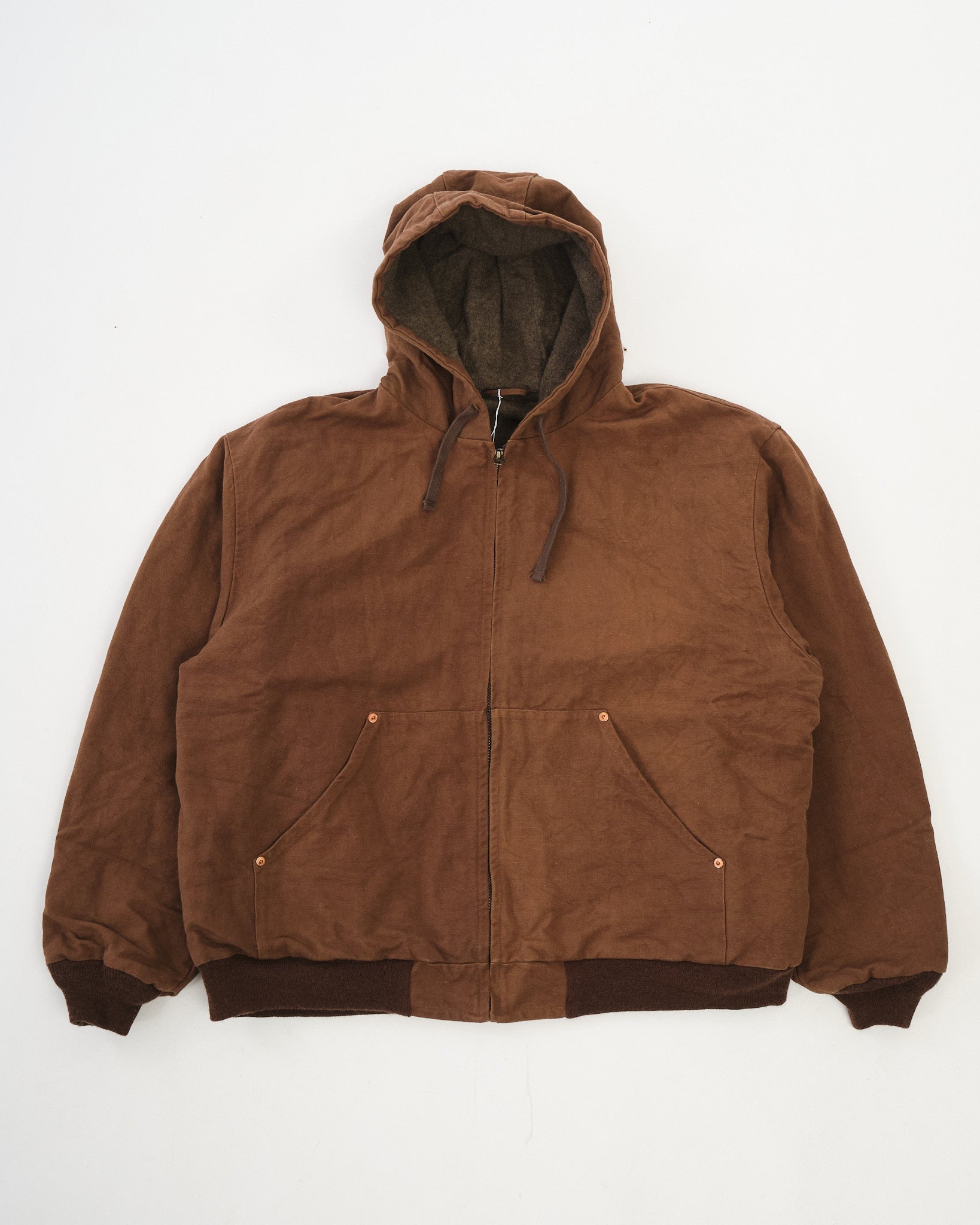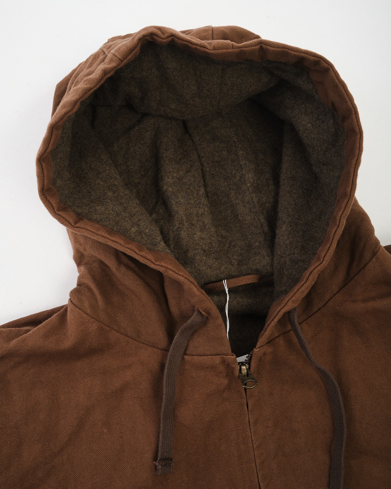 De jas heeft een wollen voering, wat warmte en extra comfort toevoegt. Ontworpen met een ontspannen pasvorm, het maakt gemakkelijk laagjes mogelijk, terwijl de wollen rib extra textuur en warmte rond de manchetten biedt. Volledig gevoerd, deze hoody jas is een veelzijdig en stijlvol stuk voor de koudere maanden.