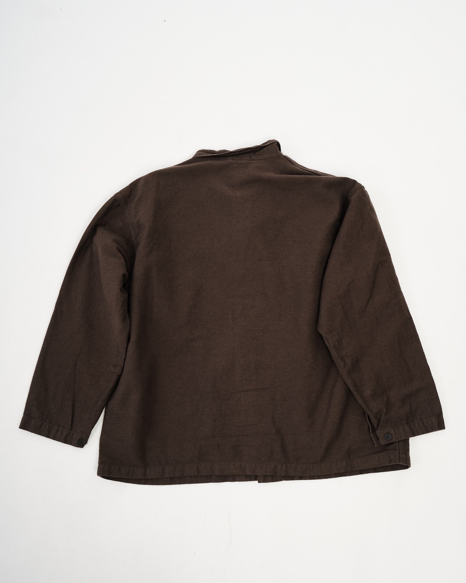 COTTON LINEN MOLESKIN RELAX FIT SIMPLE WORK JACKET CHARCOAL GRAY