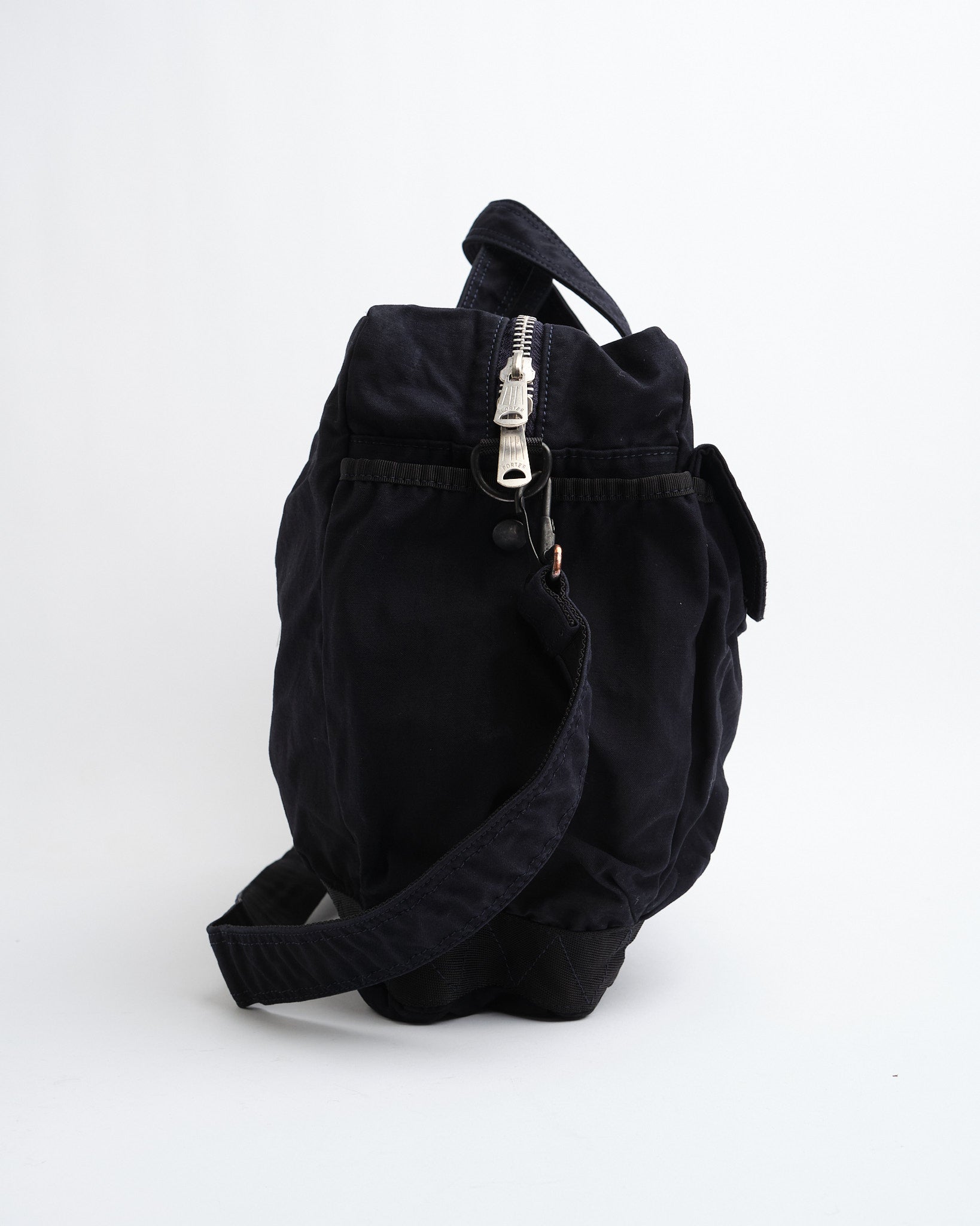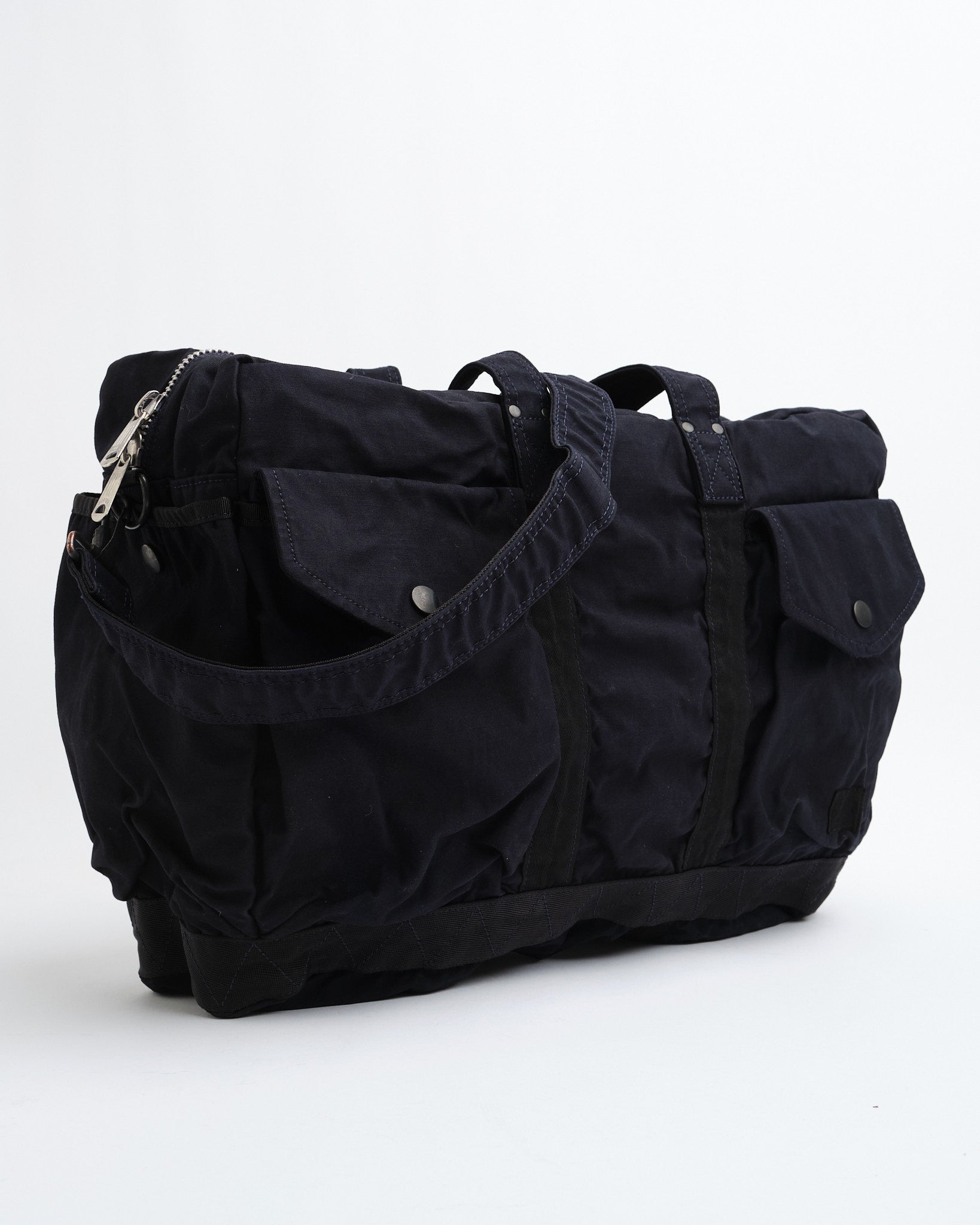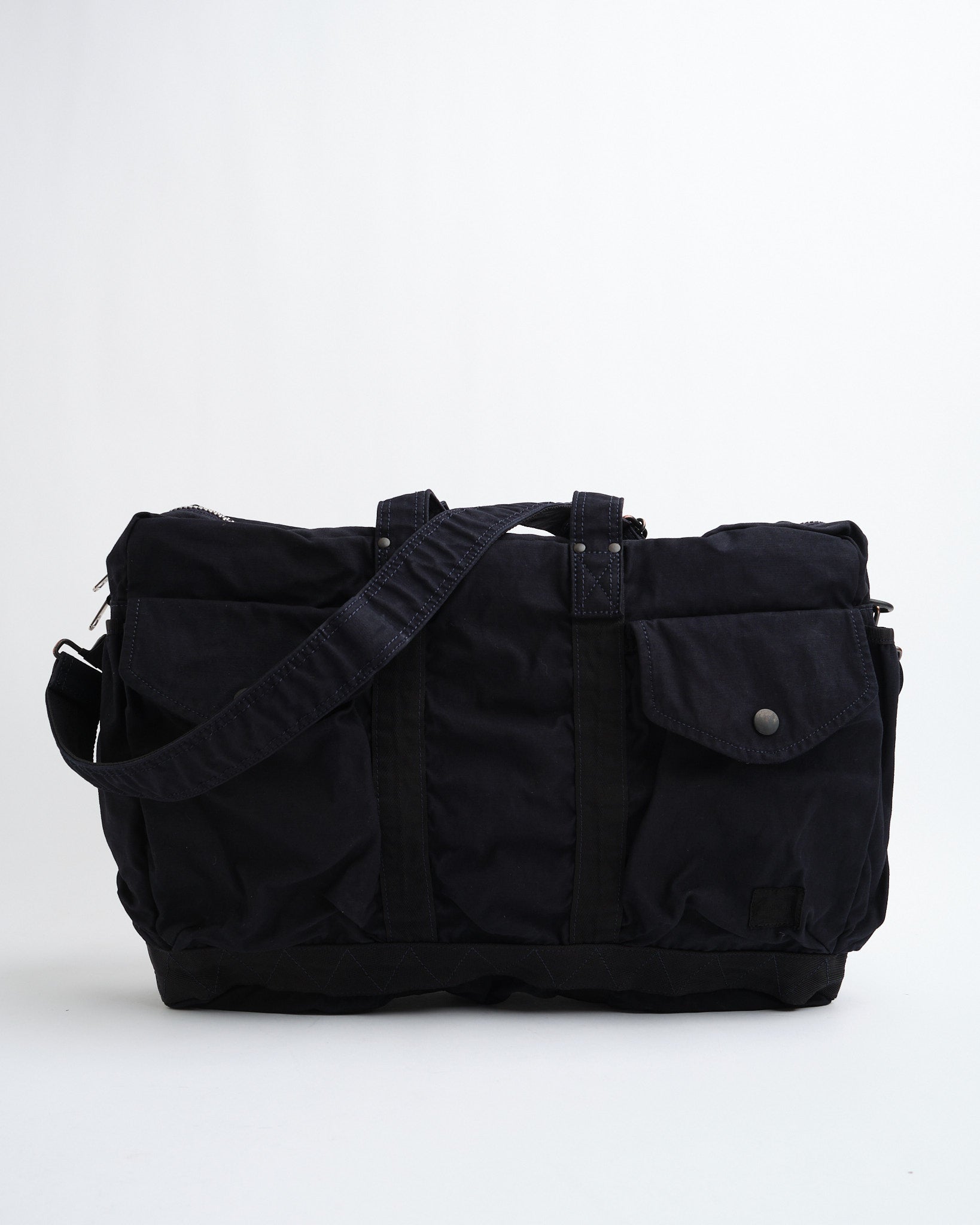 De PORTER-YOSHIDA CRAG 2Way Boston Bag (S) in Navy is een compacte maar veelzijdige tas, geïnspireerd op vintage militaire esthetiek. Gemaakt van een duurzame, hoogwaardige back satijn mix van 50% katoen en 50% nylon, beschikt deze tas over een kleding-geverfde afwerking, die rijke kleur en textuur biedt. Perfect voor dagelijks gebruik, het komt met meerdere draagopties, inclusief handvatten aan de bovenkant en een afneembare schouderriem, evenals voldoende opbergruimte met drukknoopsluiting buitenzakken en een ruim interieur. Gemaakt in Japan, het belichaamt uitstekend vakmanschap en tijdloos ontwerp.