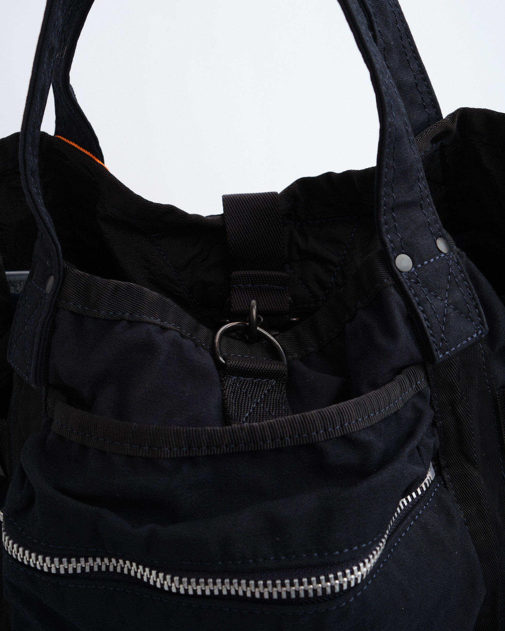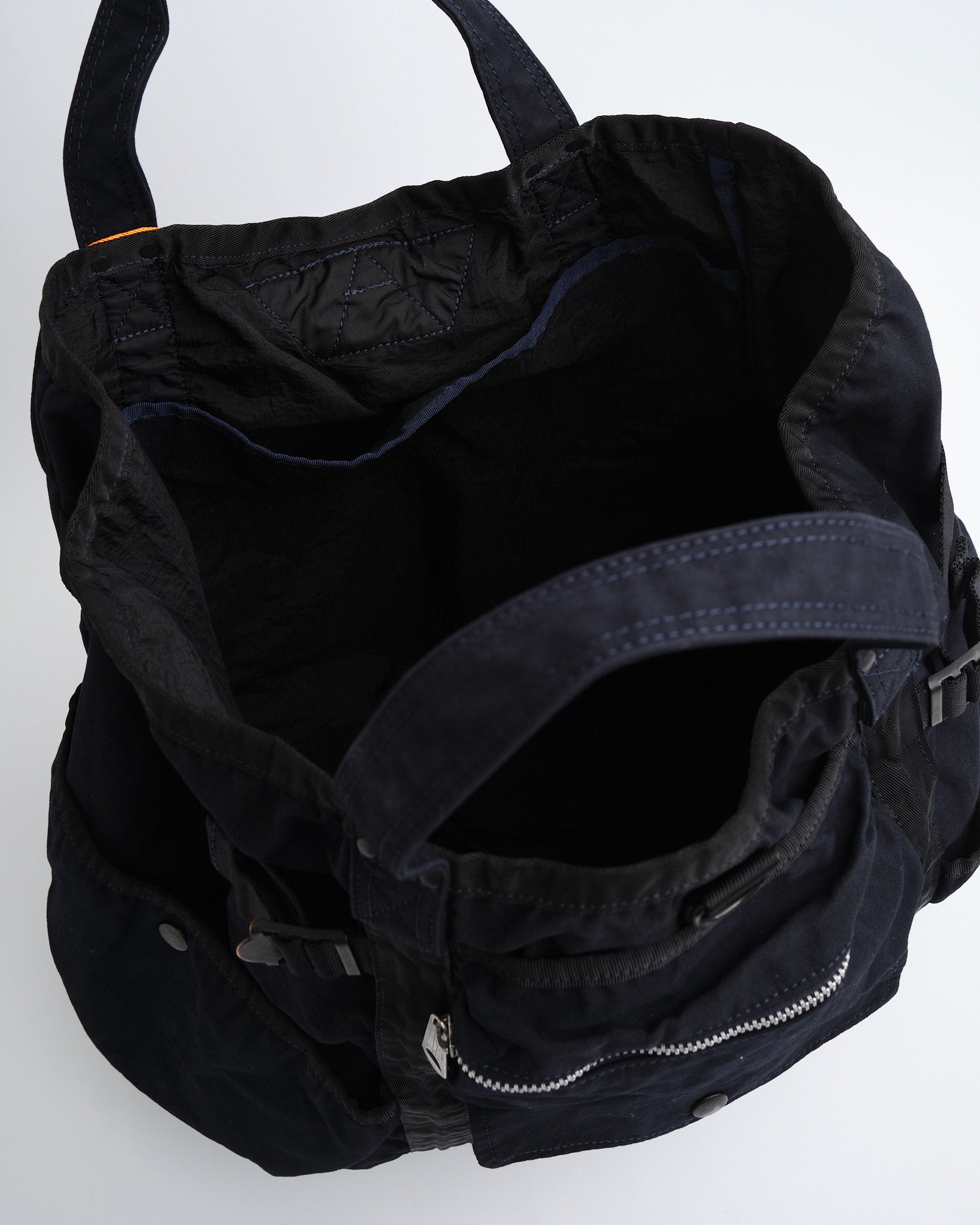De PORTER-YOSHIDA CRAG 2Way Rugzak in Marineblauw is een praktische en veelzijdige rugzak geïnspireerd door vintage militaire esthetiek. Gemaakt van hoogdichtheid back satijn—een mix van 50% katoen en 50% nylon—is deze tas zowel duurzaam als uniek getextureerd. De kledingstuk-geverfde afwerking zorgt voor een rijke, diepe tint, bereikt door een duurzaam tweestaps verfproces in Kurashiki, Okayama. Met meerdere draagopties, inclusief handvatten in tote-stijl en verstelbare schouderbanden, en voldoende opbergruimte via drukknoopsluiting buitenzakken en een ruim interieur, is het perfect voor dagelijks gebruik. Handgemaakt in Japan, toont deze rugzak uitzonderlijk vakmanschap en tijdloos ontwerp.