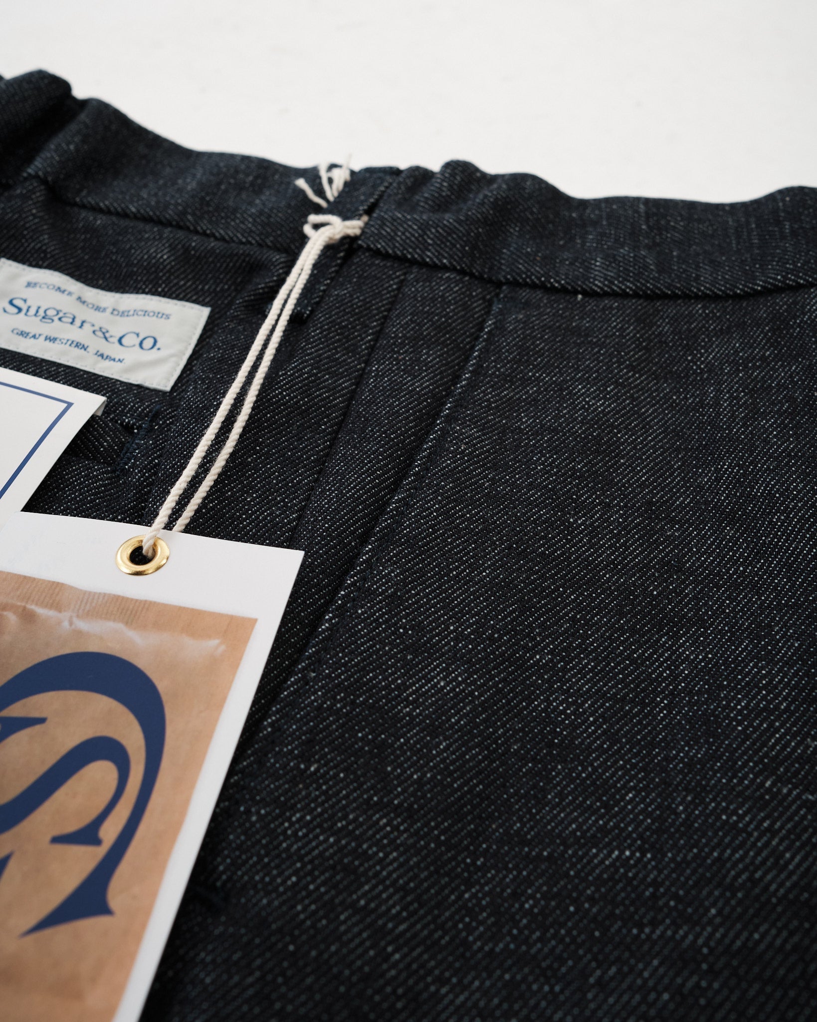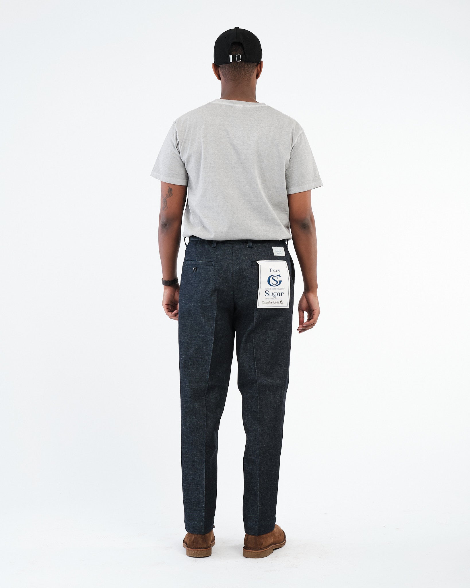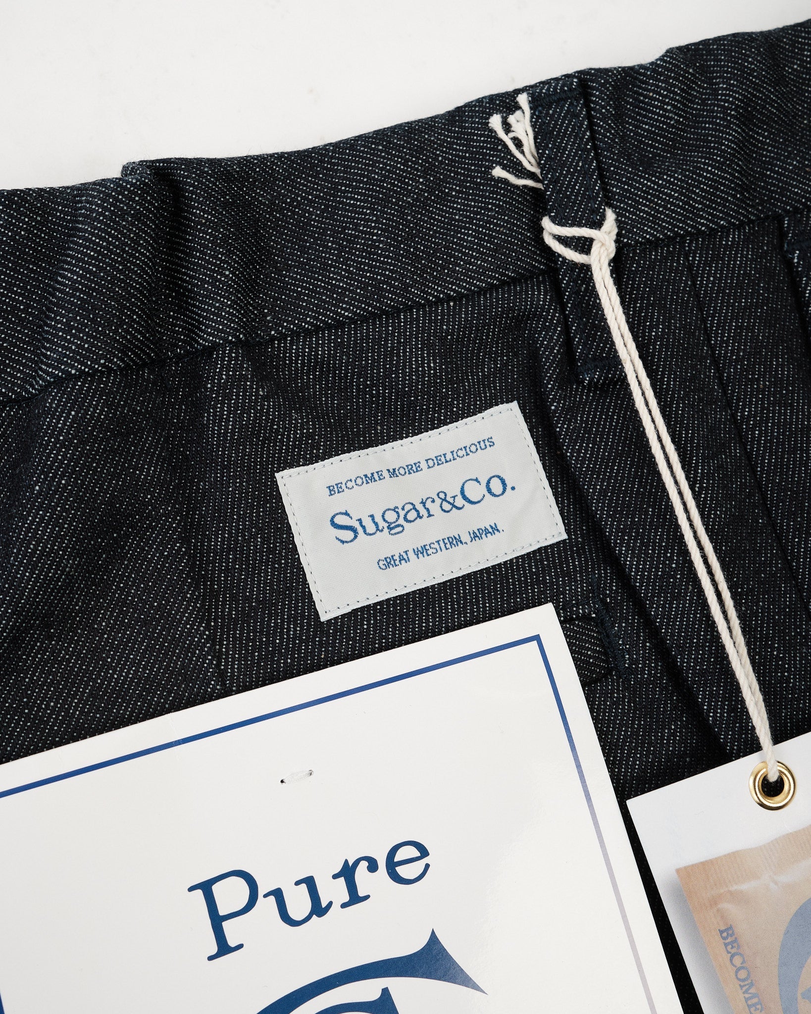 Introductie van de SUGAR & CO. DADDY'S PANTS in een rijke Indigo tint. Deze broeken zijn een vlaggenschipmodel van Sugar & Co., dat de toewijding van het merk aan kwaliteit en tijdloos ontwerp laat zien. Vervaardigd in Japan van 100% Amerikaans katoen, biedt de stof een robuuste maar droge textuur die comfortabeler wordt met dragen. De diepe indigo kleur, bereikt door het gebruik van garens met aanzienlijke variatie, zorgt voor unieke verkleuring en verouderingskenmerken, waardoor de broek over tijd een gepersonaliseerde patina kan ontwikkelen.