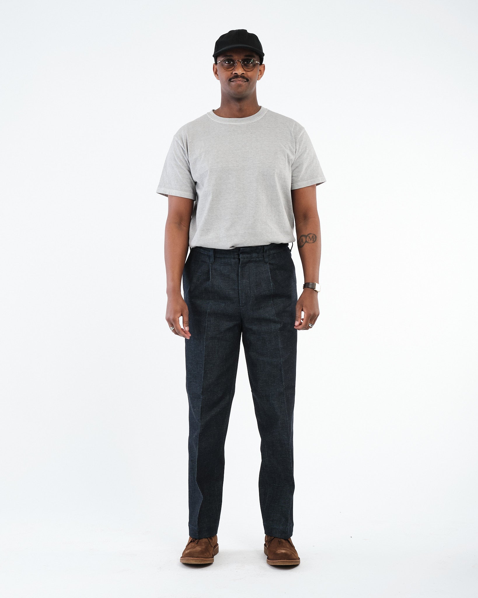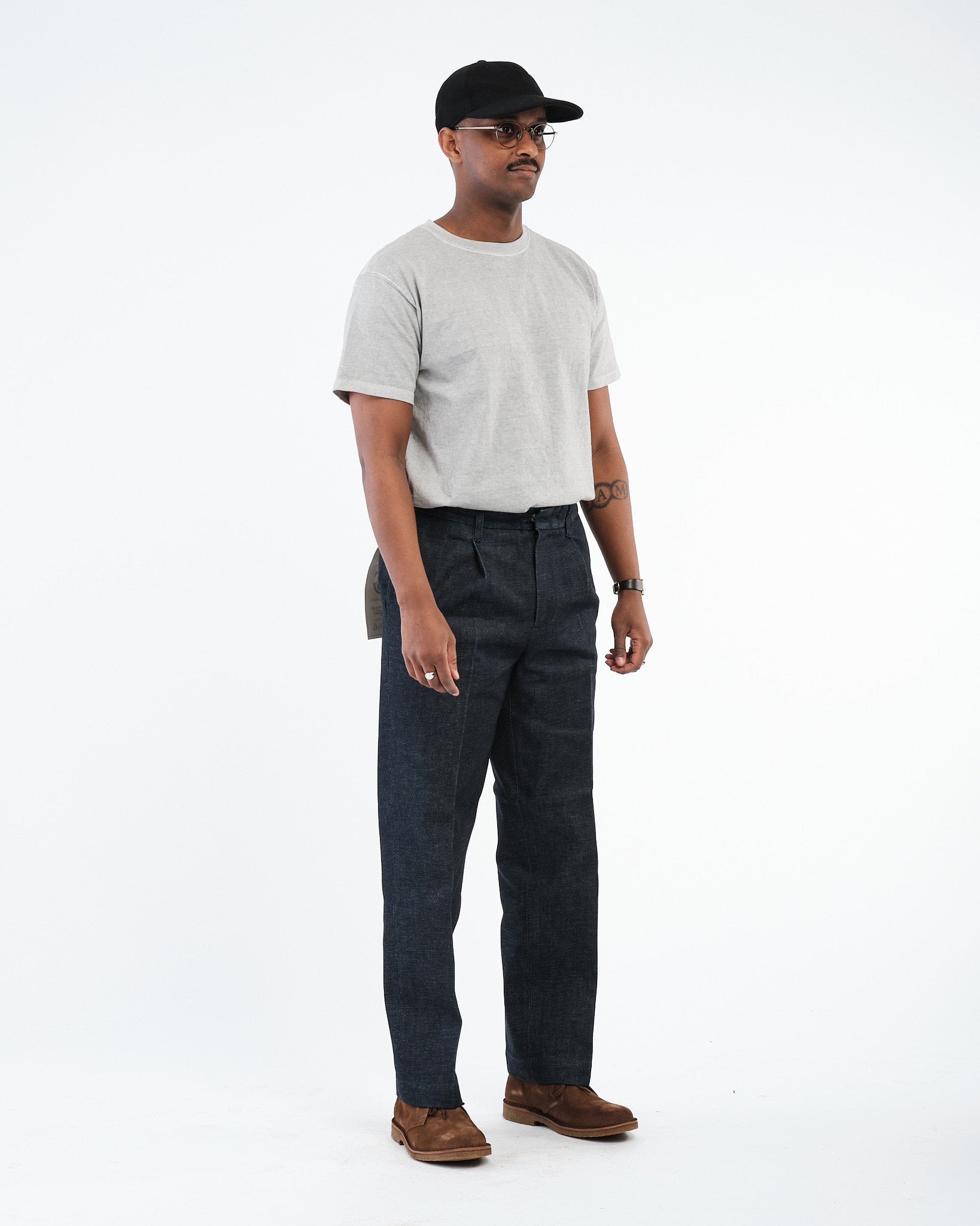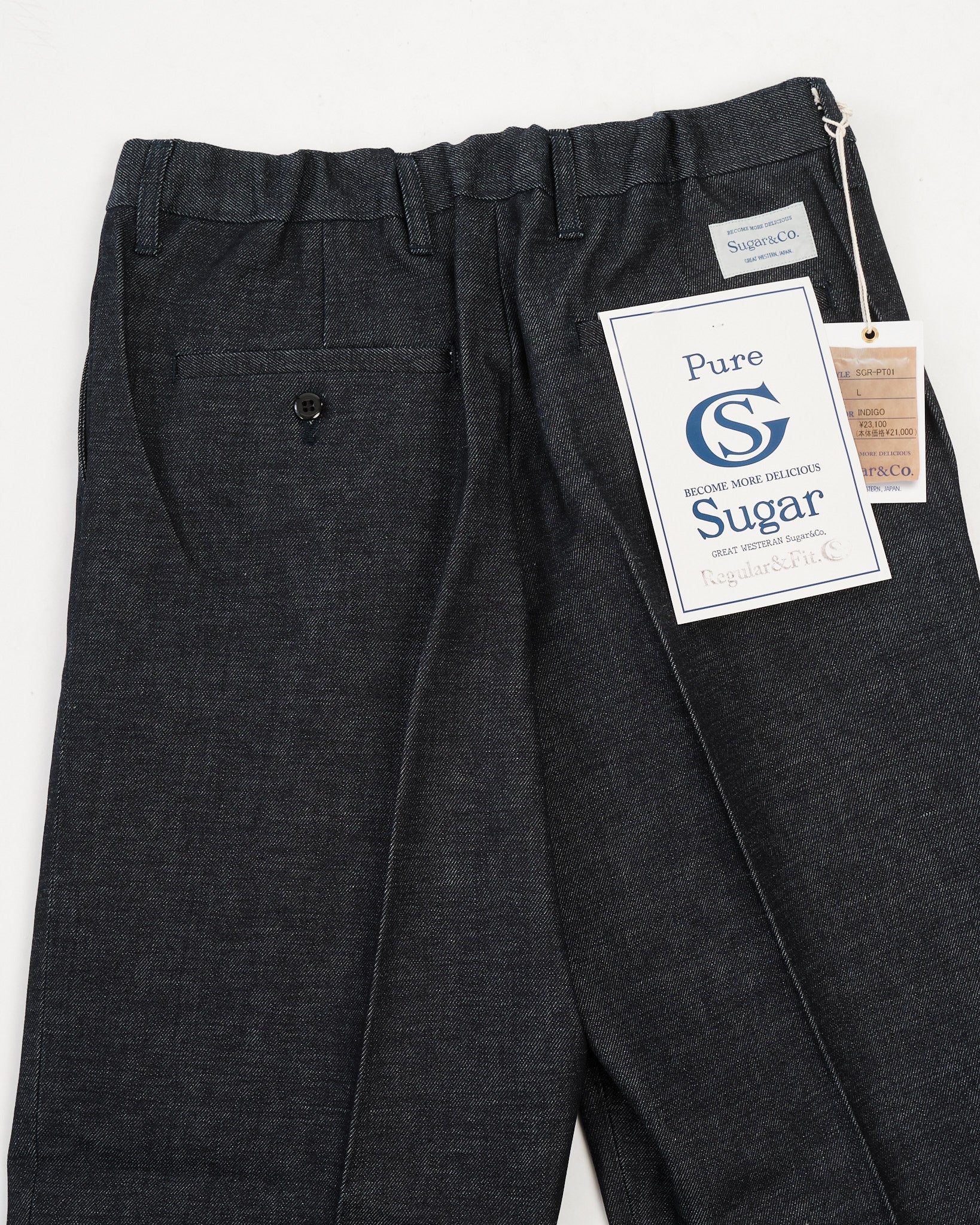 Introductie van de SUGAR & CO. DADDY'S PANTS in een rijke Indigo tint. Deze broeken zijn een vlaggenschipmodel van Sugar & Co., dat de toewijding van het merk aan kwaliteit en tijdloos ontwerp laat zien. Vervaardigd in Japan van 100% Amerikaans katoen, biedt de stof een robuuste maar droge textuur die comfortabeler wordt met dragen. De diepe indigo kleur, bereikt door het gebruik van garens met aanzienlijke variatie, zorgt voor unieke verkleuring en verouderingskenmerken, waardoor de broek over tijd een gepersonaliseerde patina kan ontwikkelen.