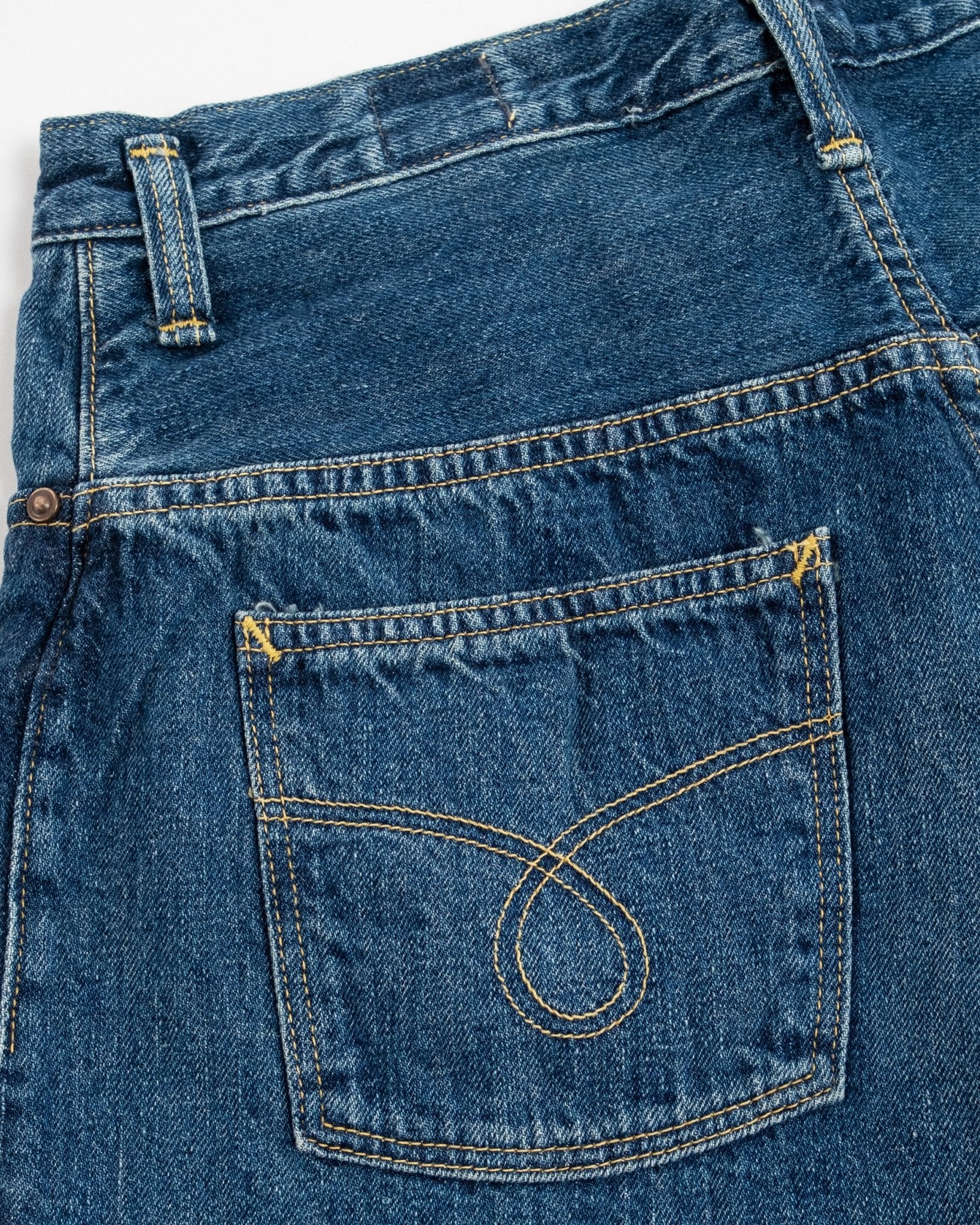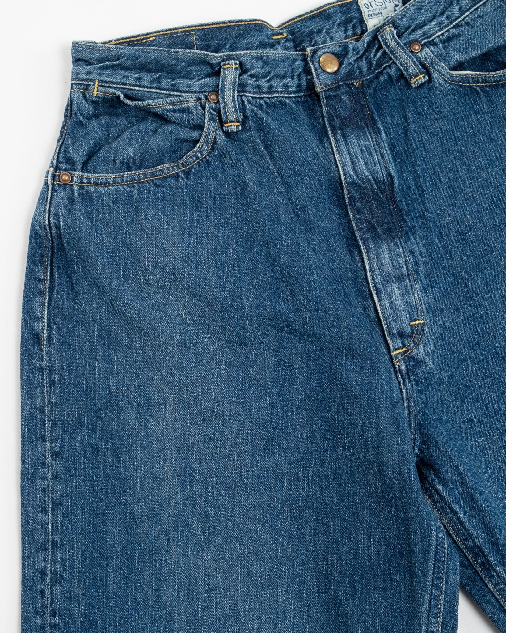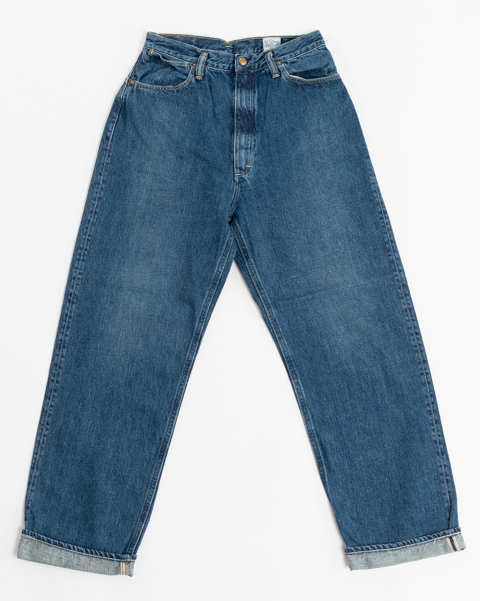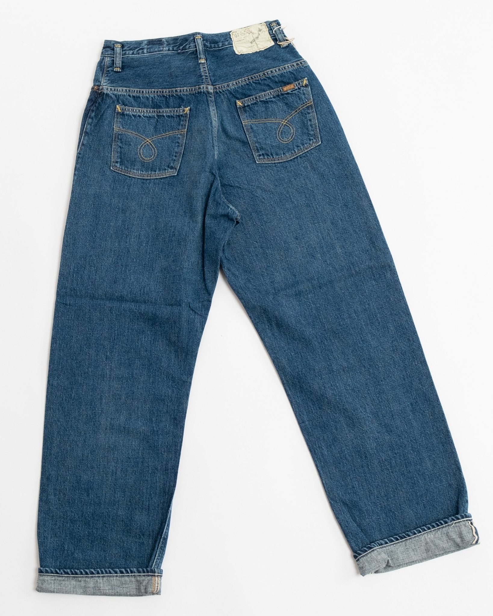 Geïnspireerd door de jaren '50, met een hoge taille, langere lengte, bredere dijen en rechte pijpen. Denim uit die tijd was ontworpen om de curve van het lichaam te volgen en comfortabel genoeg om elke dag te dragen. Deze vorm van de denim is perfect voor degenen die vaak vinden dat denim 'te groot' is in de taille, of te strak rond de dijen, aangezien ze ontworpen zijn met een lichte curve, vandaar 'curved seam'. Gemaakt van een 13,5 oz denim op maat gemaakt voor orSlow, en eenmaal gewassen, zal het gevoel van de denim vanaf de eerste keer dragen zacht zijn, en dit wasproces brengt een mooie blauwe kleur in de denim naar voren. De denim is gewassen dus de benen zullen enigszins gedraaid lijken, typisch voor vintage denim, en dit betekent ook dat de denim niet zal krimpen. Knoopsluiting. 100% katoen. Gemaakt in Japan.