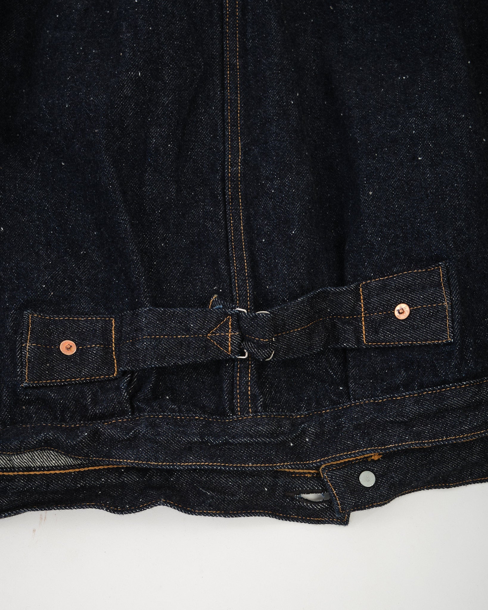 - Geïnspireerd op de jaren 40-stof: Gemaakt van dode voorraad denim uit de piek van de denimproductie in de jaren 40