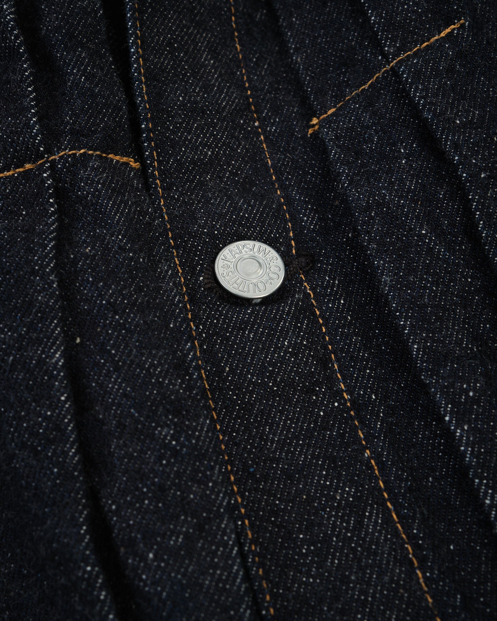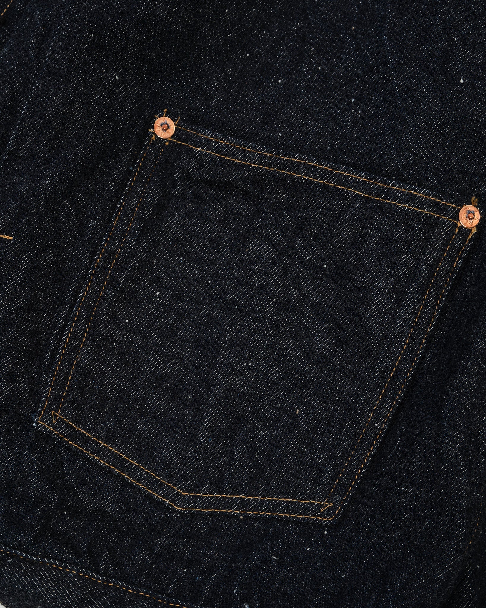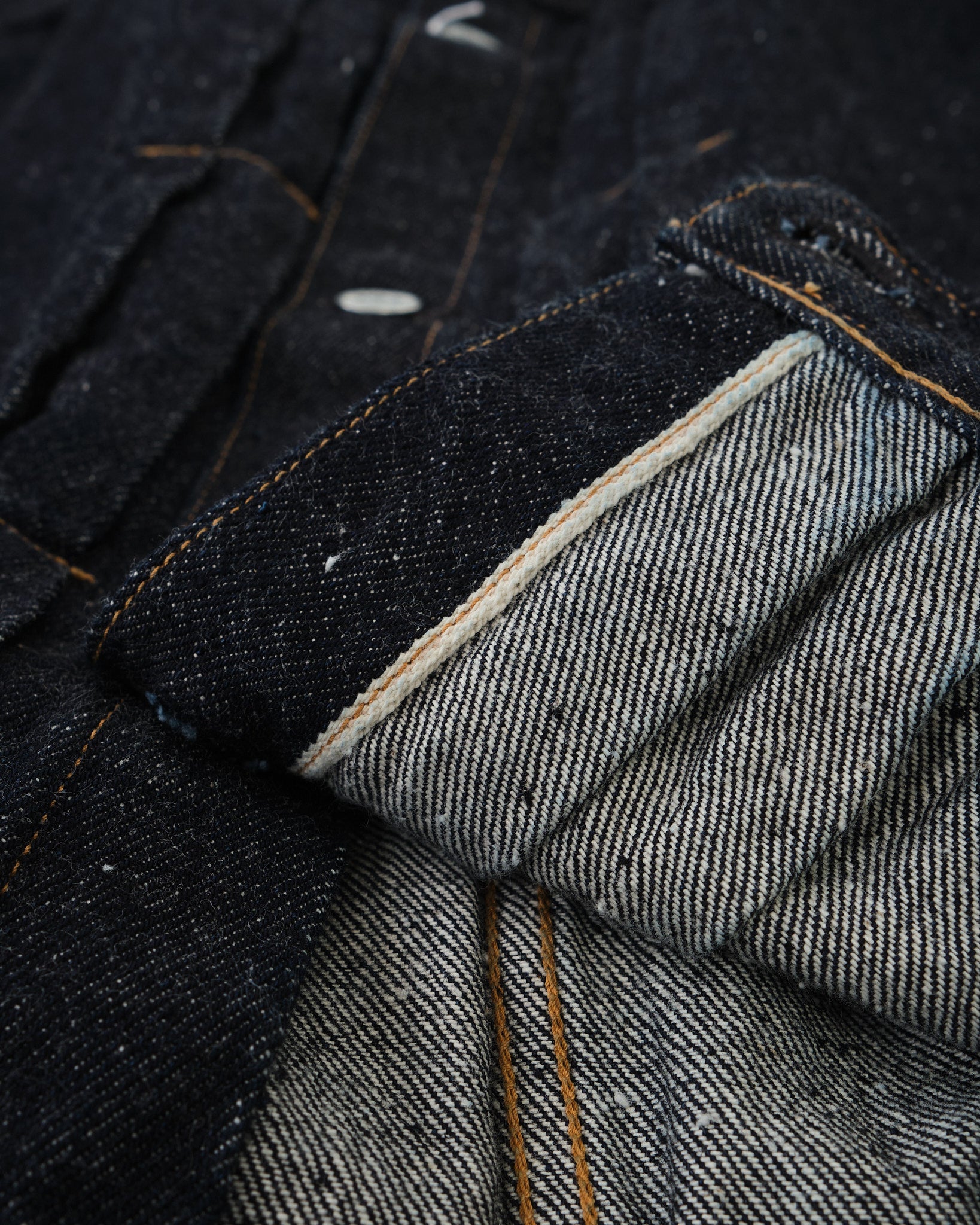 - 13,5oz Selvedge Denim: Geverfd met zuiver indigo en geweven met lage spanning