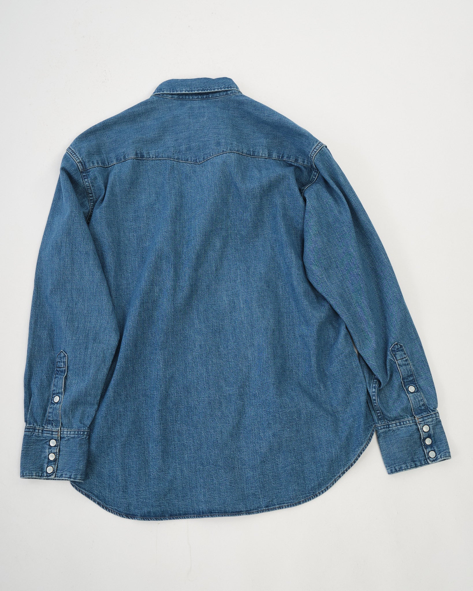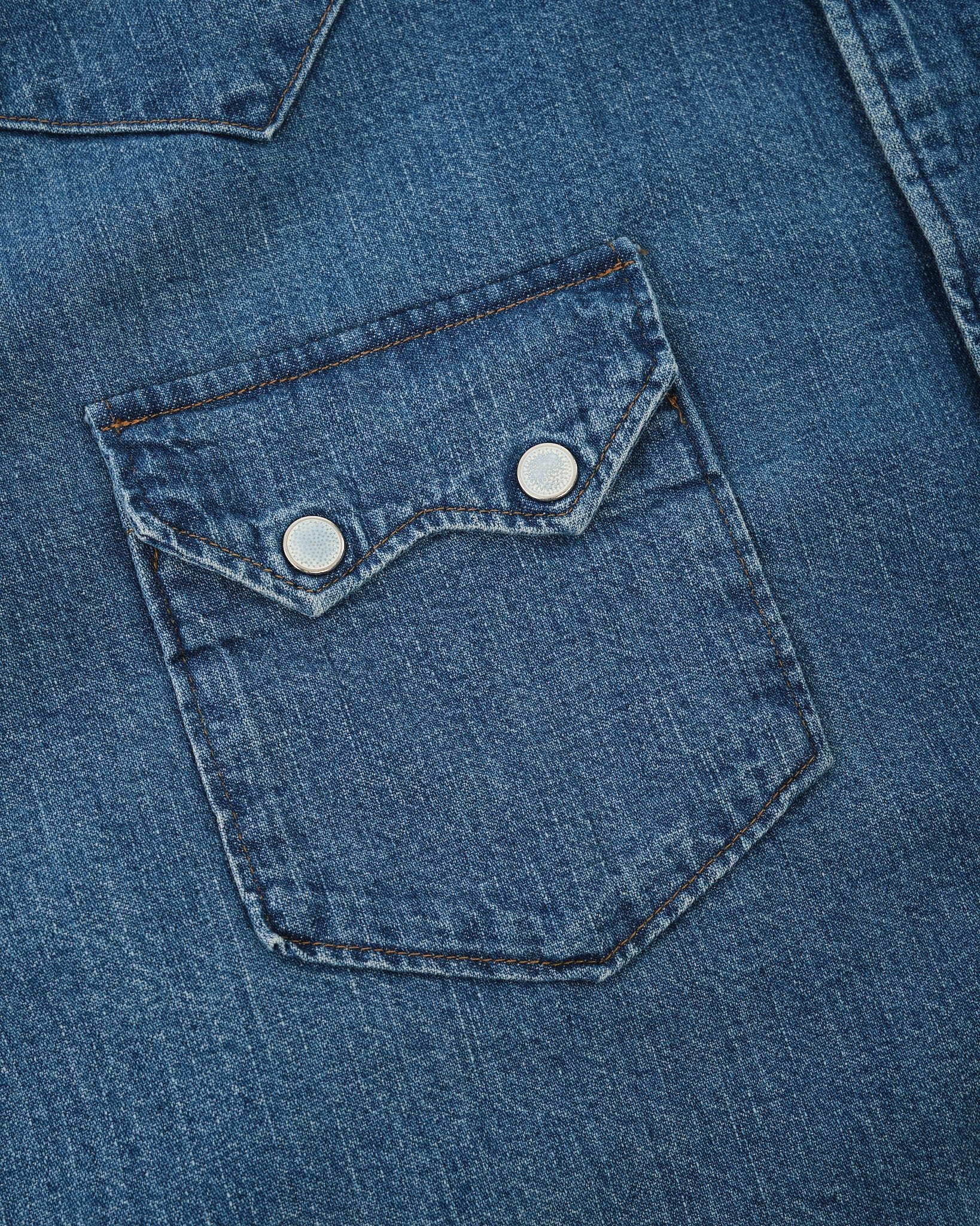 Premium Japans denim voor duurzaamheid en comfort Gebruikte Wash afwerking voor een natuurlijk ingedragen look Regular fit biedt comfort en bewegingsvrijheid Drukknoopsluitingen met een puntige juk voor authentieke Western styling Dubbele borstzakken met drukknoopkleppen voor praktisch gebruik Drukknoopmanchetten voor verstelbaar comfort Versterkte stiksels voor verbeterde duurzaamheid Gebogen zoom voor een gebalanceerd silhouet Subtiele orSlow branding voor een ingetogen esthetiek Ontworpen en vervaardigd in Japan Productcode: 01-8124-95