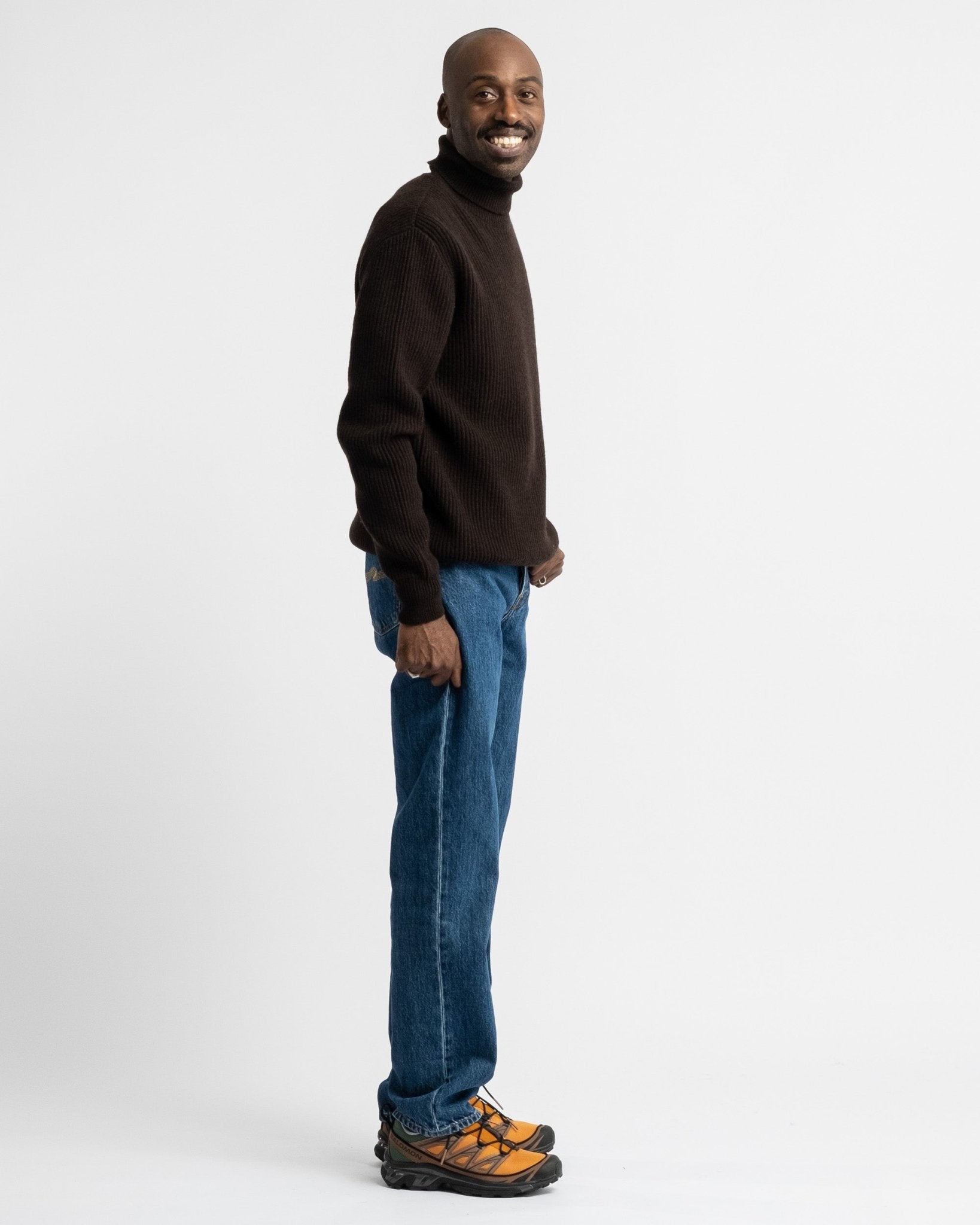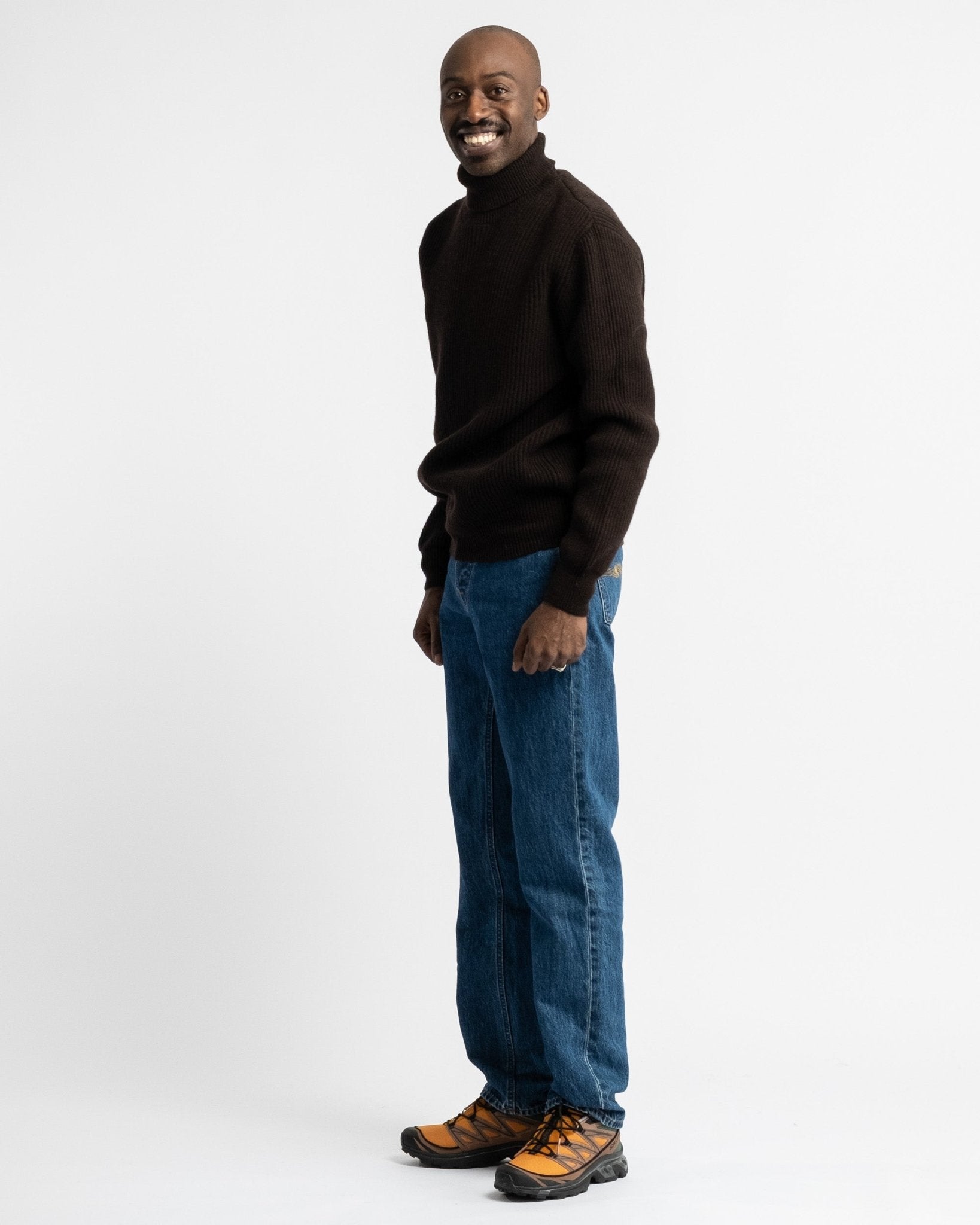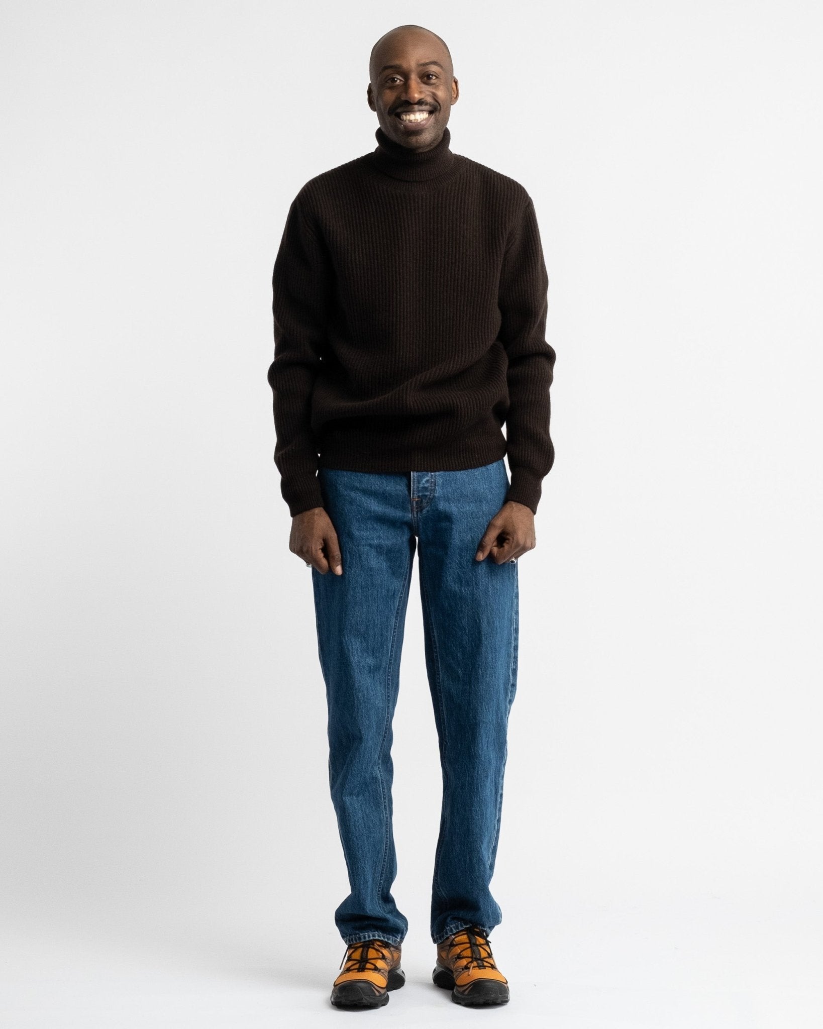 Ludjero is 179 cm lang, slank gebouwd en draagt maat 4.